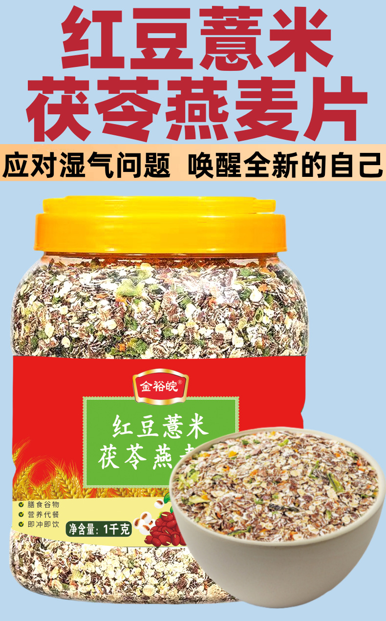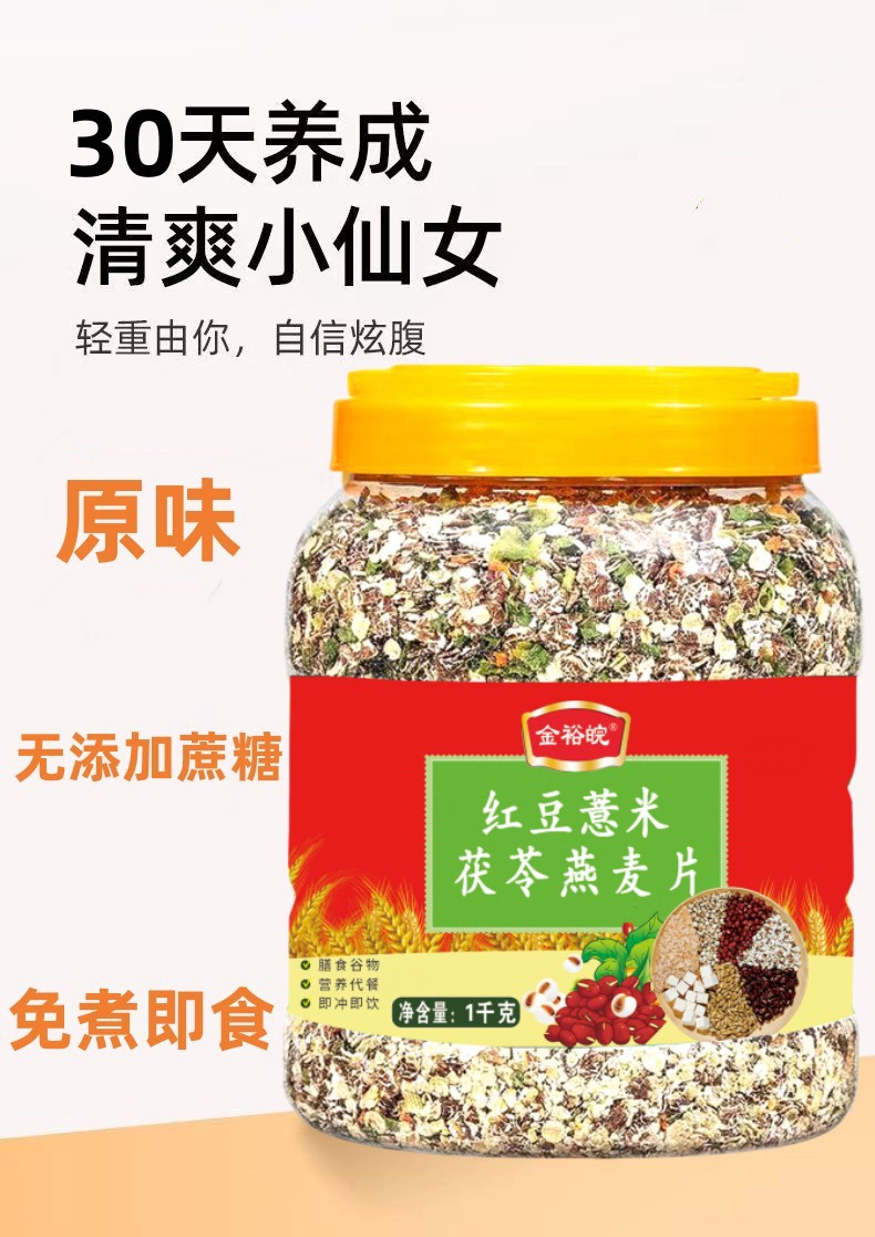 【湿无踪❗红豆薏米茯苓燕麦片】精配8味好食材,红豆/薏米仁/黑麦片/小麦胚芽/燕麦片/茯苓/胡萝卜丁/青梗菜,营养代餐无添加蔗糖燕麦片1000gL
