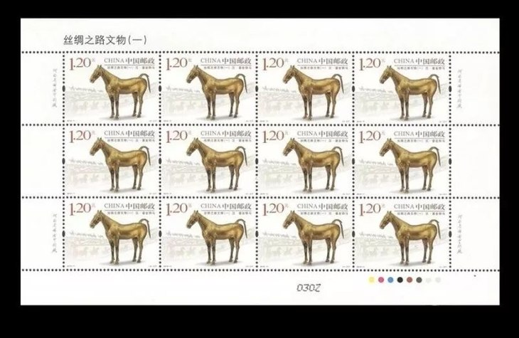 中国邮政于2018年5月19日发行《丝绸之路文物》特种邮票,选材自陆上丝路起点出土的四件代表性文物。
