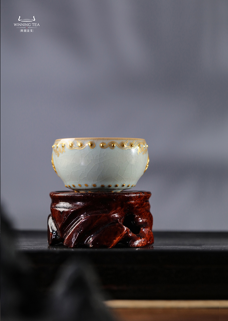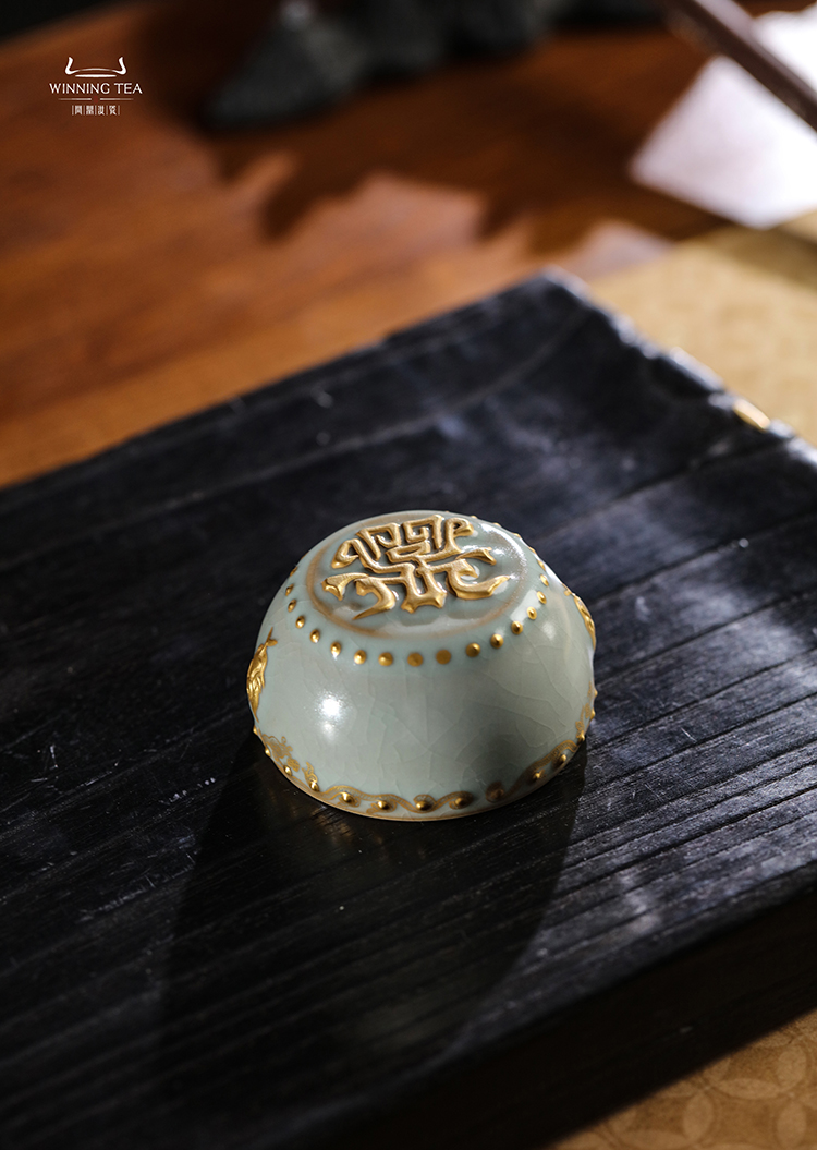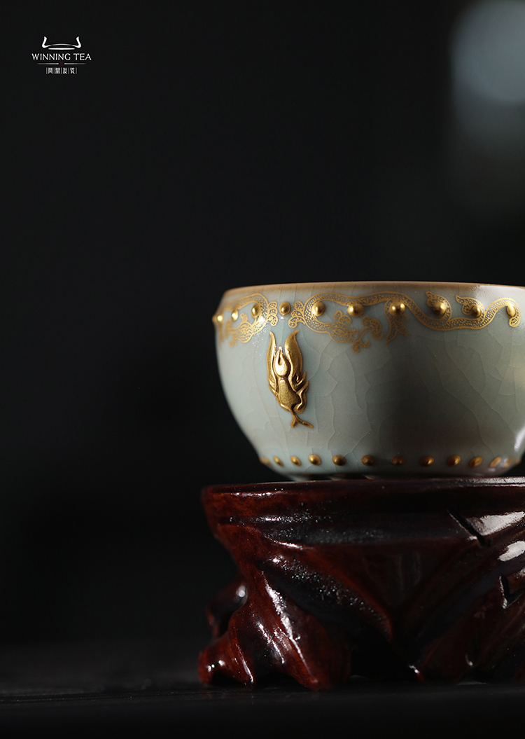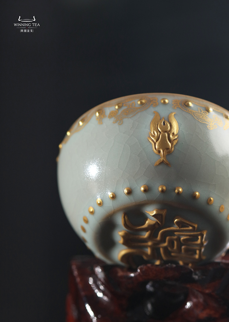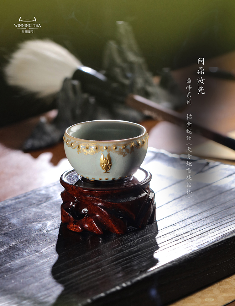 问鼎汝瓷鼎峰系列天青蛇首战鼓杯 (描金蛇纹)