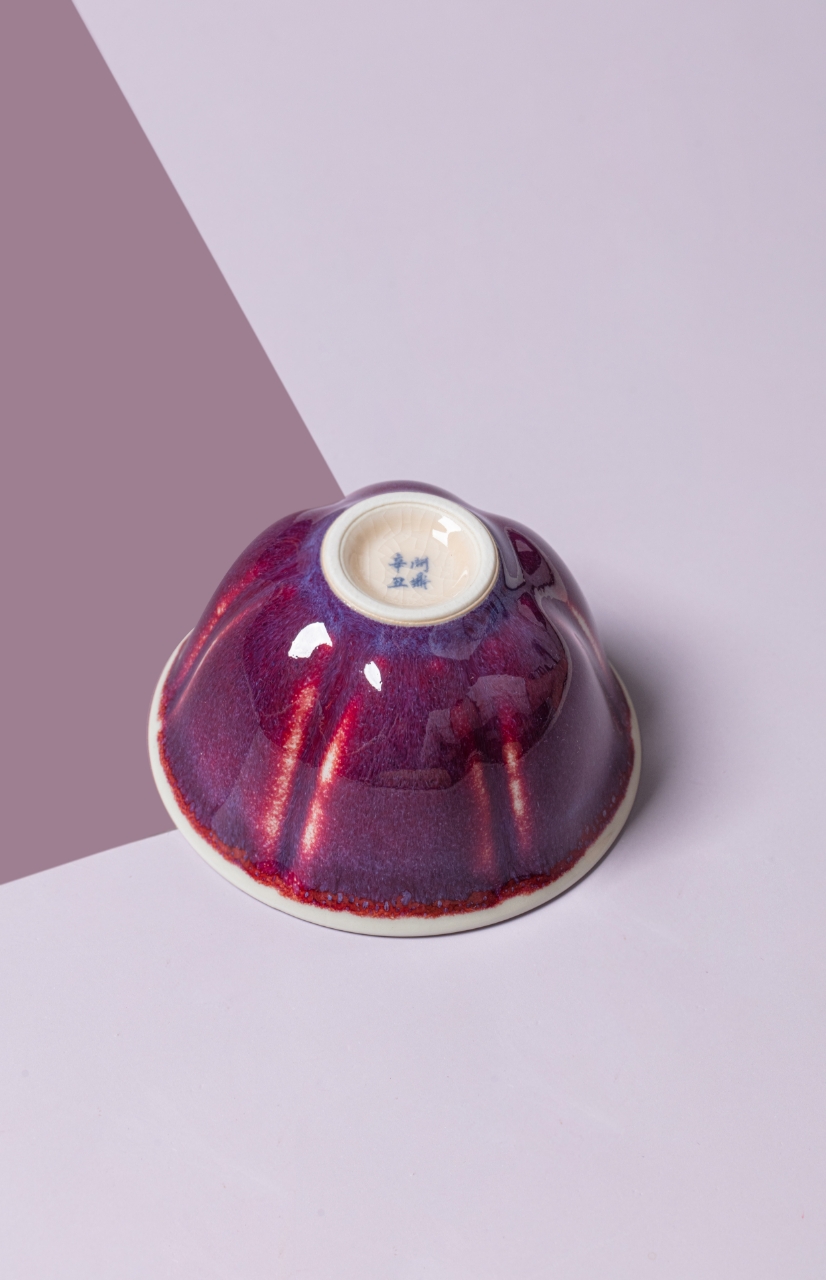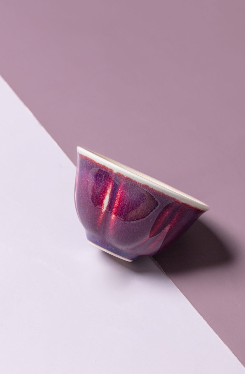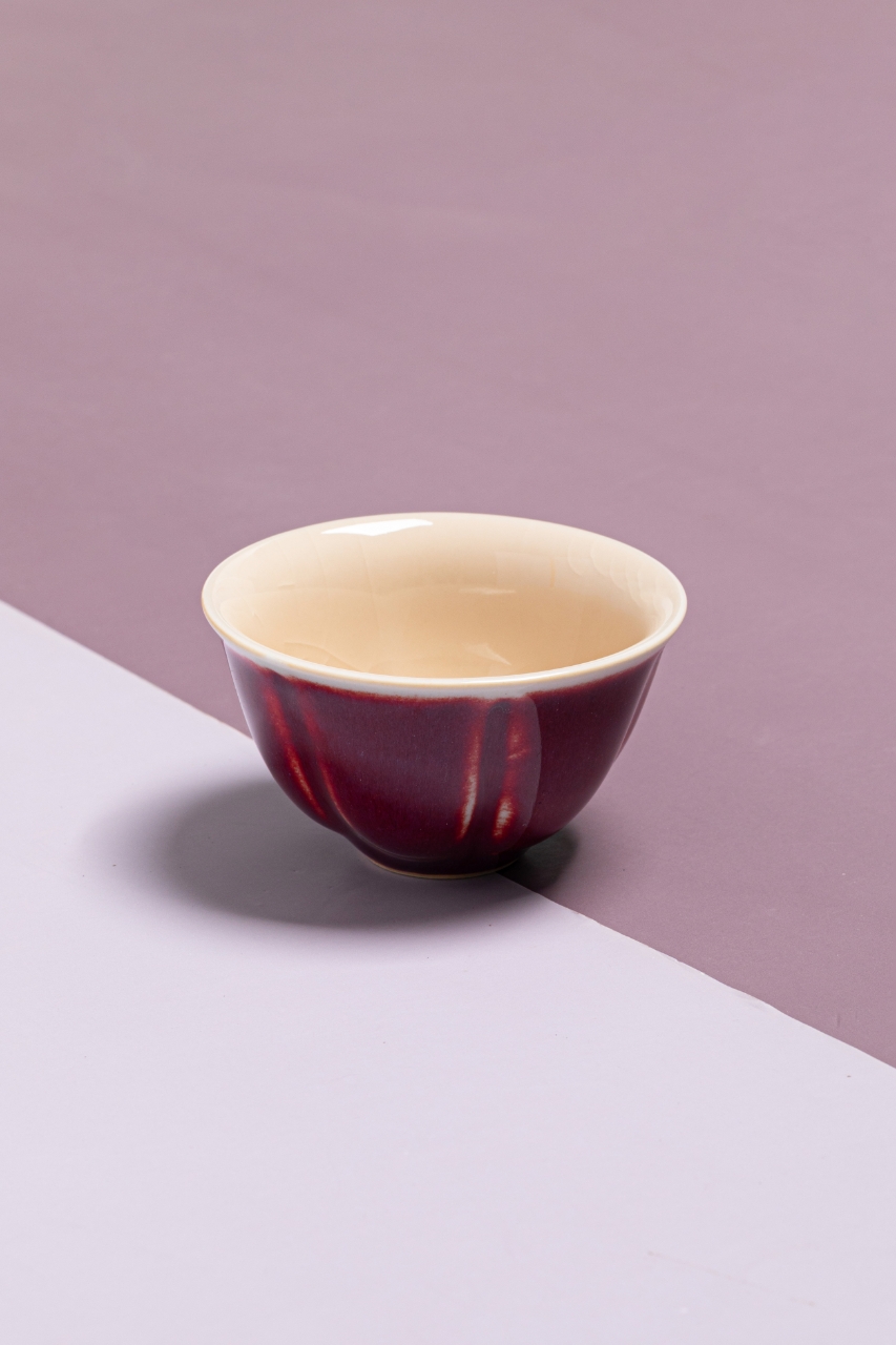 寒香慕古釉里红双勾莲压手杯(下单前请先咨询客服)