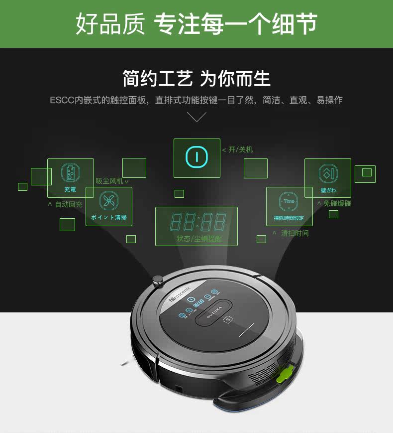 台湾Proscenic浦桑尼克铃鹿扫地机器人家用全自动智能吸尘器超薄拖地