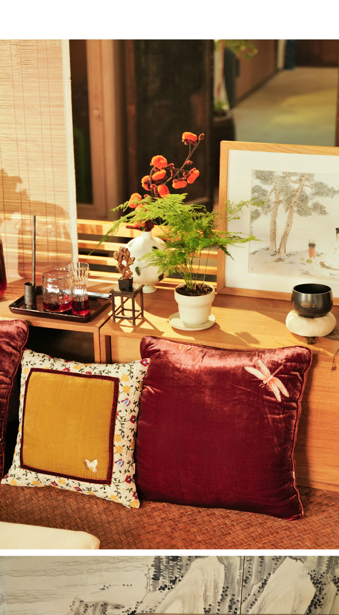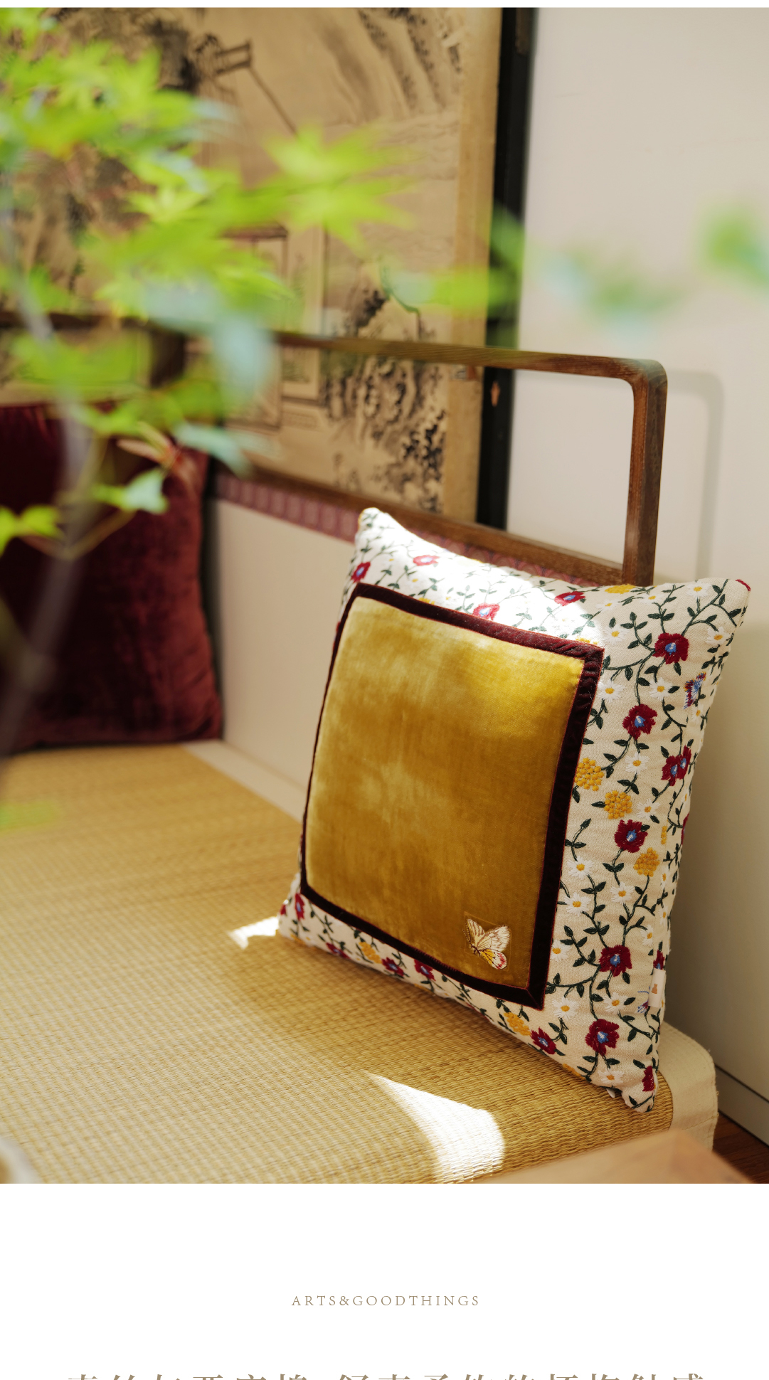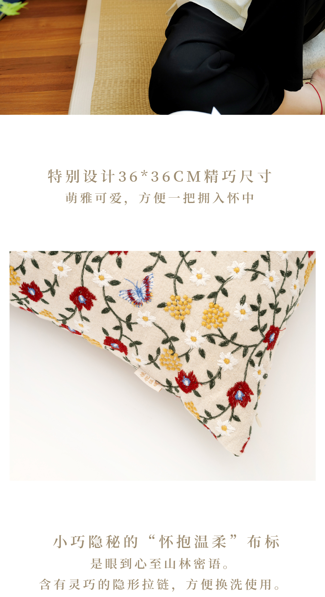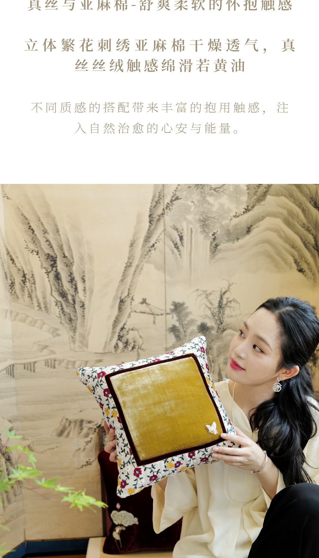 梦蝶 蝴蝶郁金香重工刺绣 棉麻丝绒抱枕 山林曦照