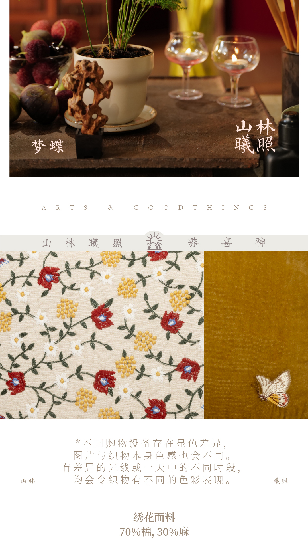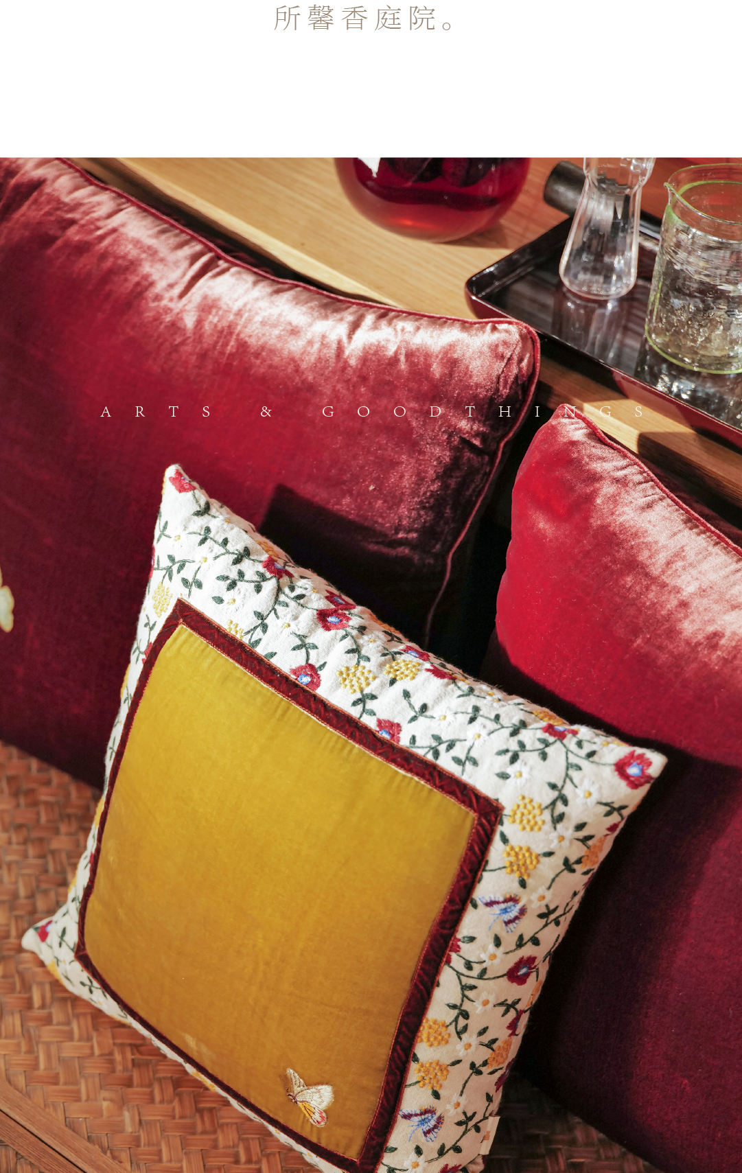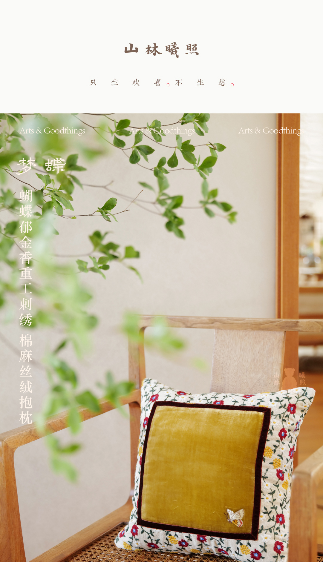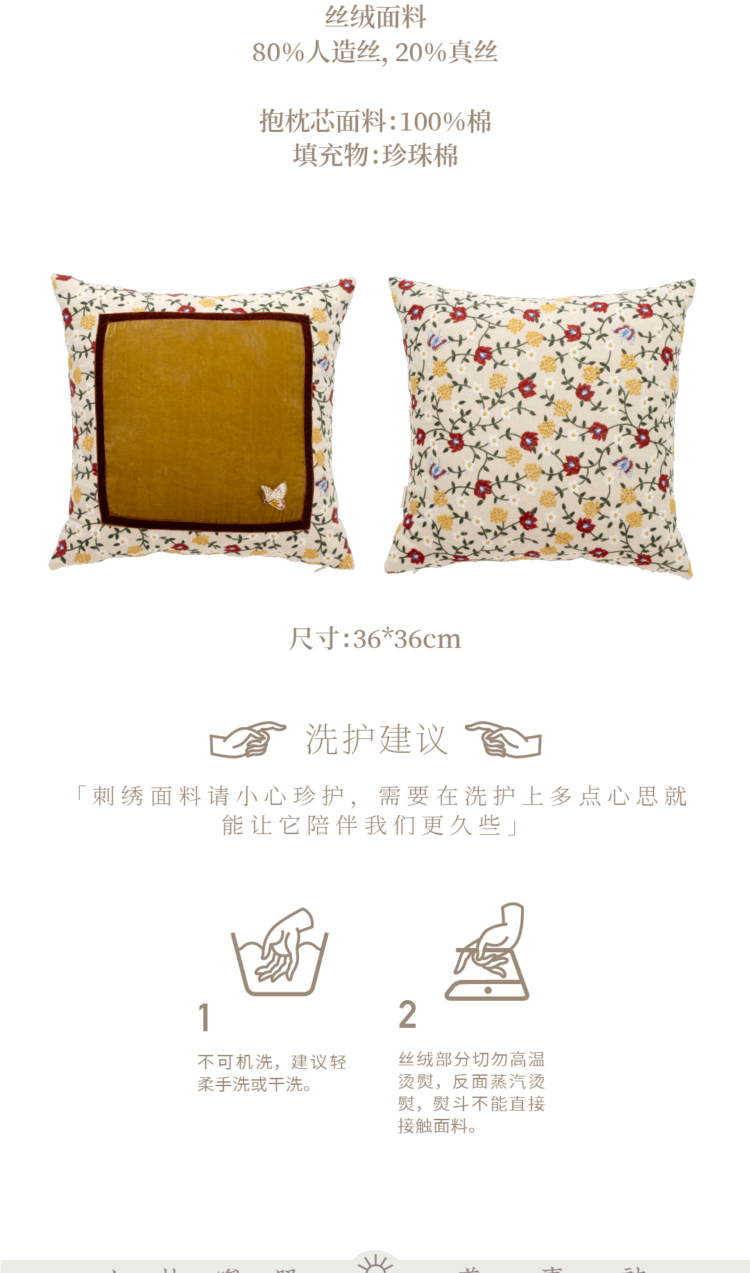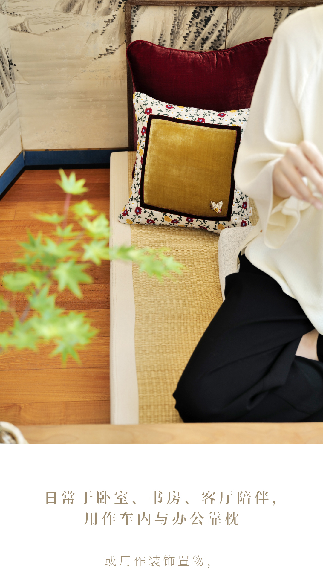 梦蝶 蝴蝶郁金香重工刺绣 棉麻丝绒抱枕 山林曦照