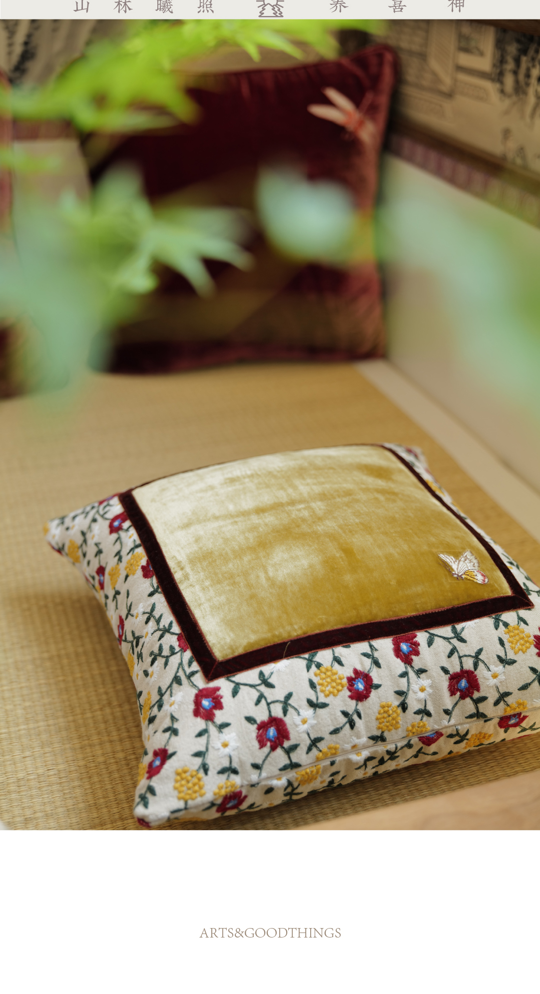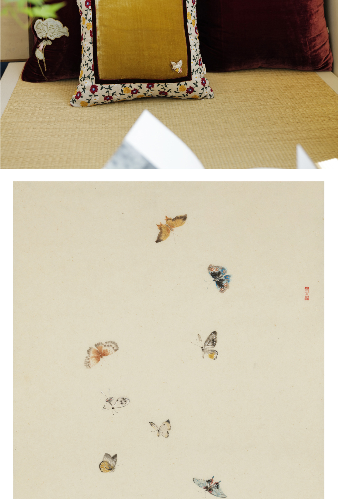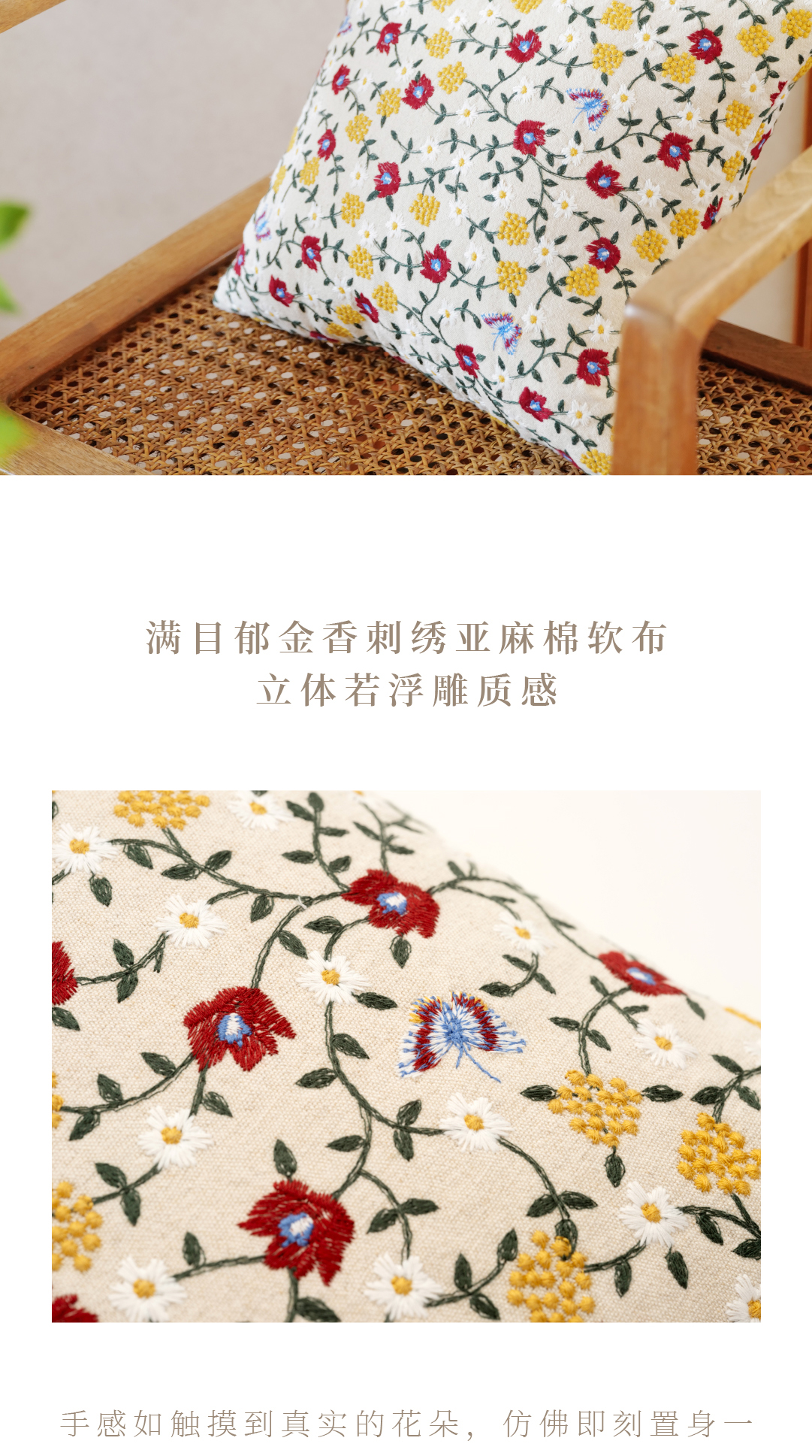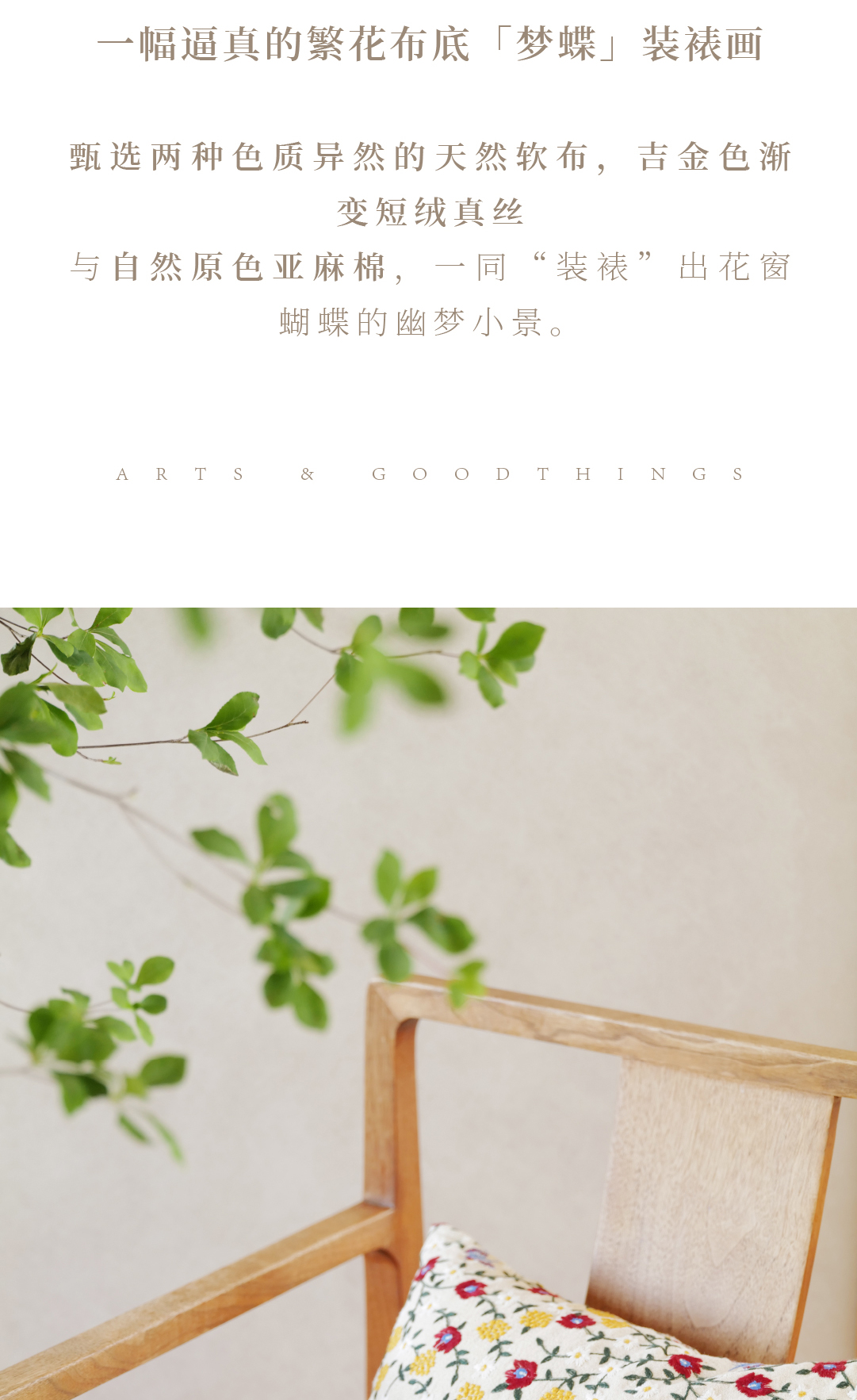 梦蝶 蝴蝶郁金香重工刺绣 棉麻丝绒抱枕 山林曦照