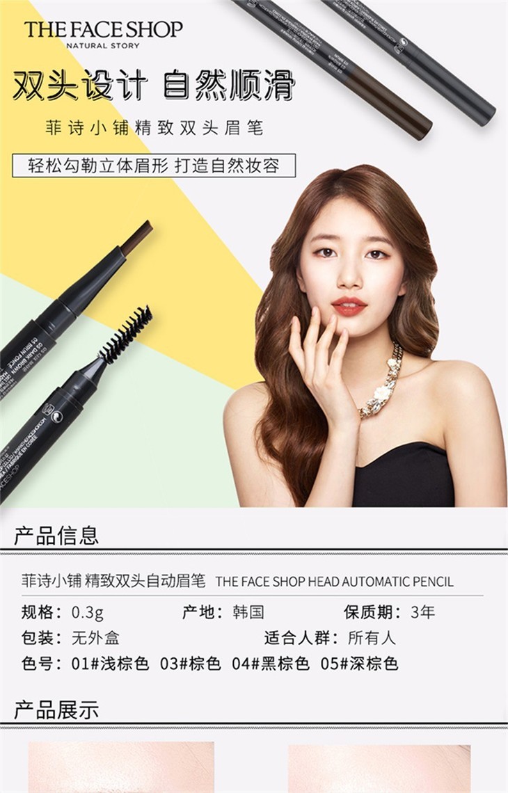 〖一般贸易〗韩国进口The Face Shop/菲诗小铺精致立体双头自动眉笔 防水防汗持久自然带眉刷