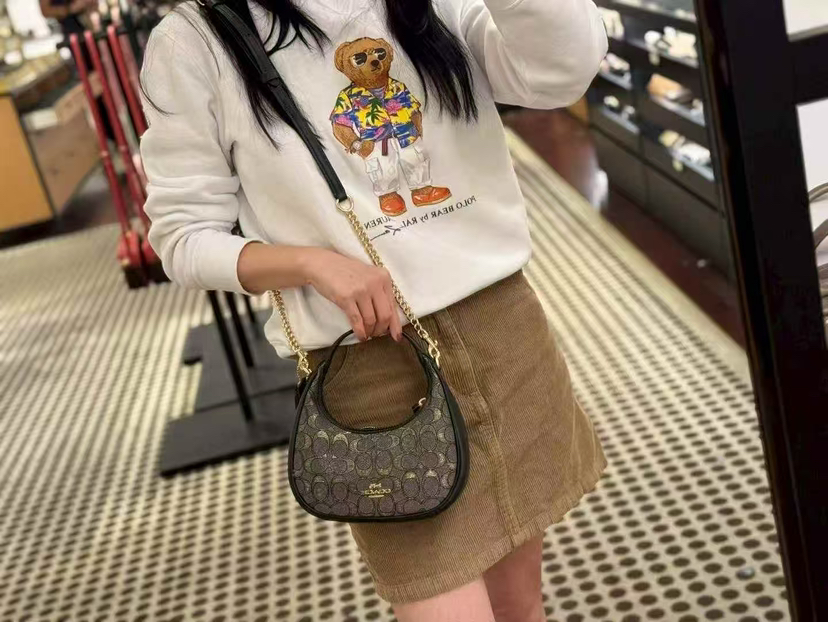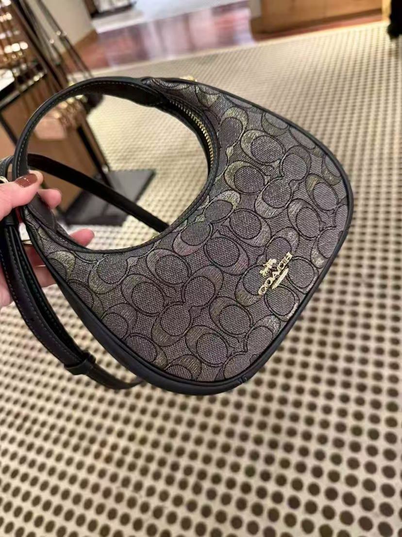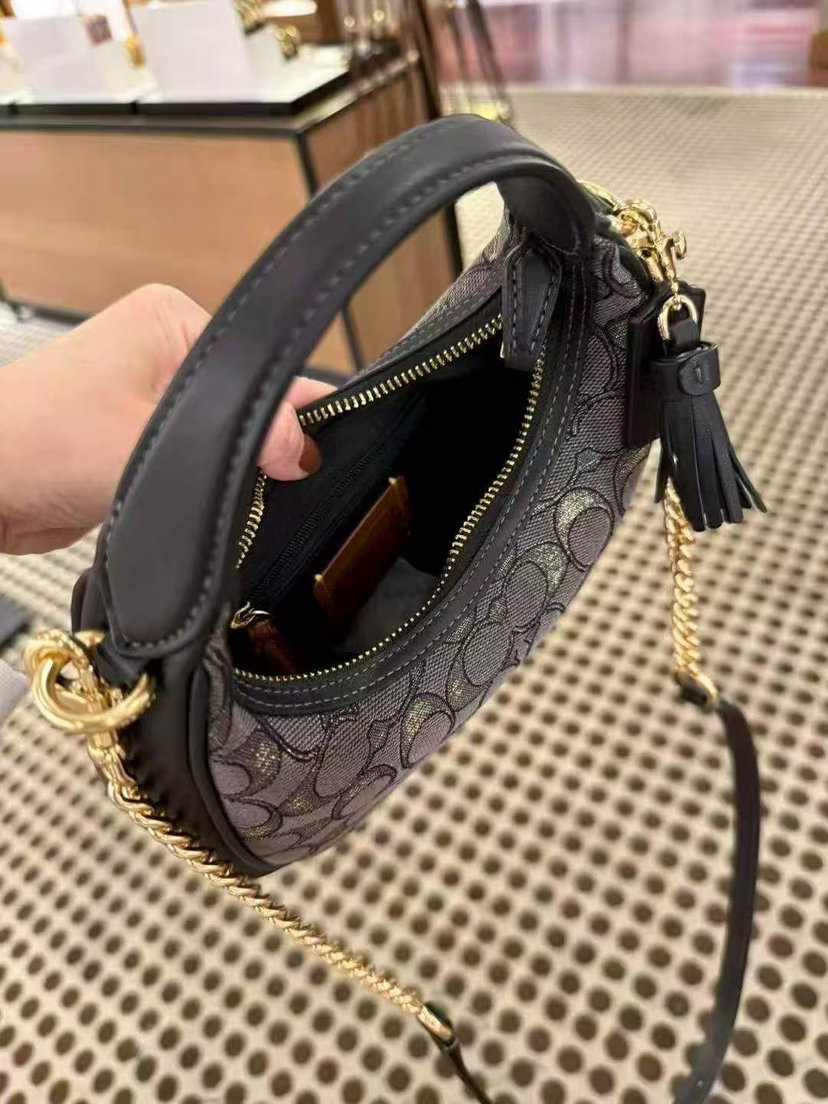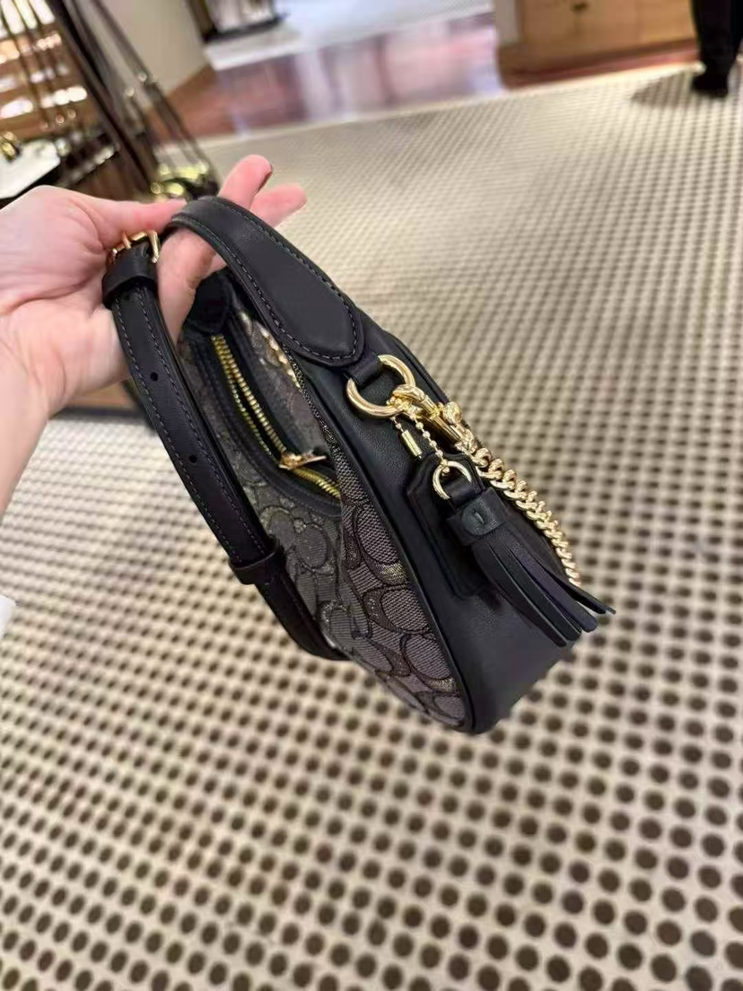 上新折扣¥1650🇺🇸直邮,Coach最新款Carmen 黑金色提花织物拼皮,🉑手提斜挎包(不含金色樱桃钥匙链)