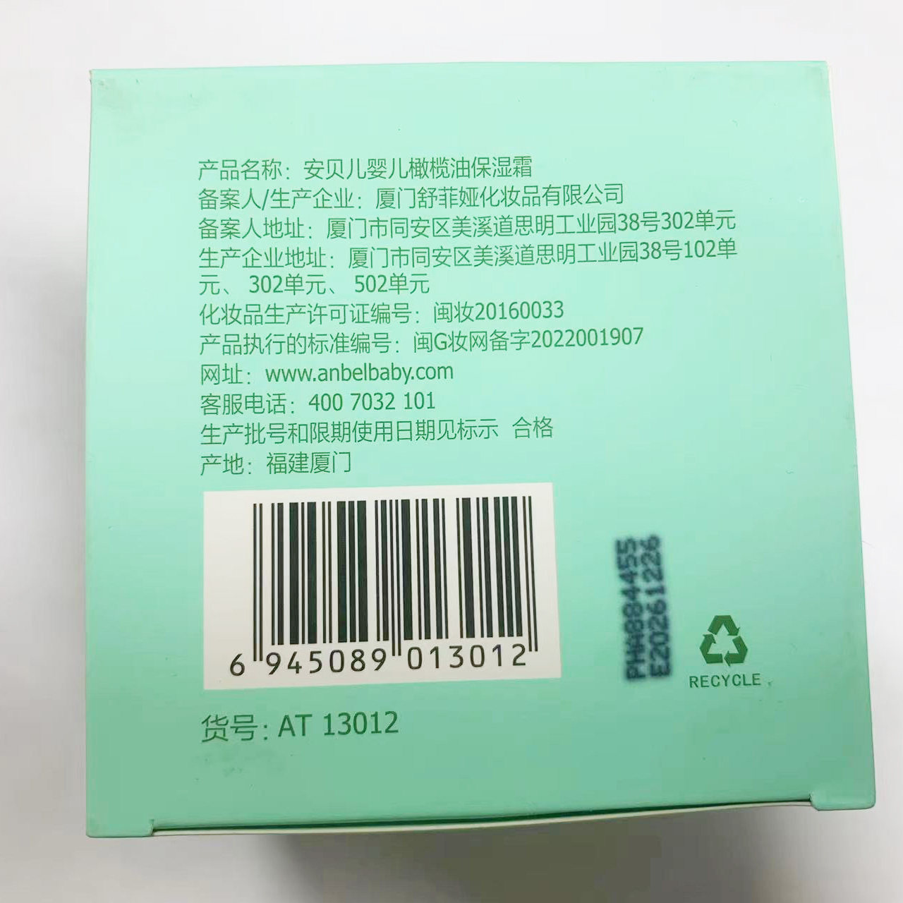 安贝儿婴儿橄榄油保湿霜100g