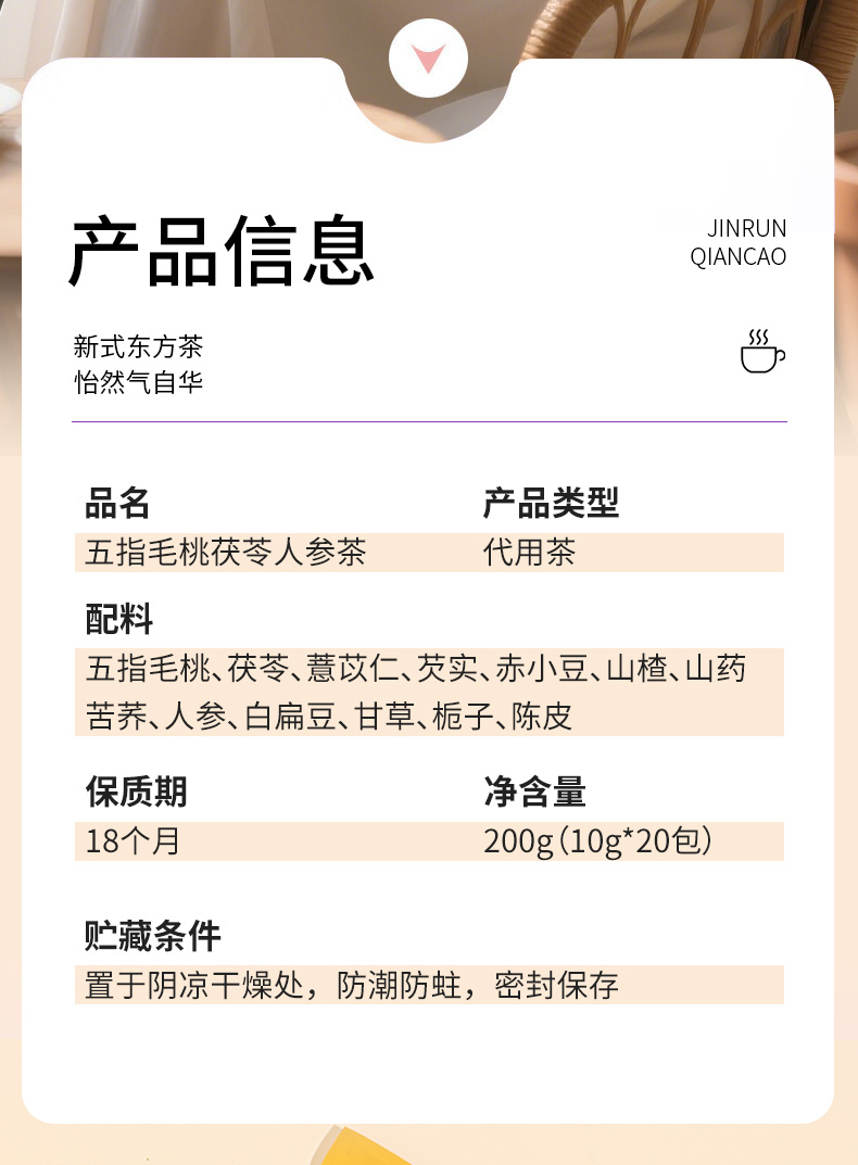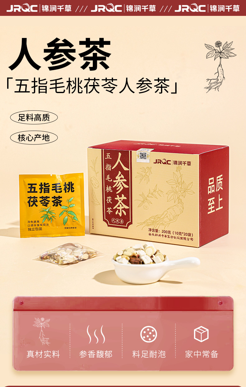 五指毛桃茯苓茶祛健炒熟赤脾小豆湿养生茶包泡水 10g*20袋/盒