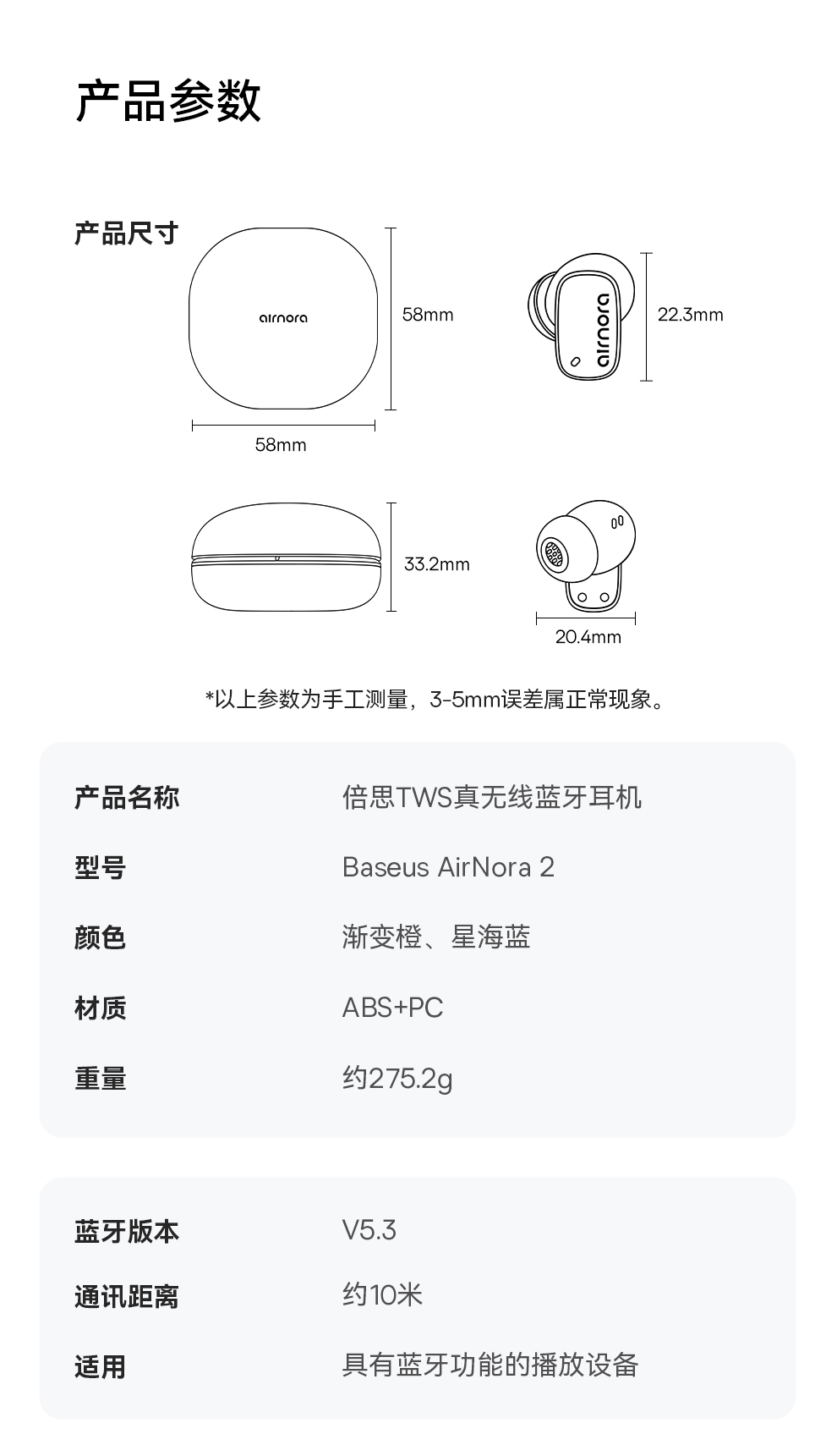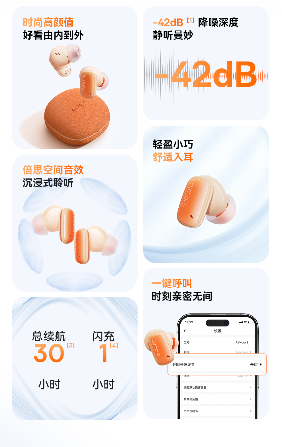 AirNora系列 2 真无线蓝牙耳机主动降噪空间音效女神礼物