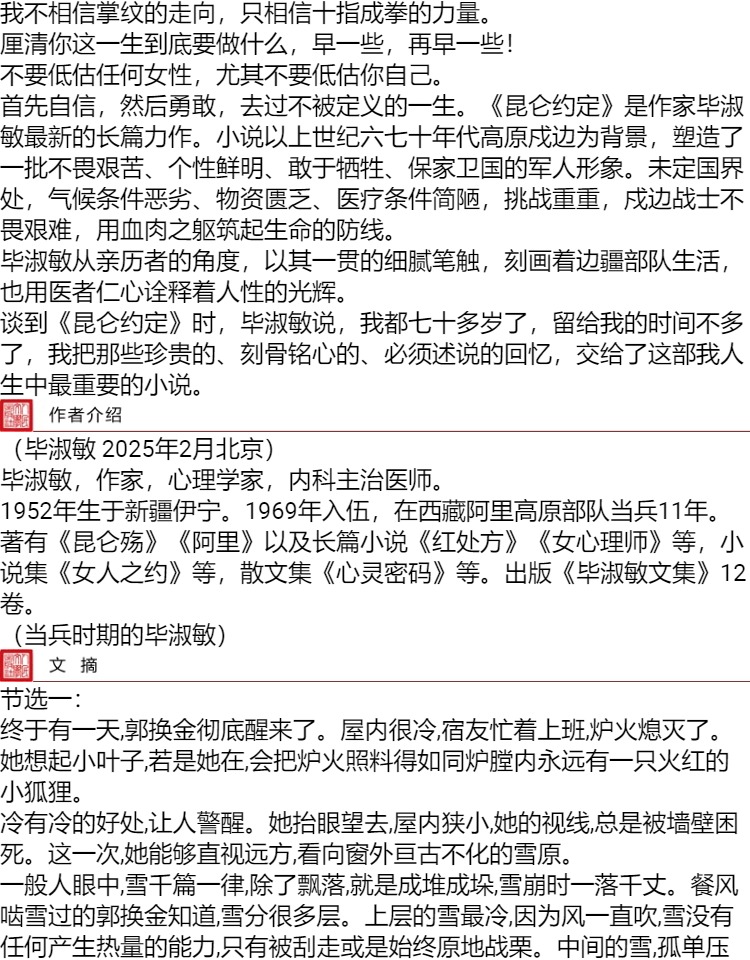 昆仑约定毕淑敏人民文学出版社店长推荐