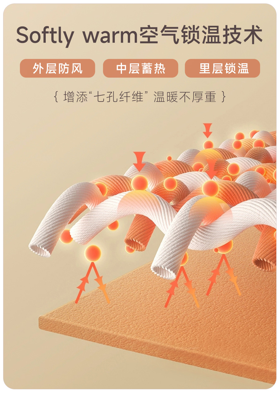 心机小黑裤,裤如其名,以为是简单的打底裤,但其实处处都是小心机。小黑裤看起来不是特别厚,但采用了”softly warm”空气锁温技术,再加上截面呈现三明治分层结构,外层防风,中层蓄热,里层锁温,看起来一般,实际却有三倍保暖效果,穿上轻便不臃肿!而且面料中具有七孔纤维,使得空气流动性增强,穿在身上是那种暖而不闷的感觉,很赞!