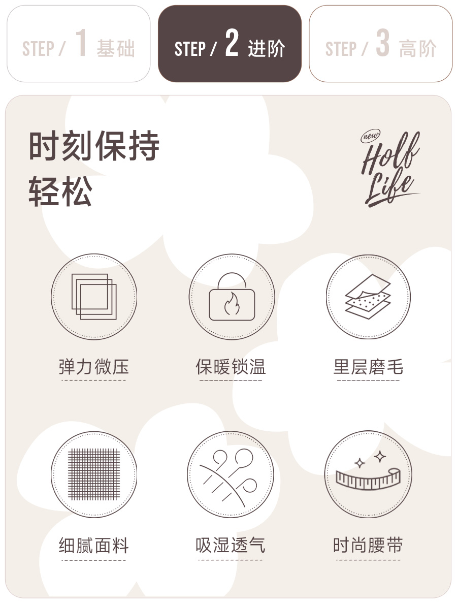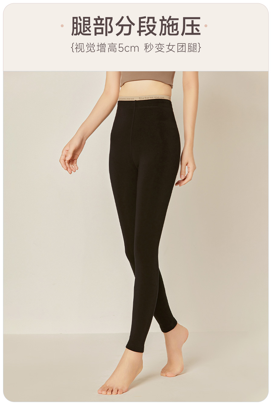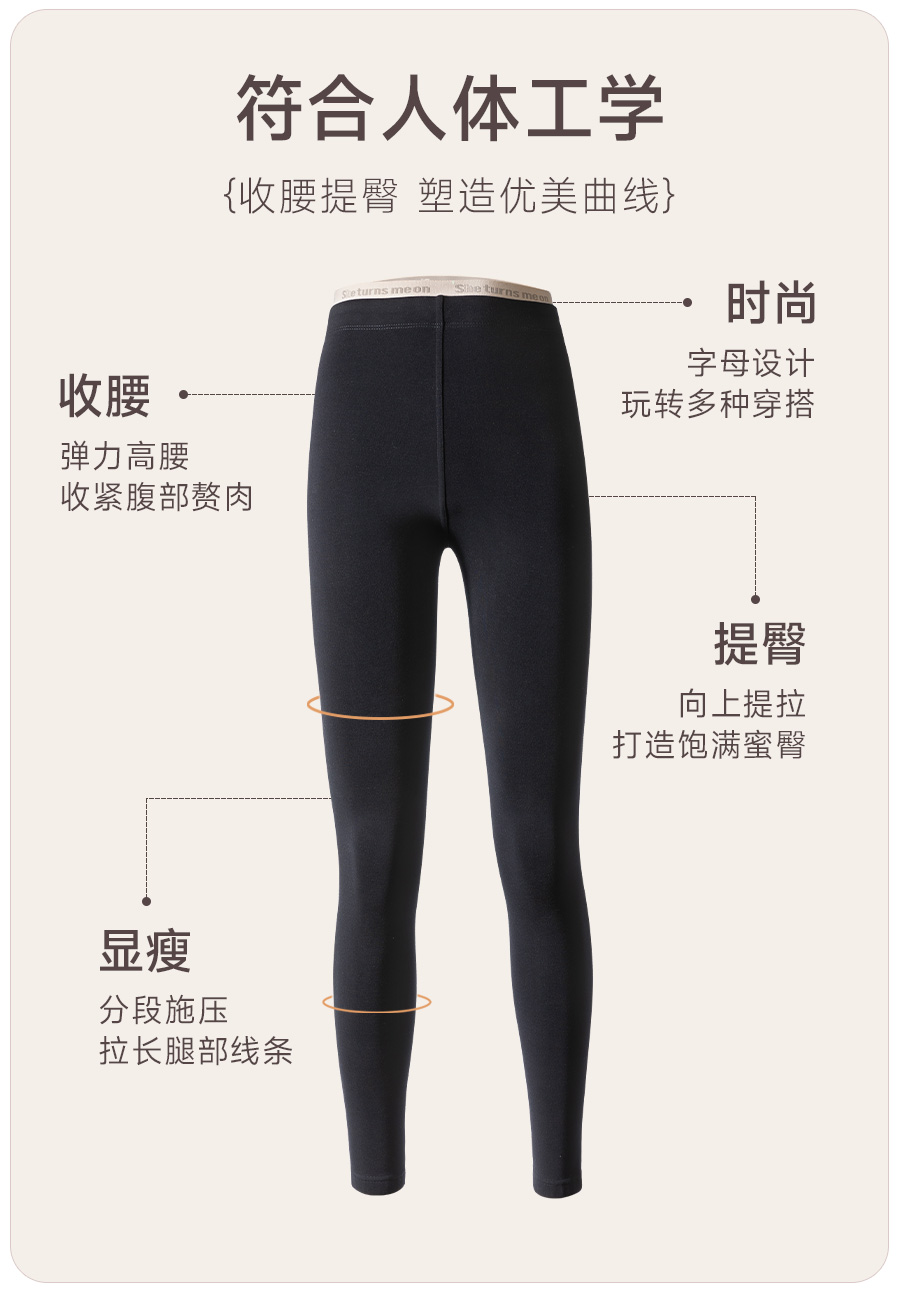 保暖只是基本功能,一条好的裤子当然要好穿好看啦!心机小黑裤厉害的是采用0.618的黄金比例设计,搭配分段施压的版型,加上双层松紧弹力收腹带和高精密梭织精梳棉混纺弹力氨纶,穿上是刚刚好的微压体感,正面收腹,背面提臀,延展性也很ok,轻松拥有蜜桃臀的同时,视觉上整个人也都被拉长了!