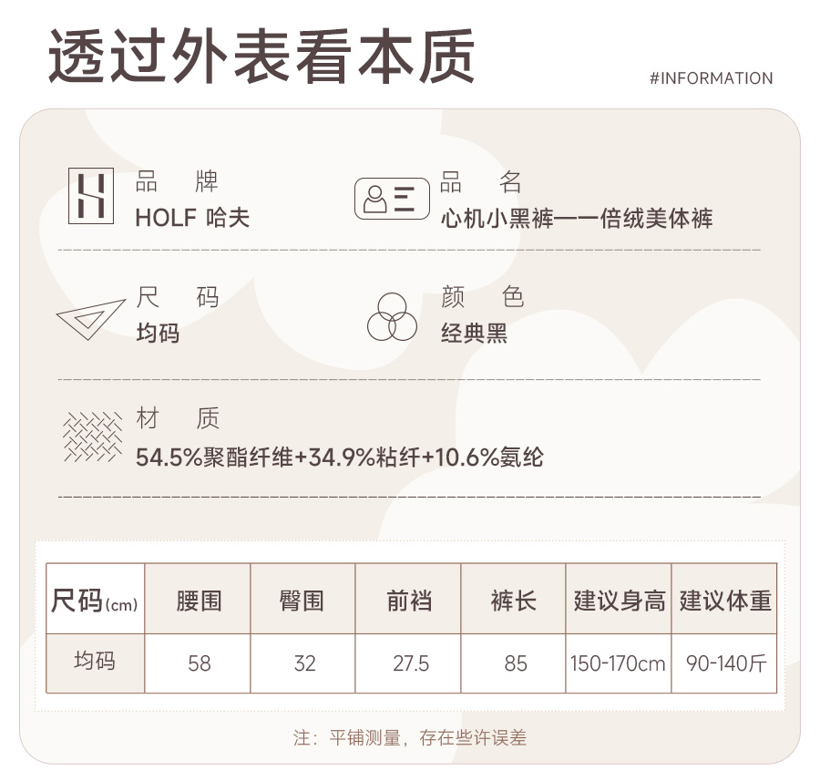 [屁侠亲荐.pippa]HOLF哈夫 心机美体小黑裤 收腹提臀美体裤 一倍绒秋冬温暖款 均码 80-160斤可穿