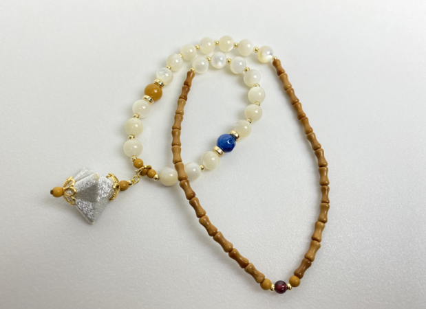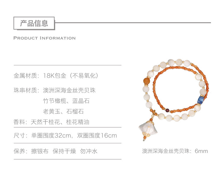 04 竹节橄榄核蝶贝桂花香包双圈手链