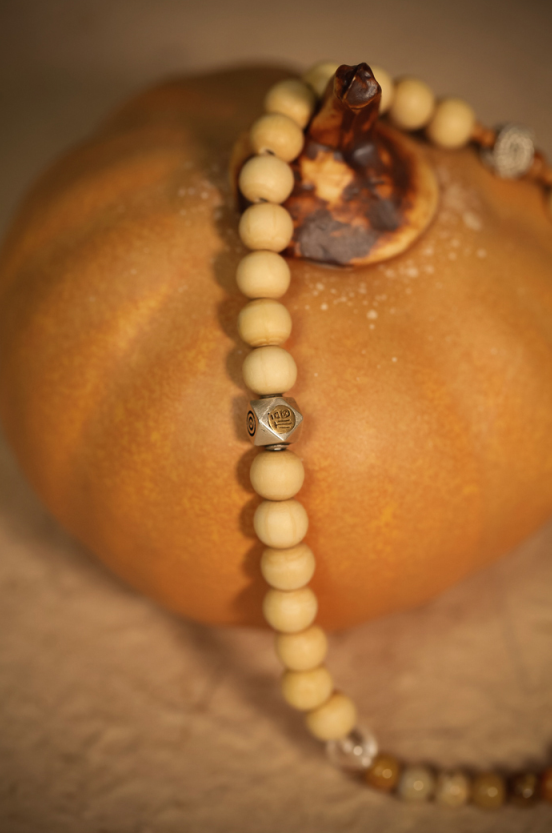 石材:八棱珠、六道木、珊瑚玉、白水晶、橄榄、老黄玉、白化石