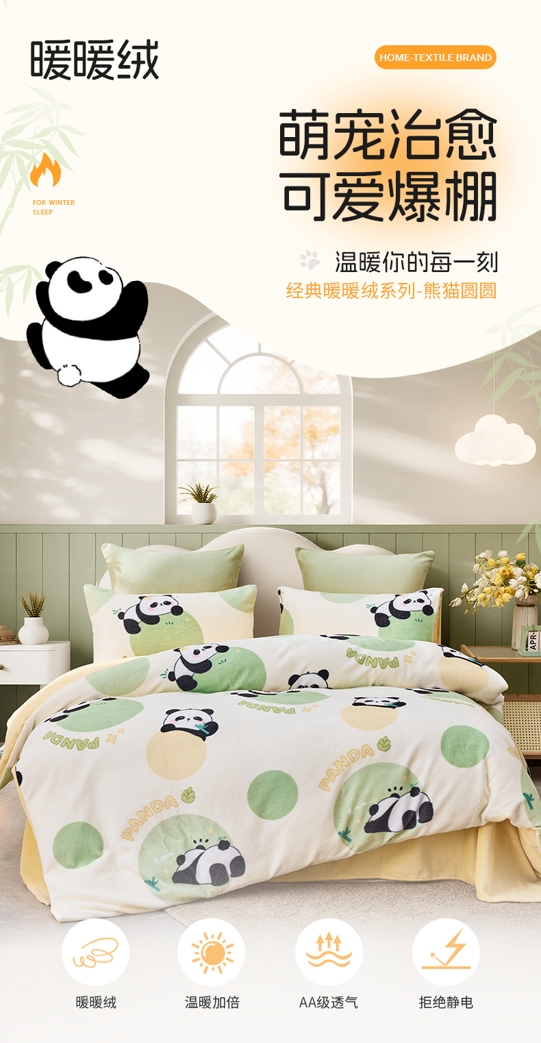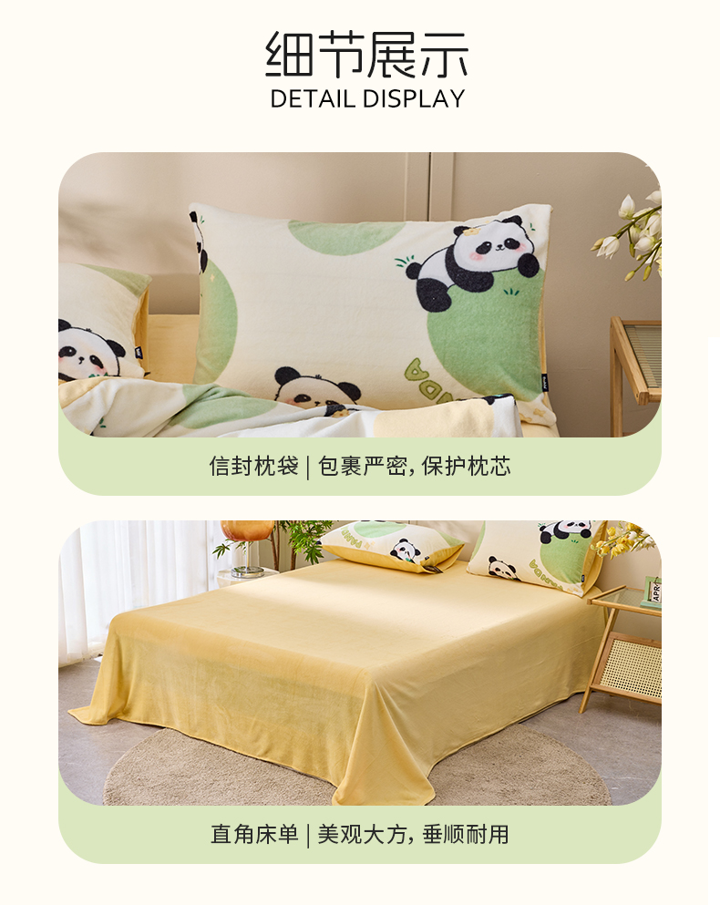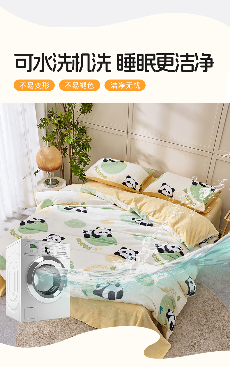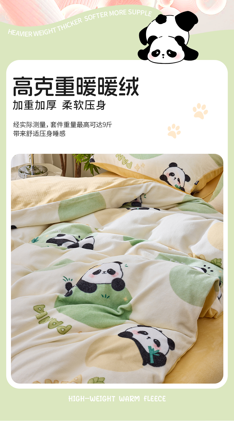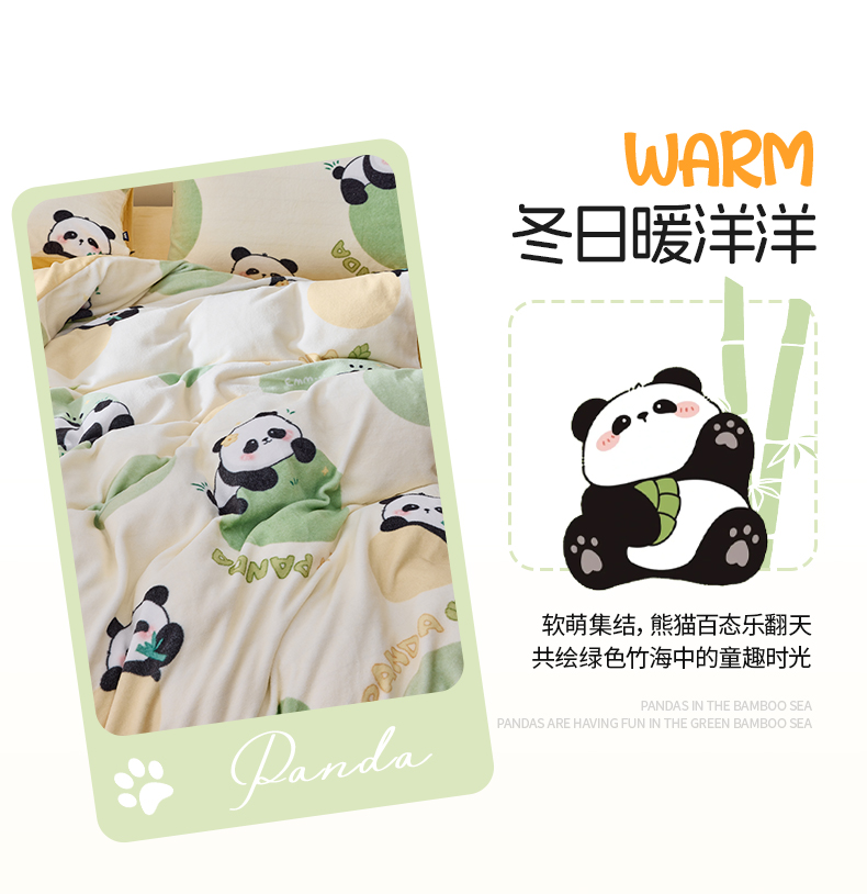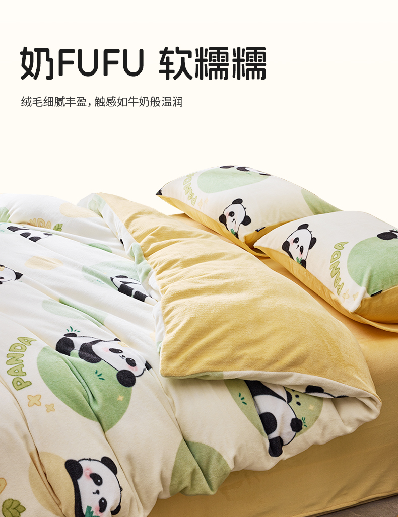 多喜爱 印花绒卡通套件 【柔软舒适】【高精密抗静电】【不跑被不起球】熊猫圆圆