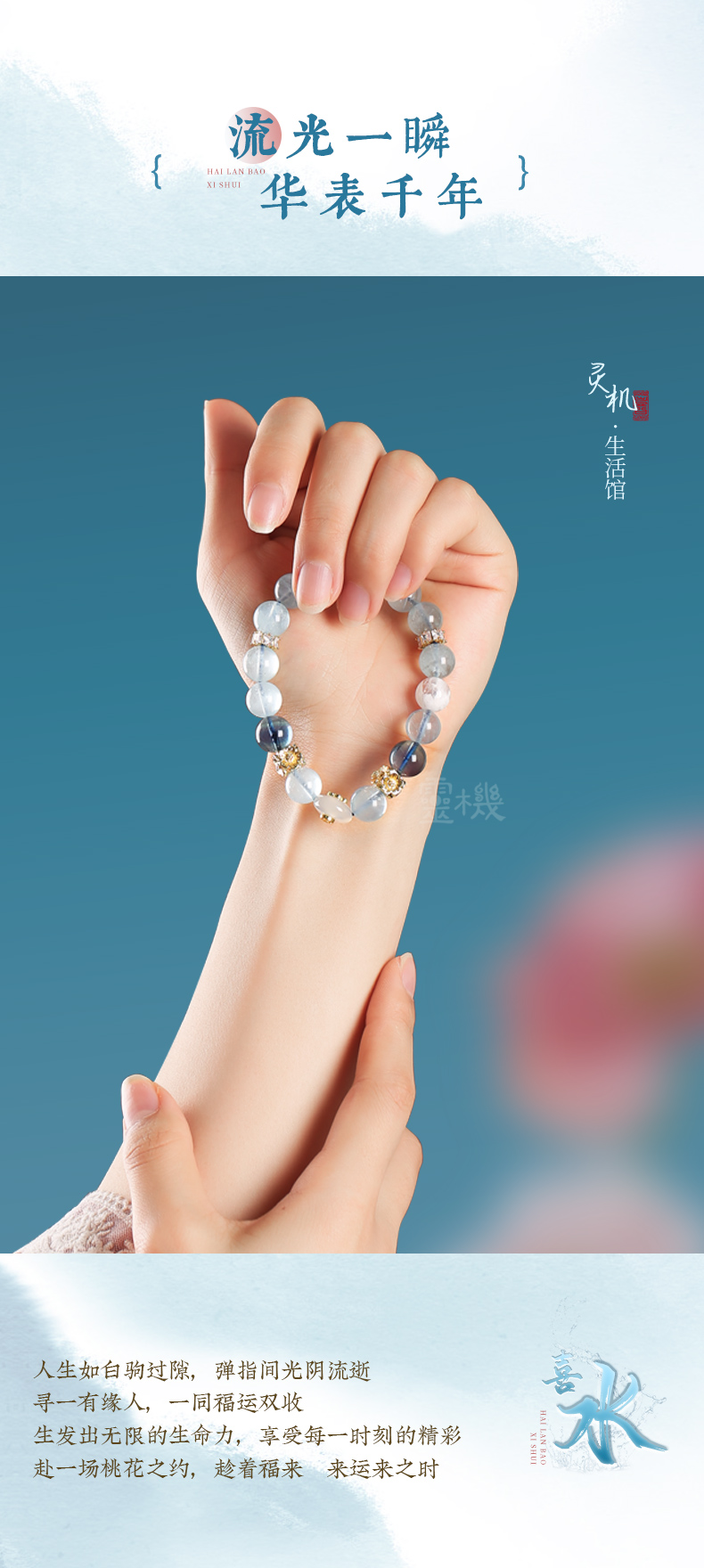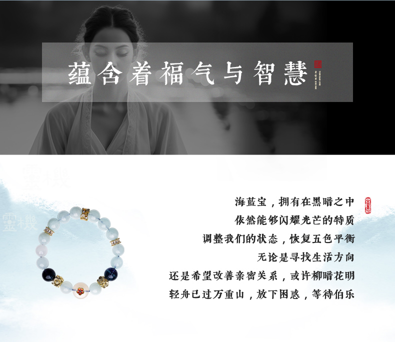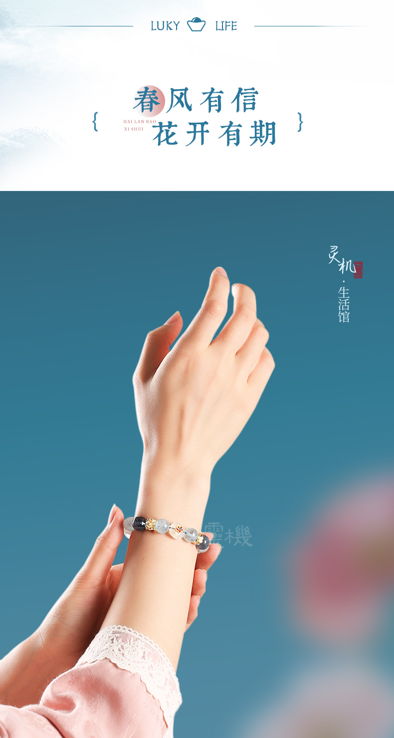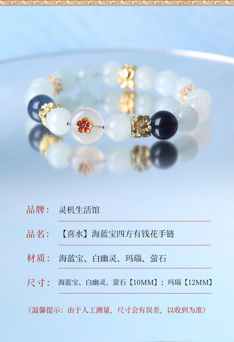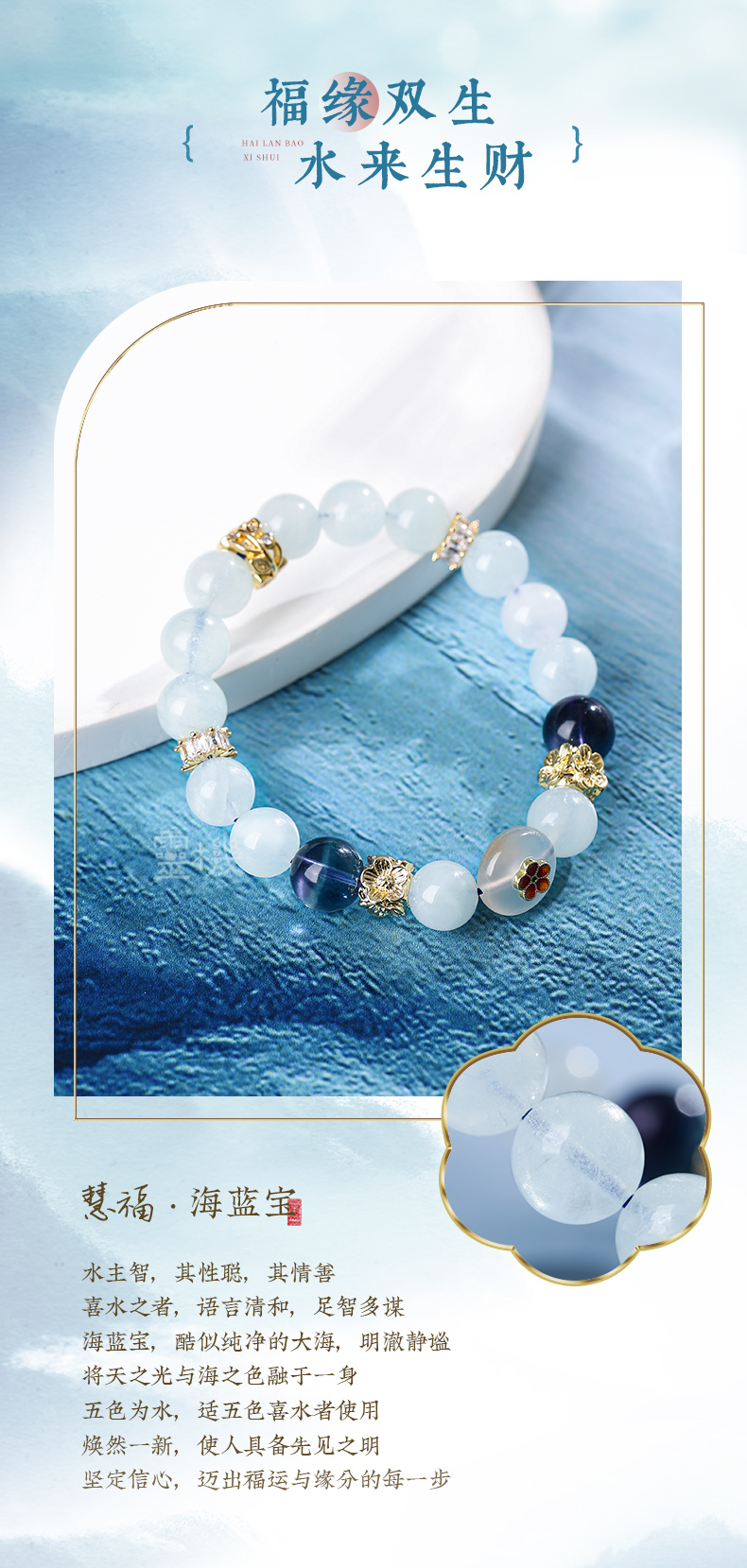 【喜水】海蓝宝水晶手链 喜用水专属原创设计手串