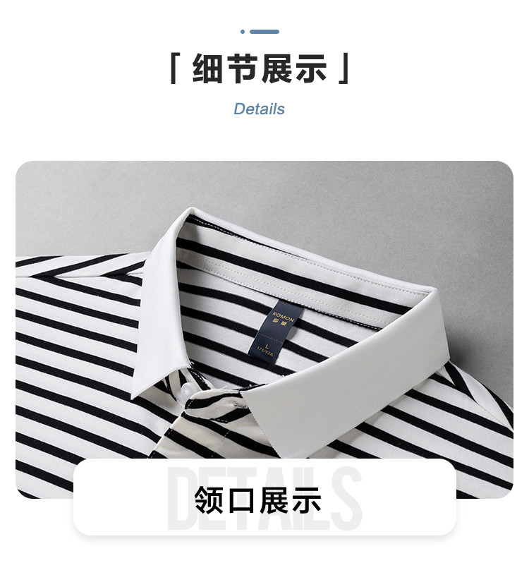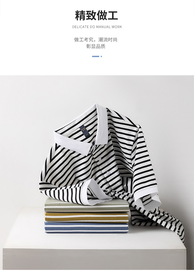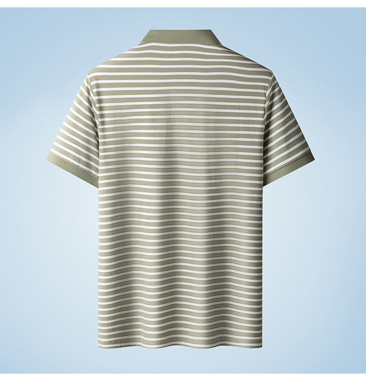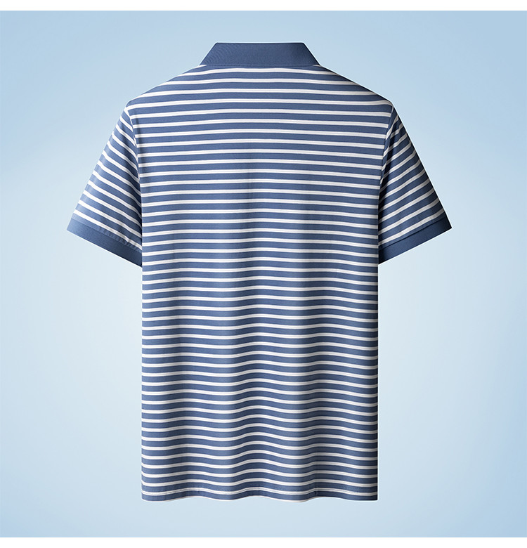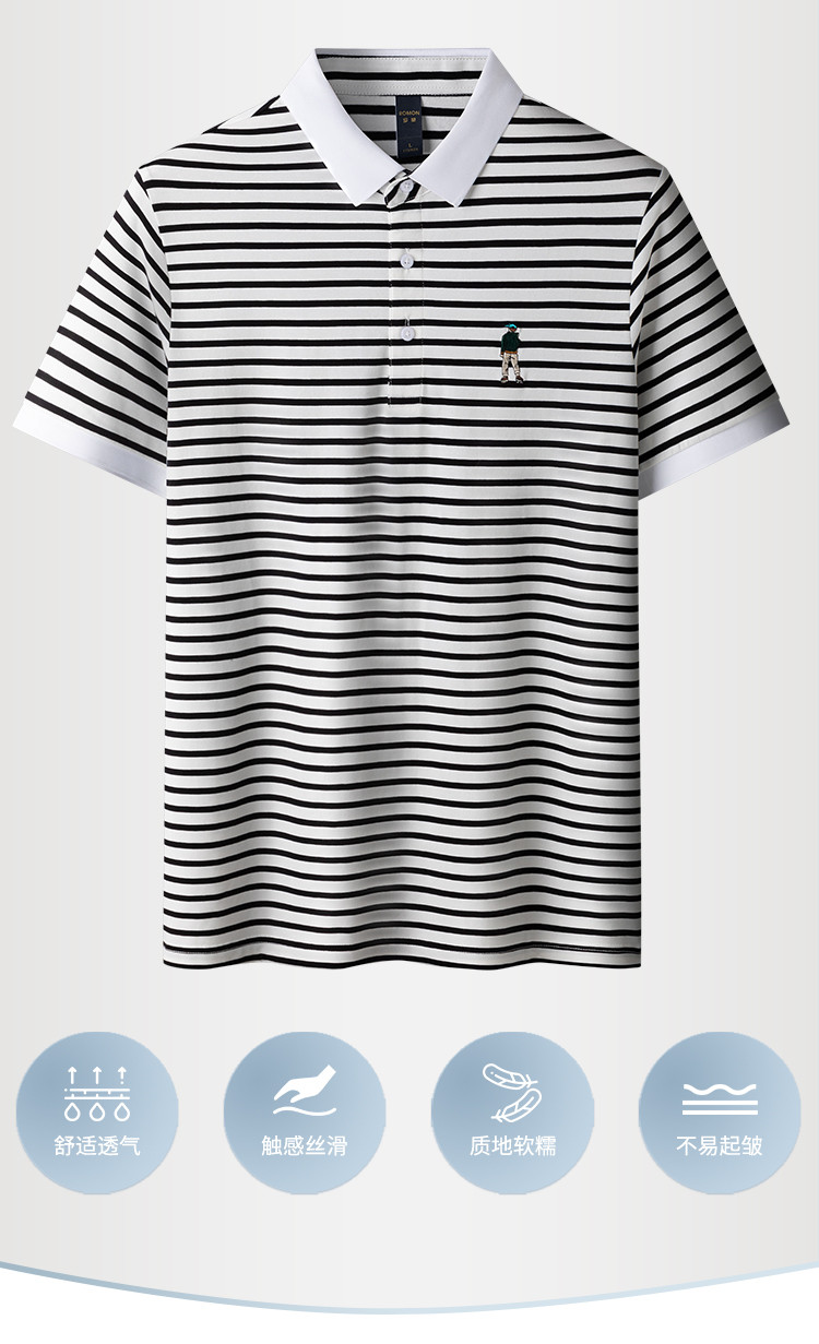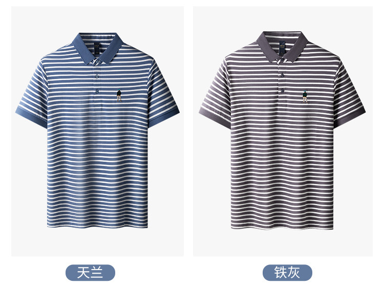 【含桑蚕丝】罗蒙夏季条纹男士t恤短袖polo衫商务polo衫男短袖
