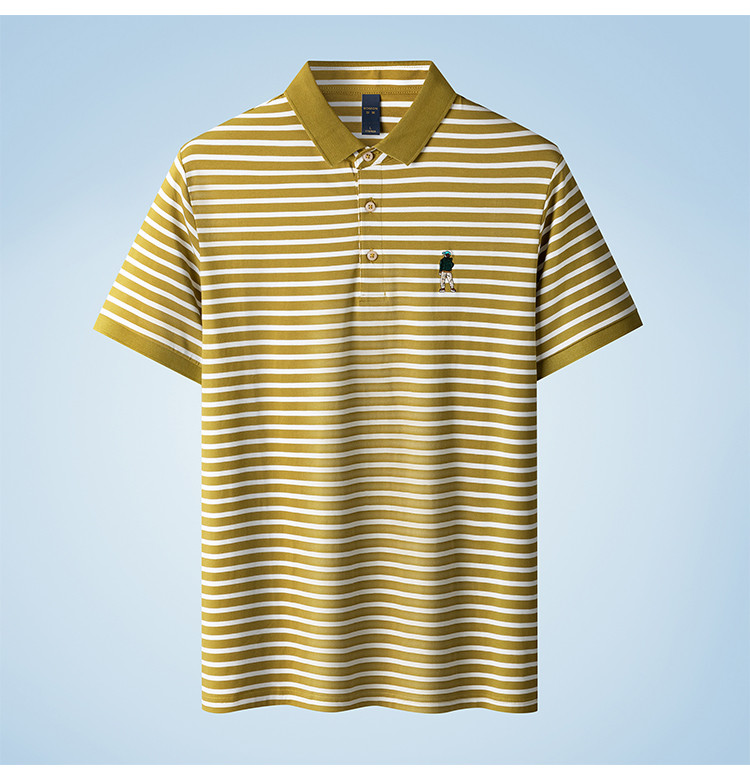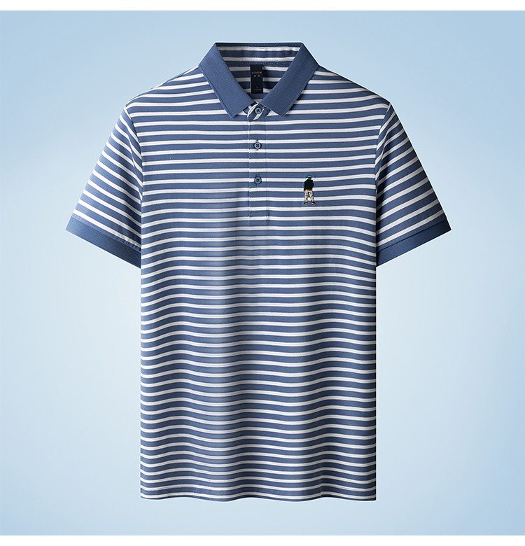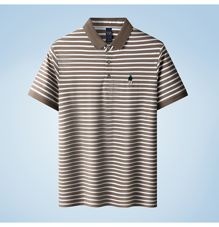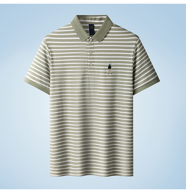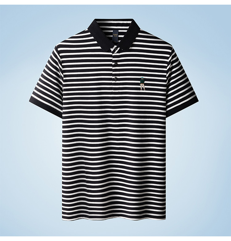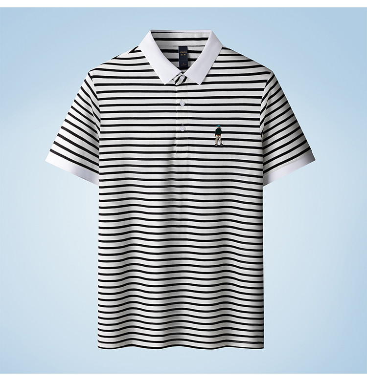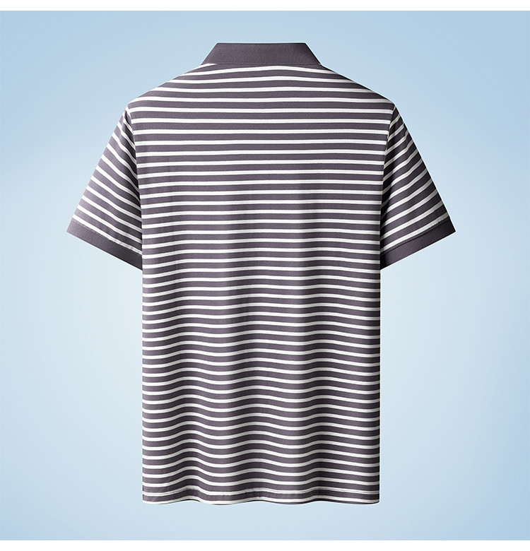 【含桑蚕丝】罗蒙夏季条纹男士t恤短袖polo衫商务polo衫男短袖