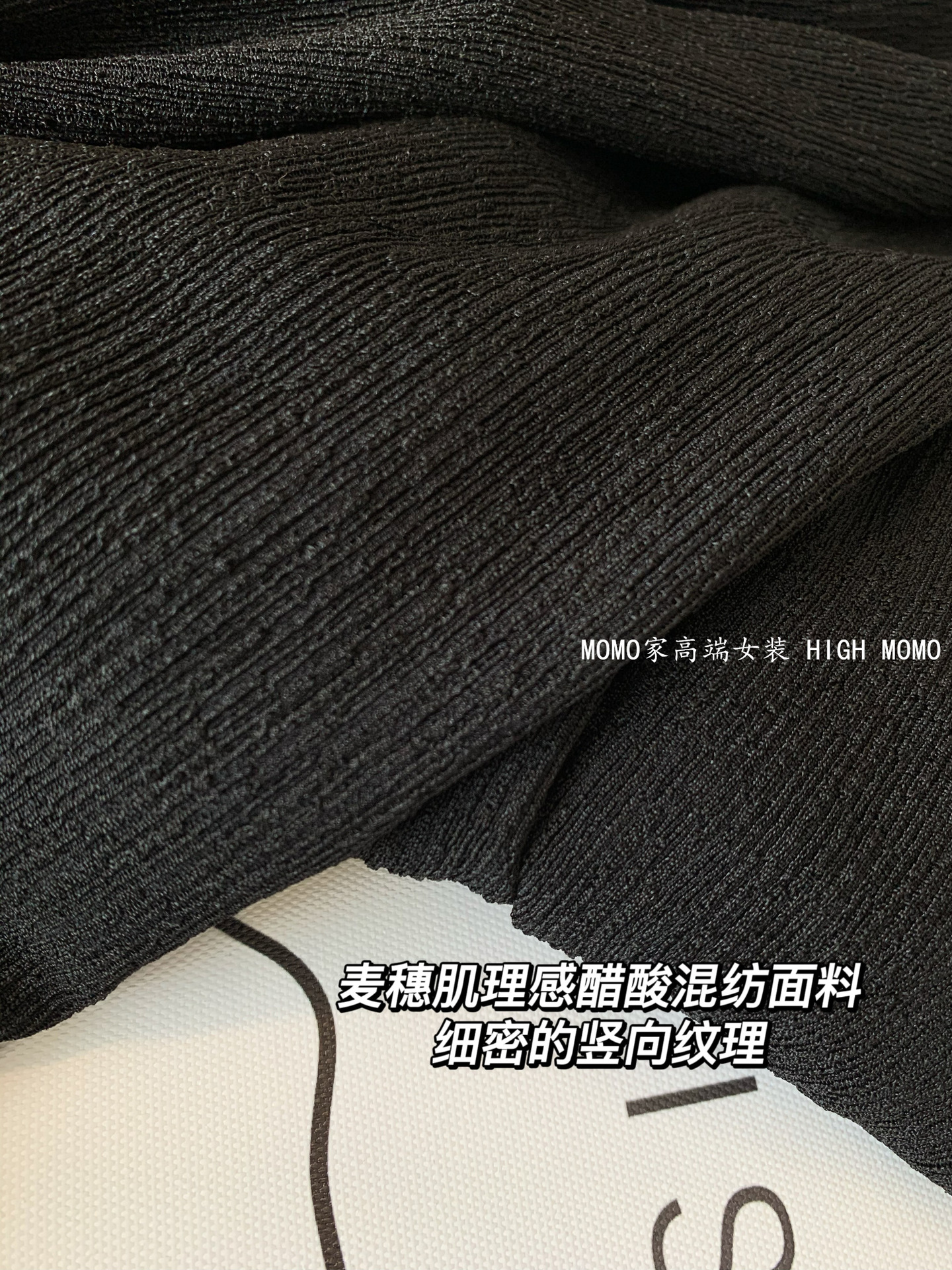 麦穗肌理感醋酸混纺面料,有着细密的竖向纹理,