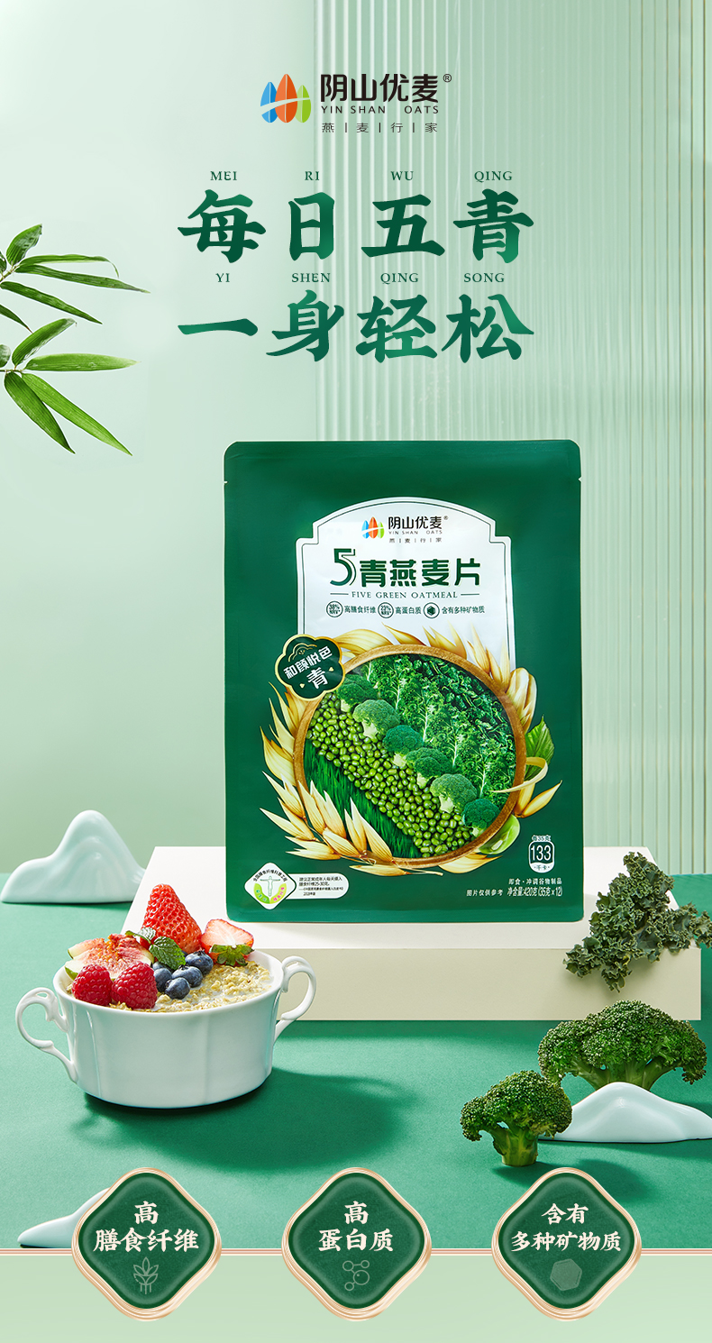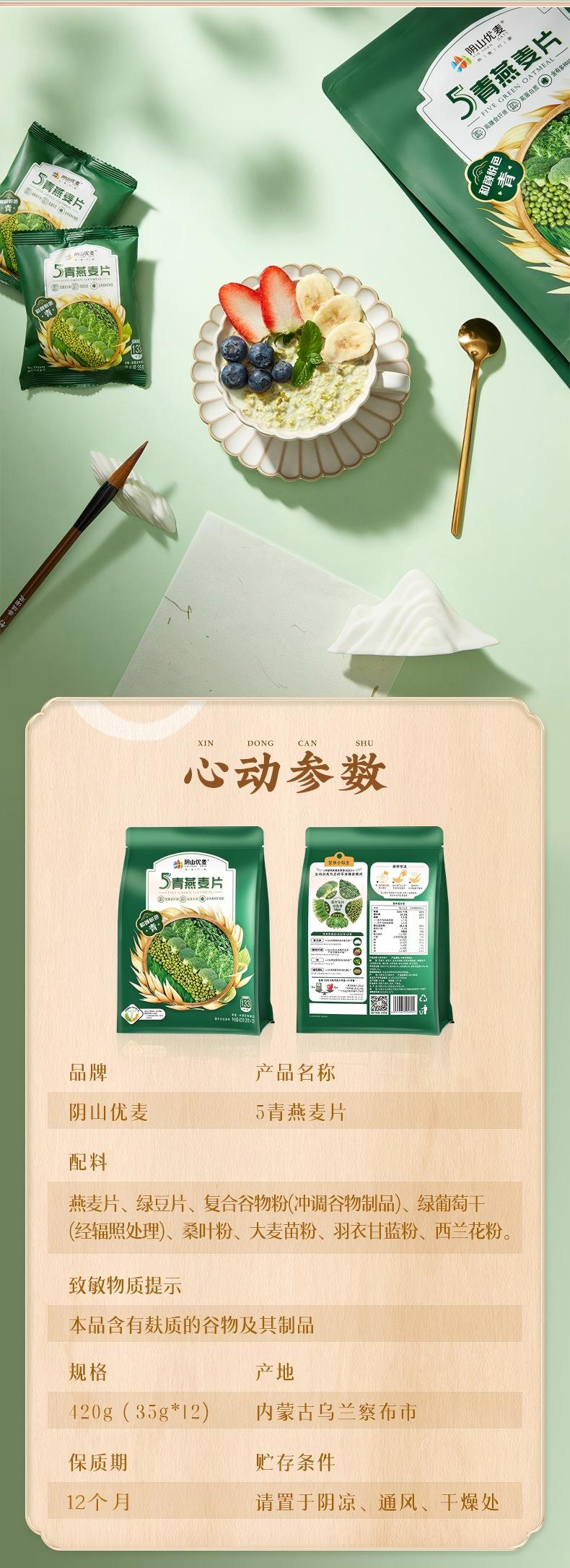 优选|阴山优麦5青燕麦片 源自内蒙古大草原 高蛋白高膳食纤维 清爽口感 420g*2袋