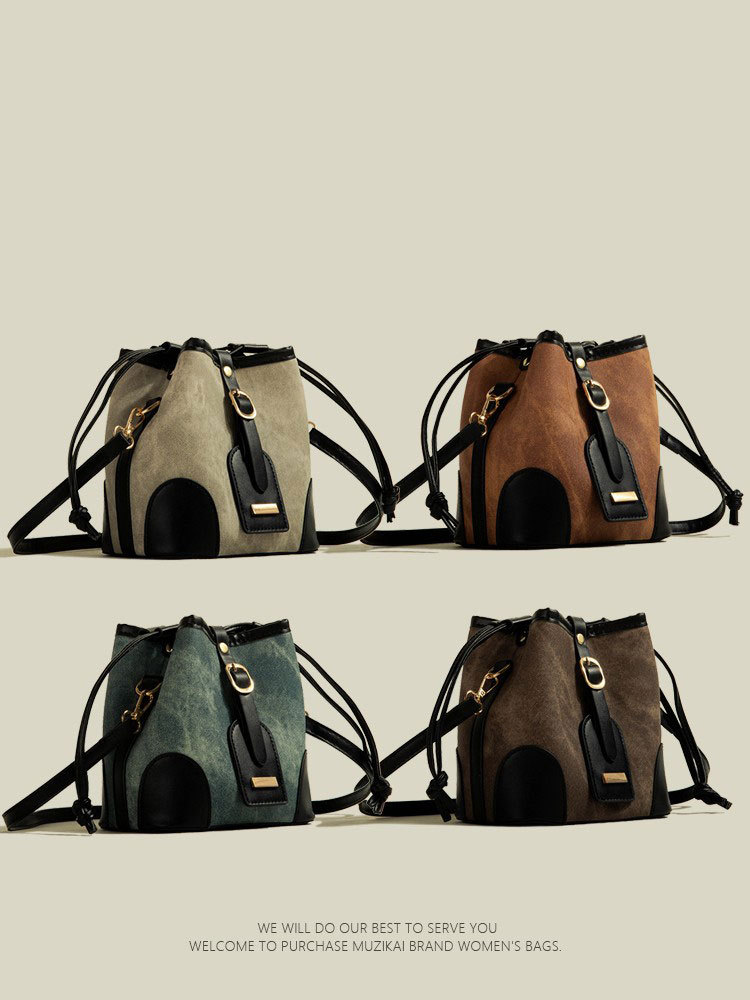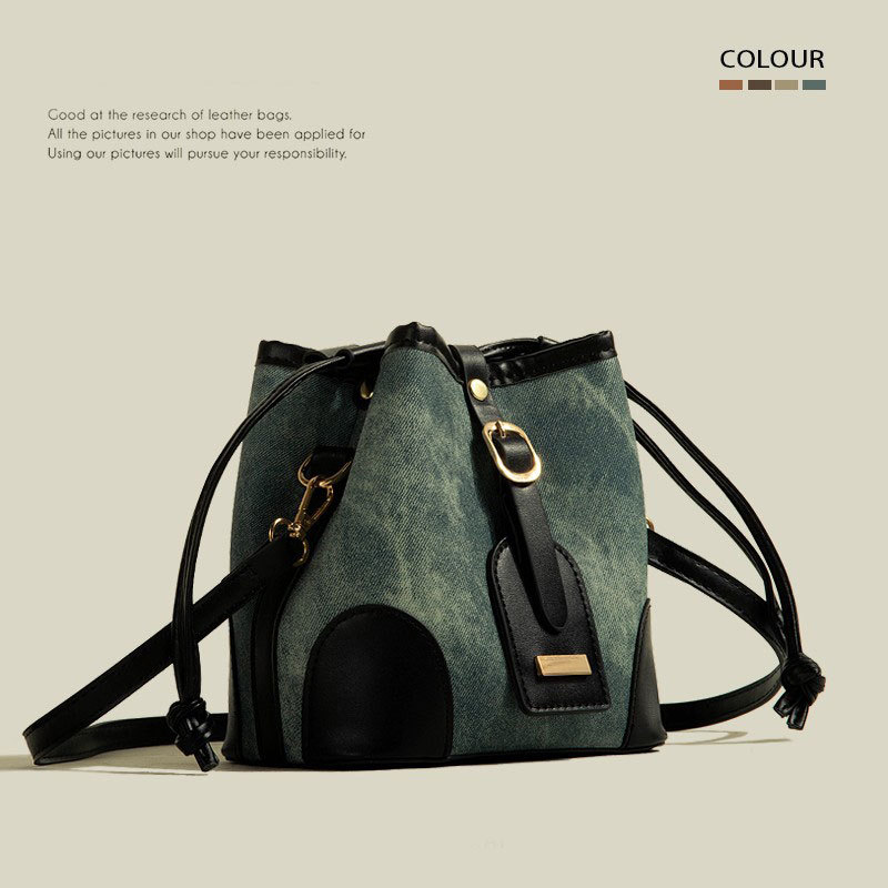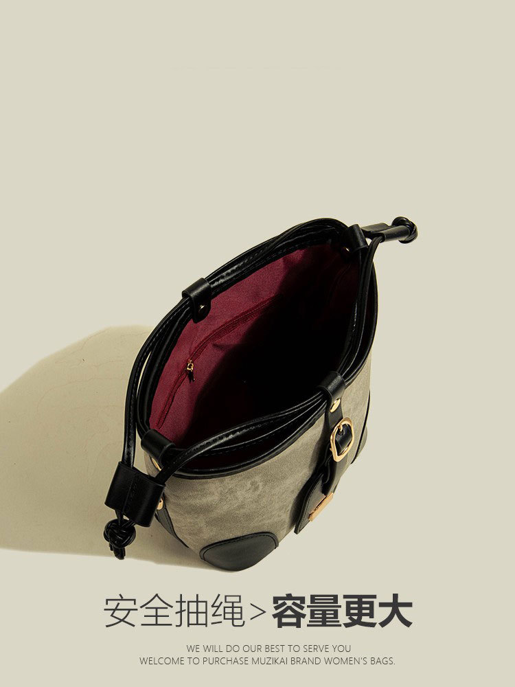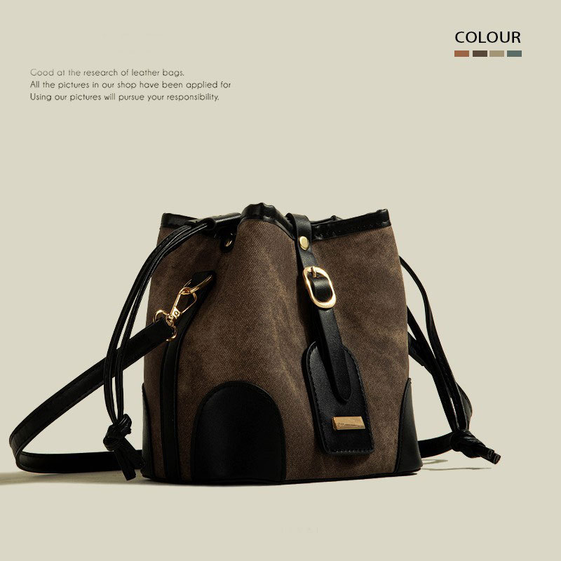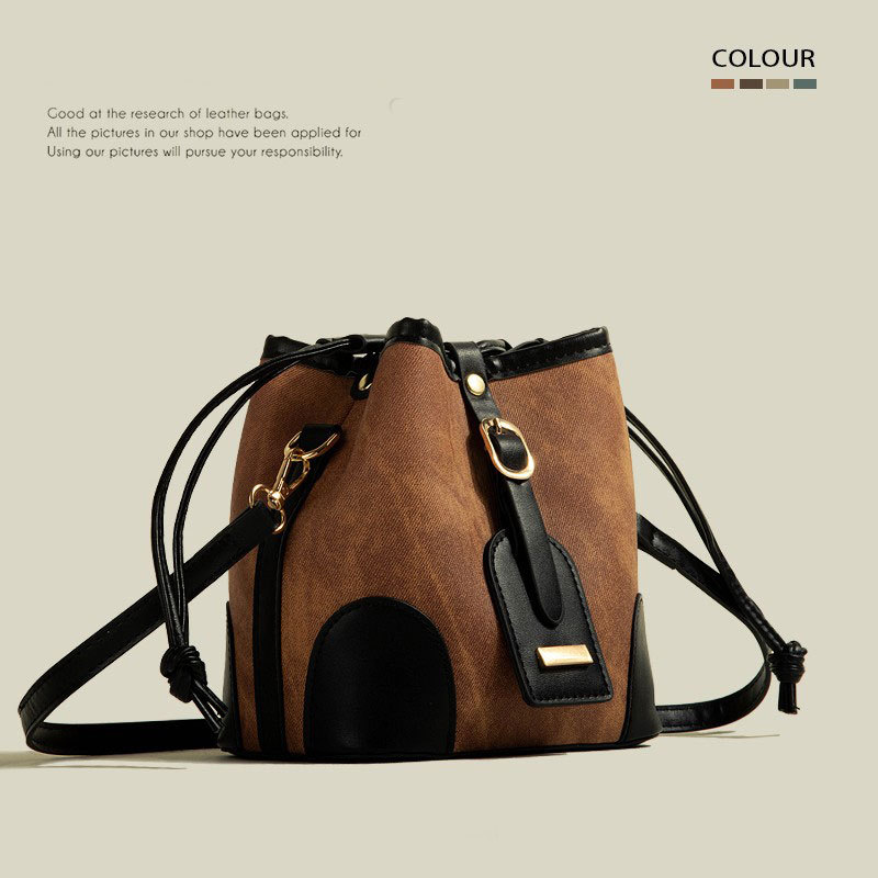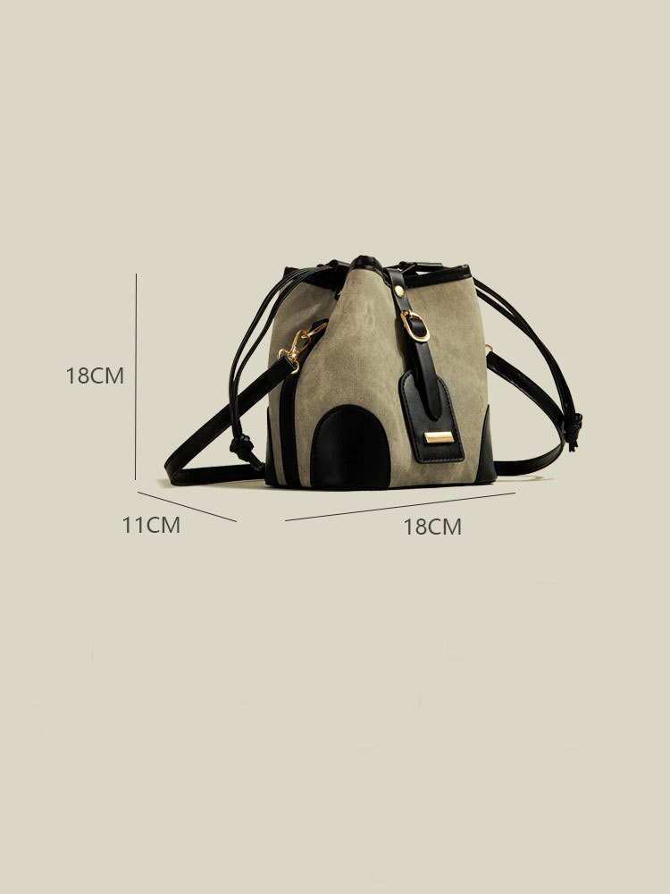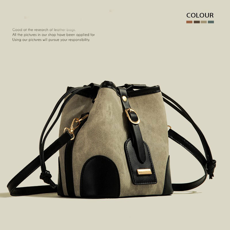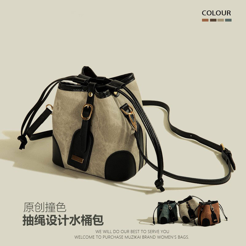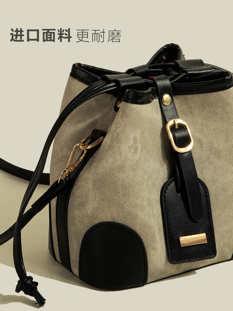 【经典撞色❗️抽绳设计水桶包】简约百搭包包,容量大实用性强,优质PU皮革制作,耐磨耐用,2026新款时尚撞色水桶包小众高级感通勤单肩包QQ