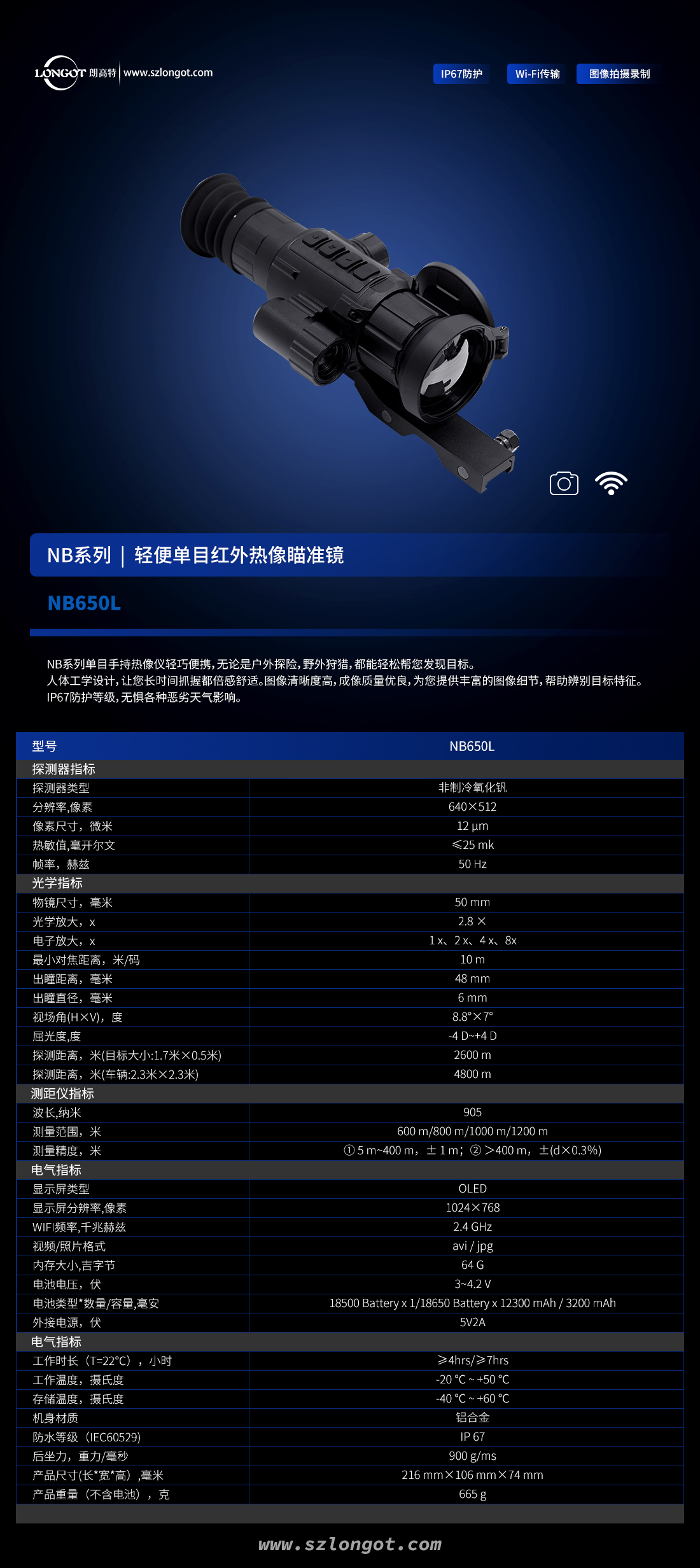 朗高特NB650L红外热成像电了测距自动落点解算