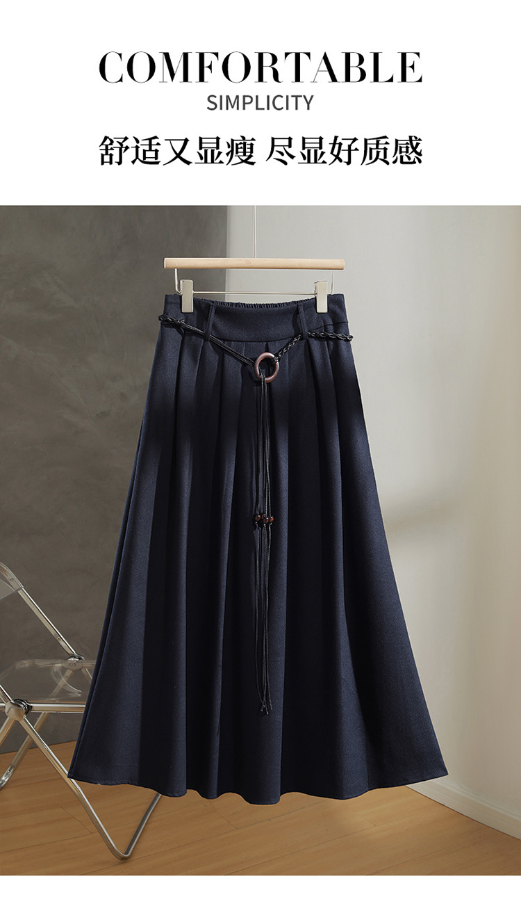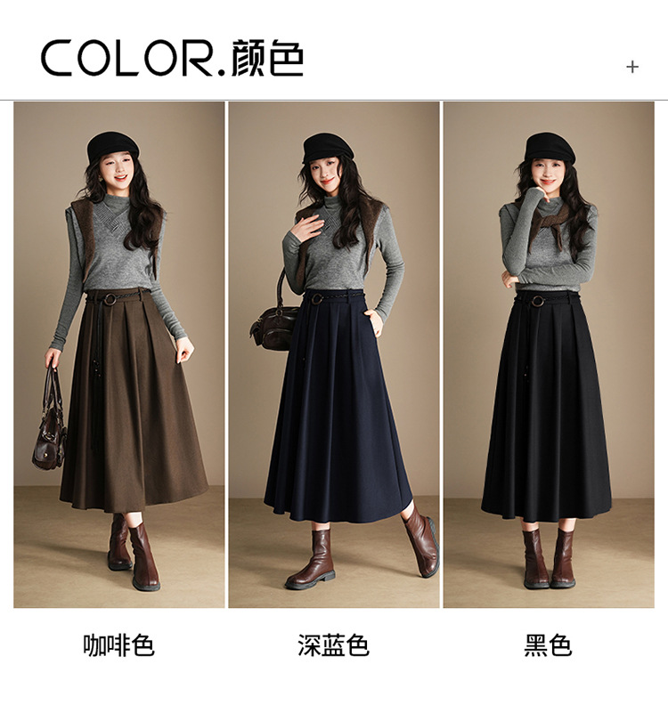 QYM A130-Y毛呢半身裙高腰时尚气质百褶A字裙 商品图3