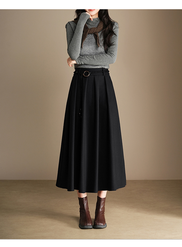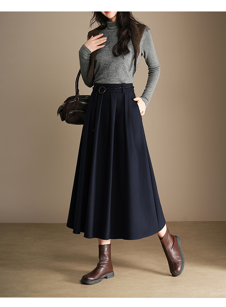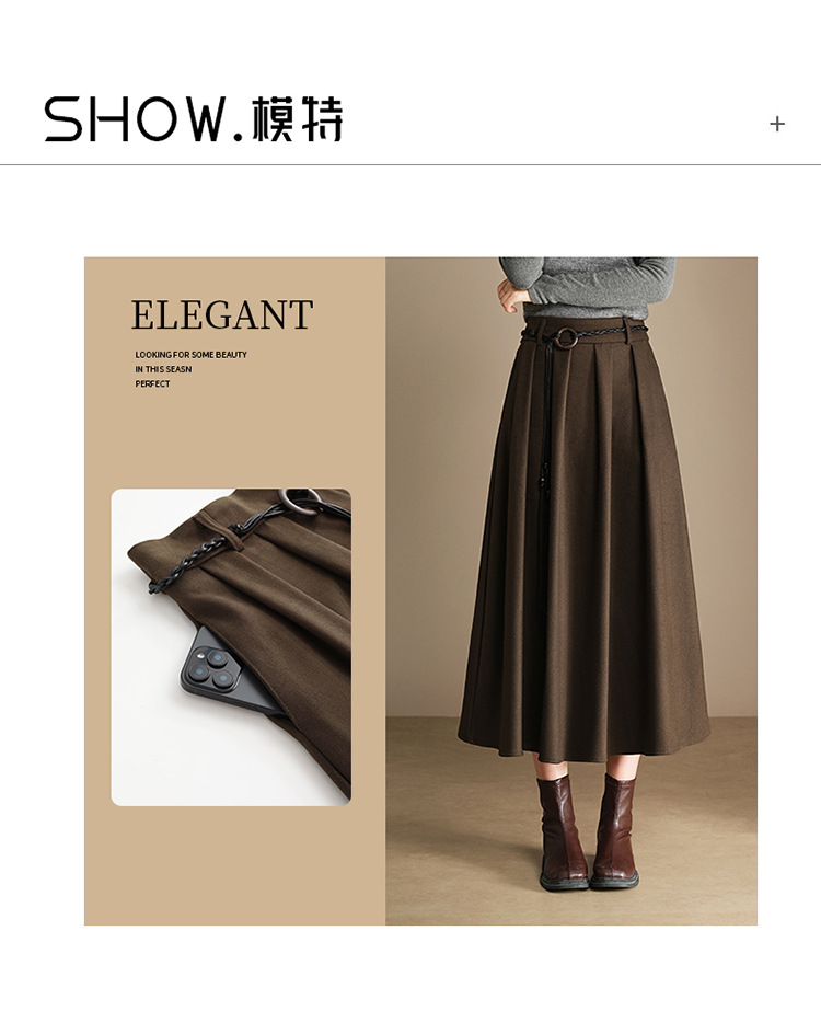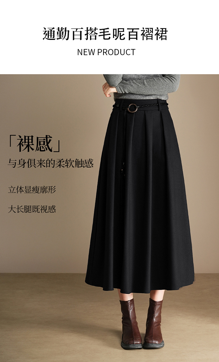 QYM A130-Y毛呢半身裙高腰时尚气质百褶A字裙 商品图4