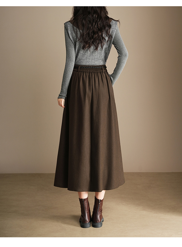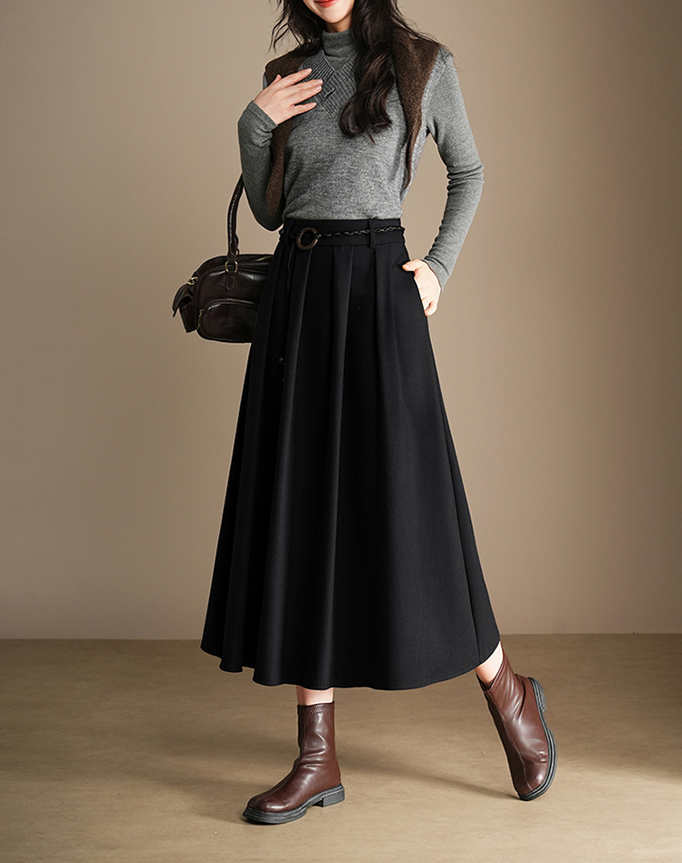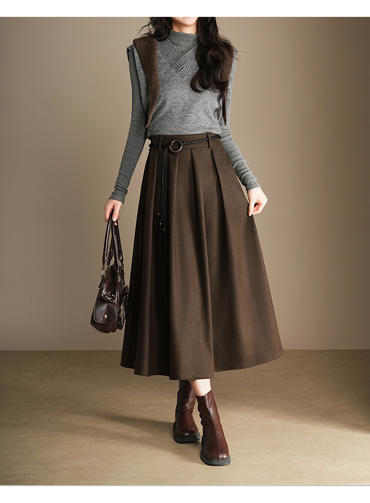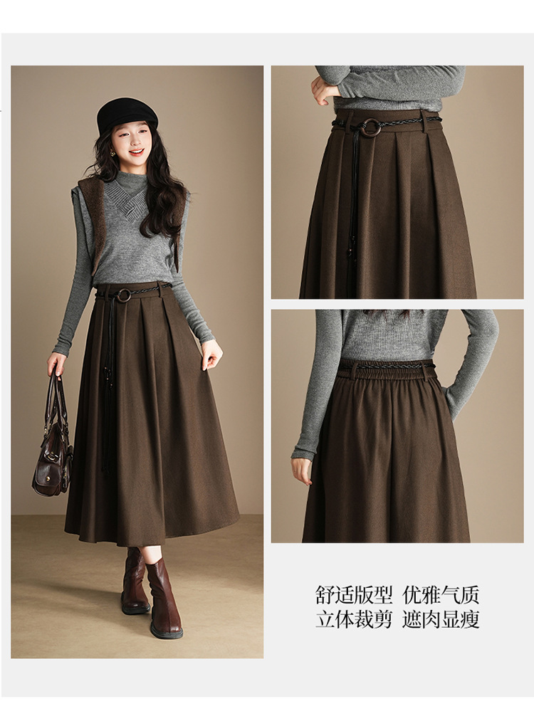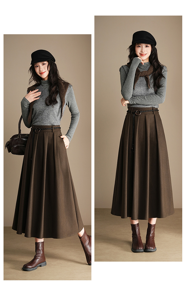 QYM A130-Y毛呢半身裙高腰时尚气质百褶A字裙 商品图4