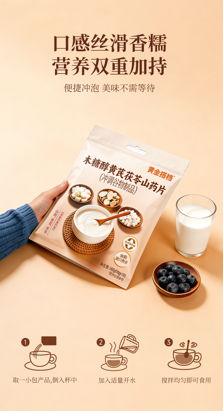 【超值2袋装】黄金搭档 木糖醇黄芪茯苓山药片 科学配比 免熬煮 300g*2袋
