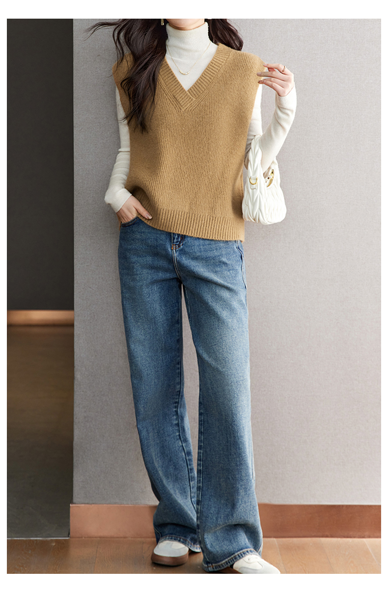 馥迦直筒加绒显瘦窄版阔腿牛仔裤