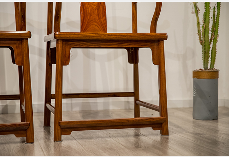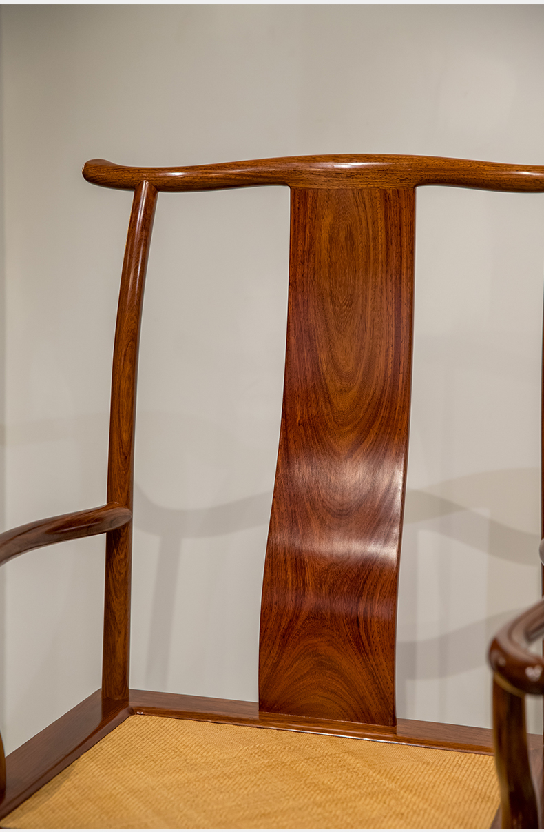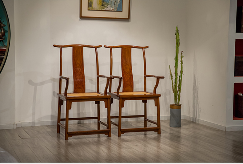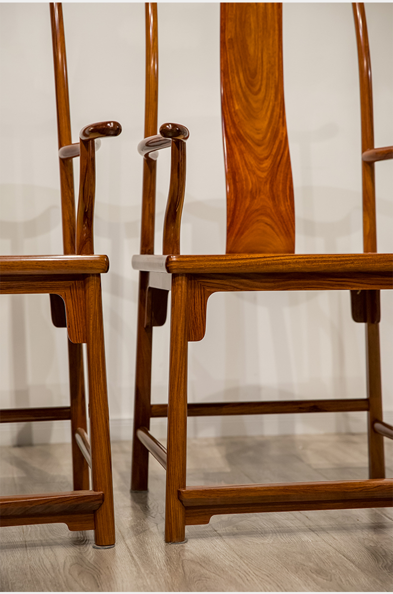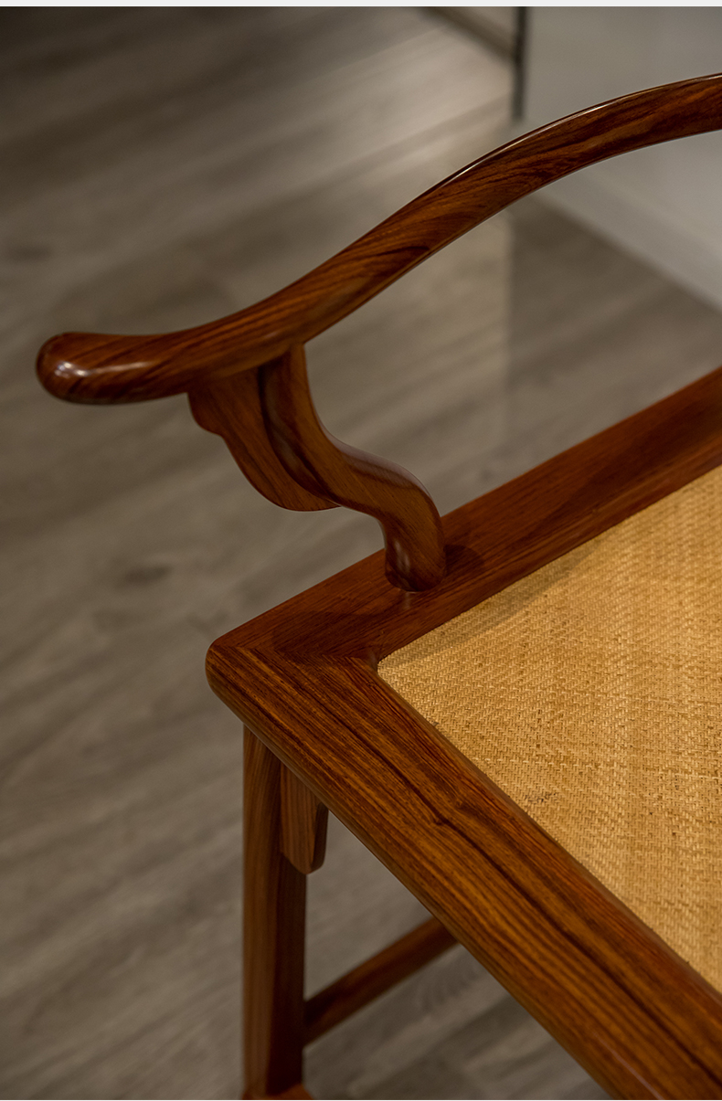 清 红木券口靠背玫瑰椅成套(两椅一几)