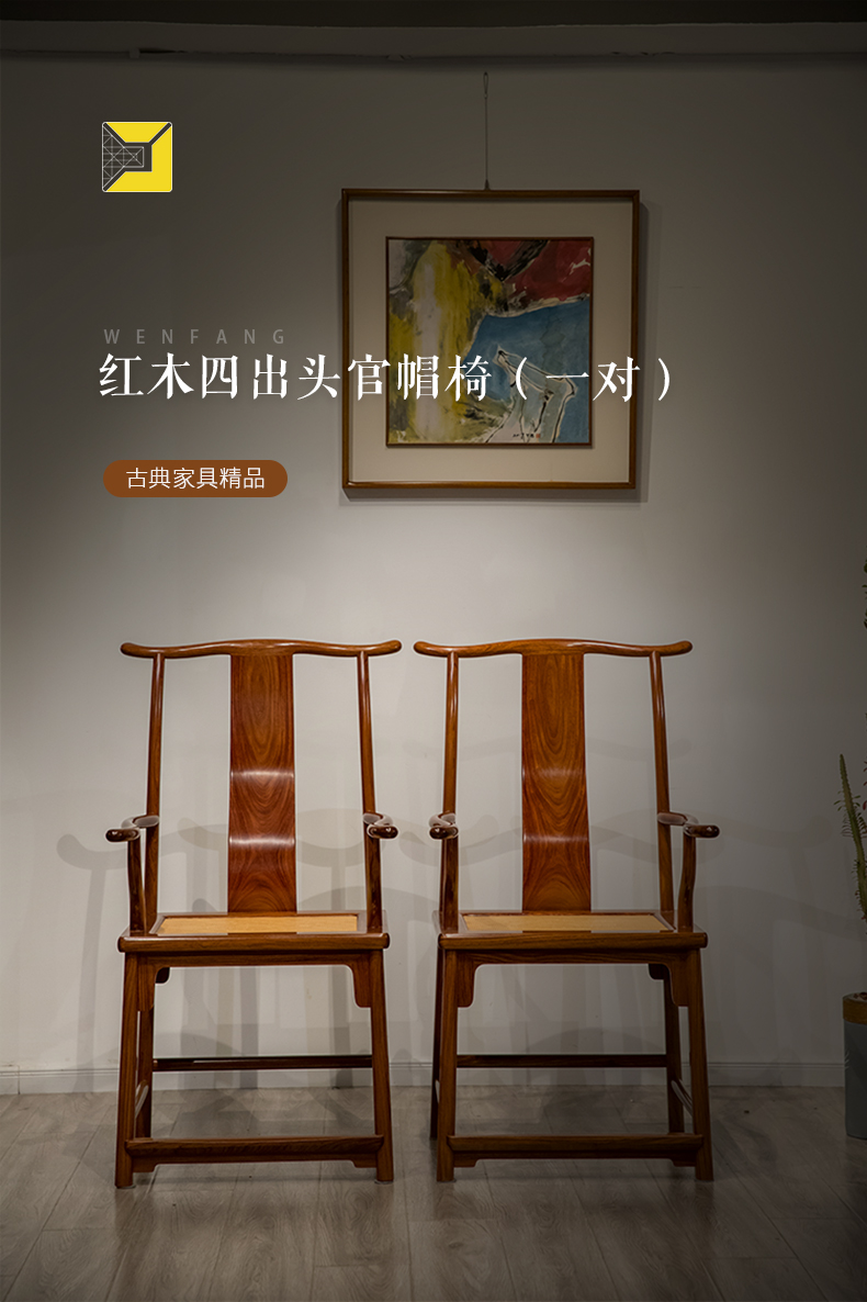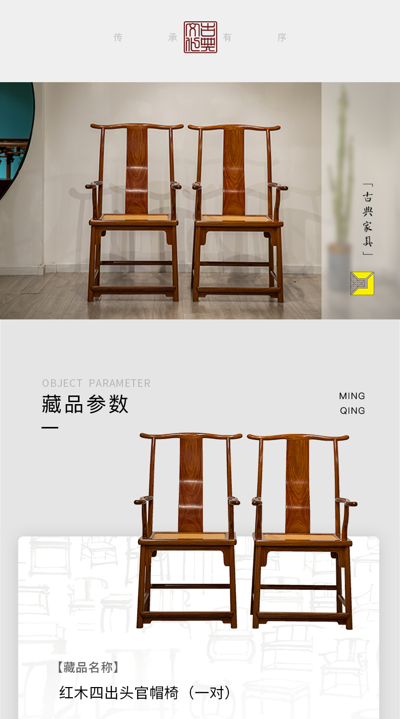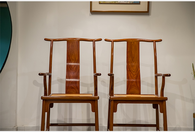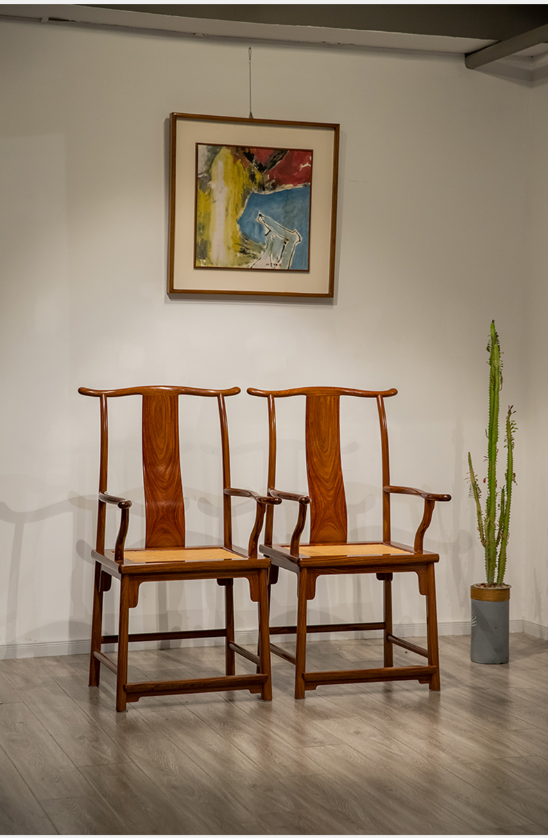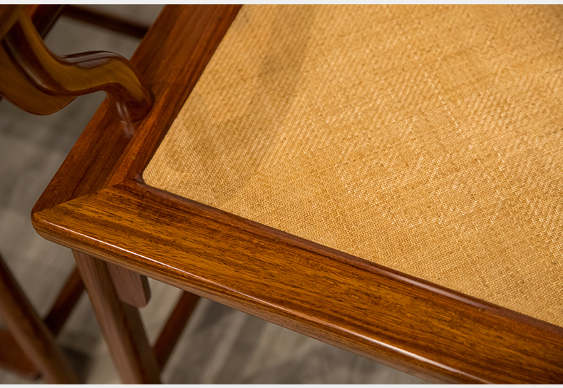 清 红木券口靠背玫瑰椅成套(两椅一几)