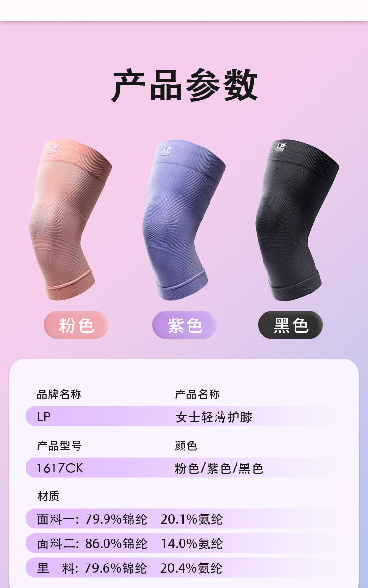 LP1617CK女士轻薄款护膝夏季透气防滑加压舒适膝盖护具护关节男士