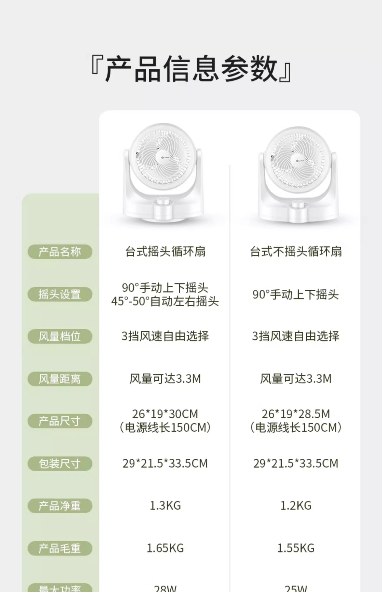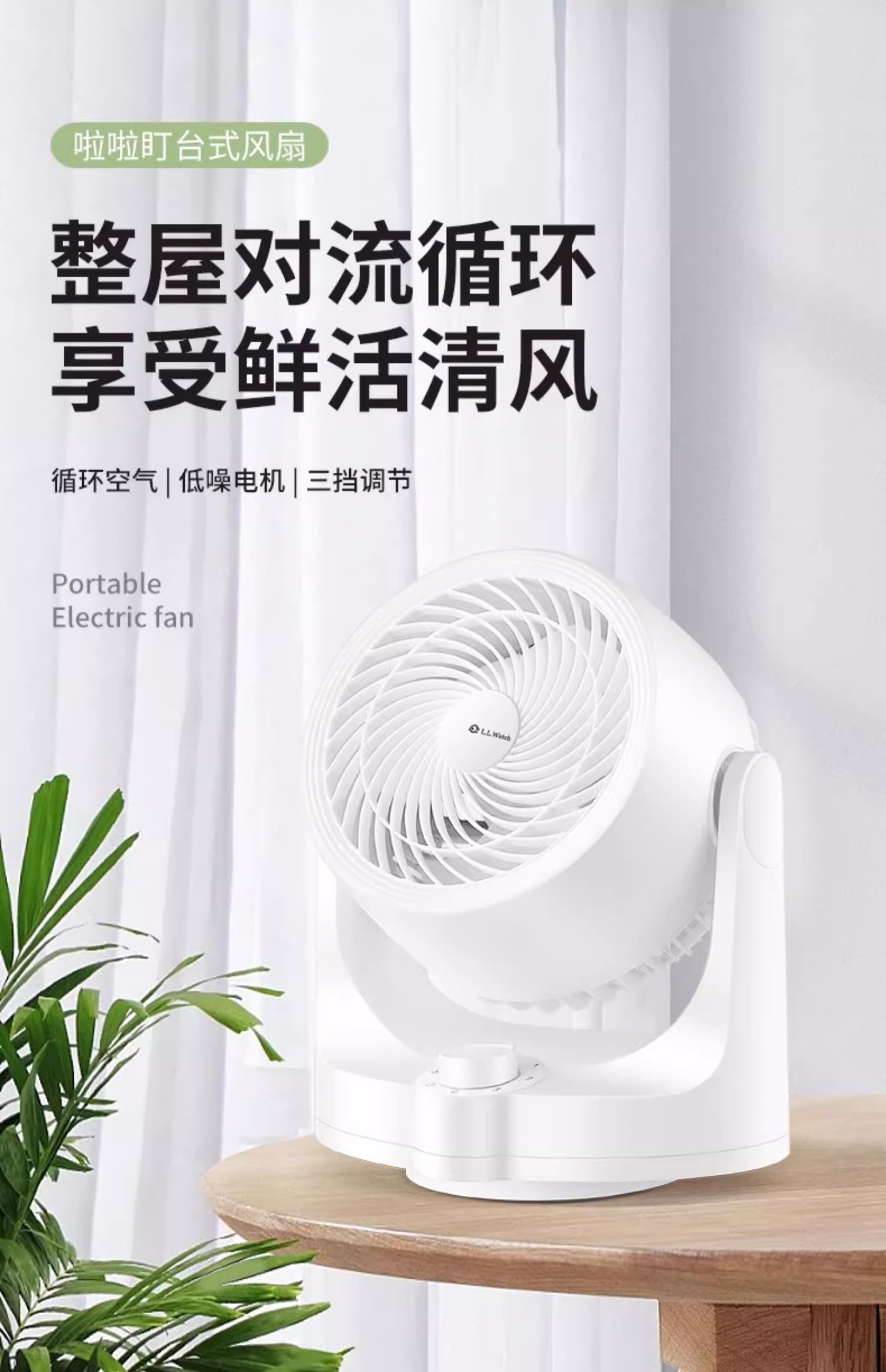 啦啦盯桌面台式不摇头循环风扇(白色)/1件补单专用