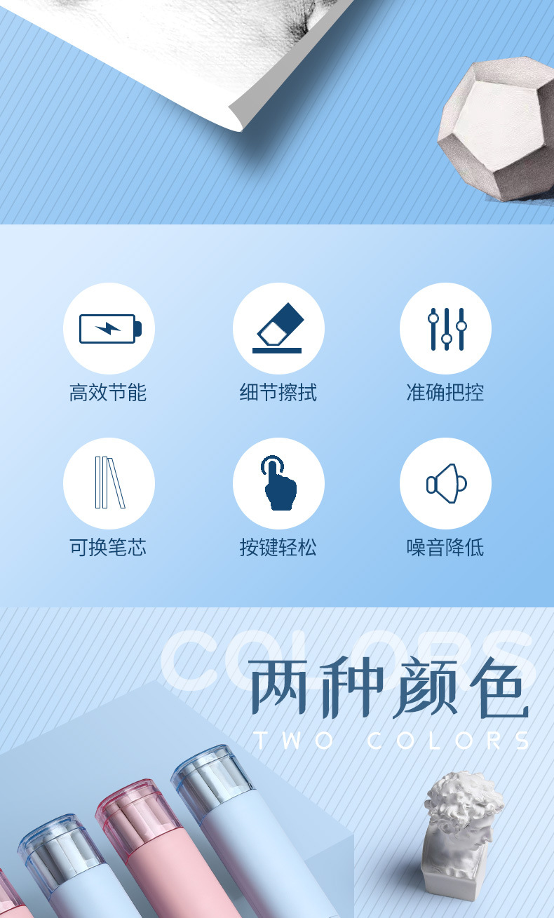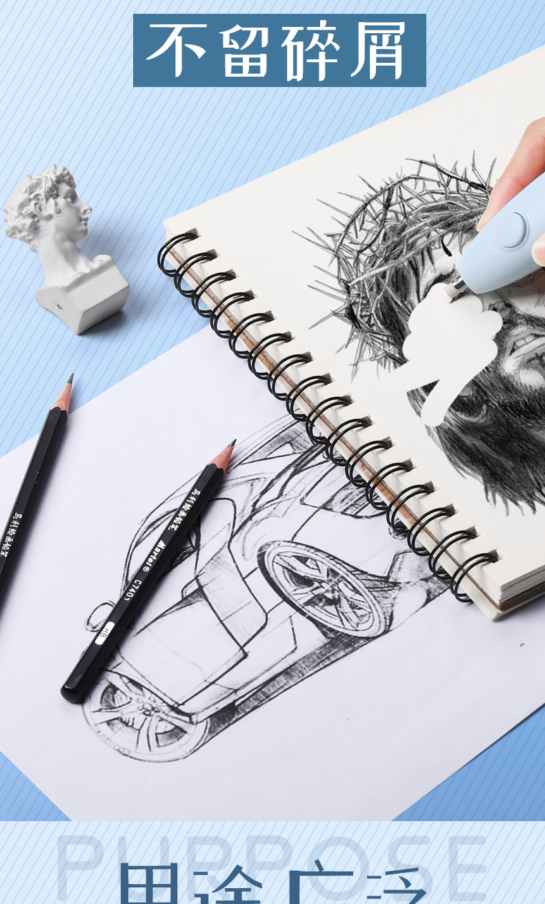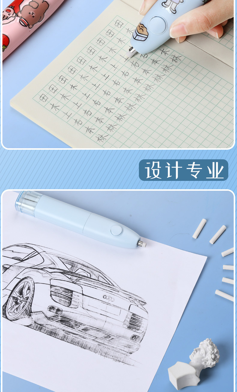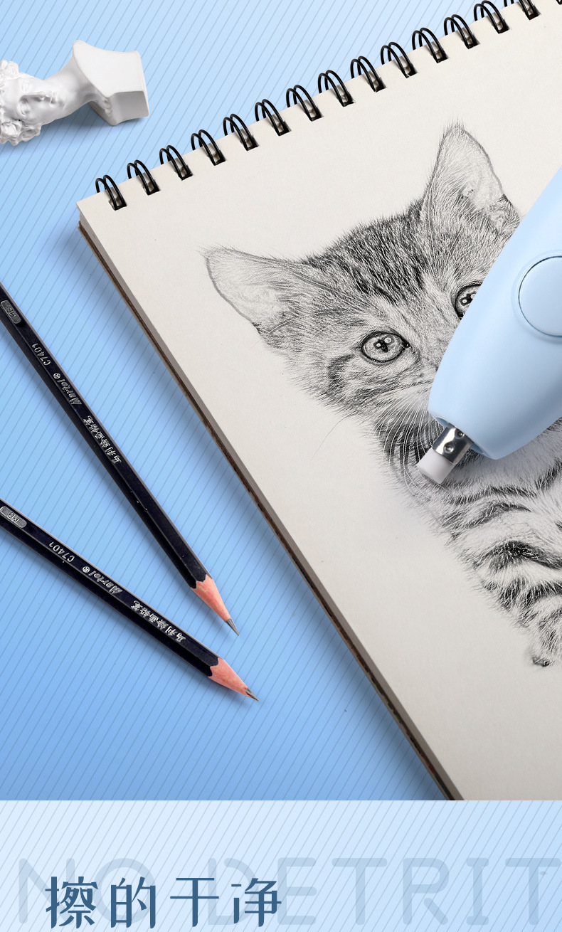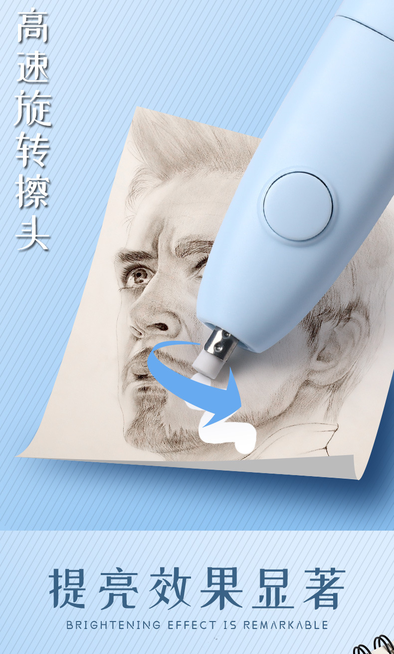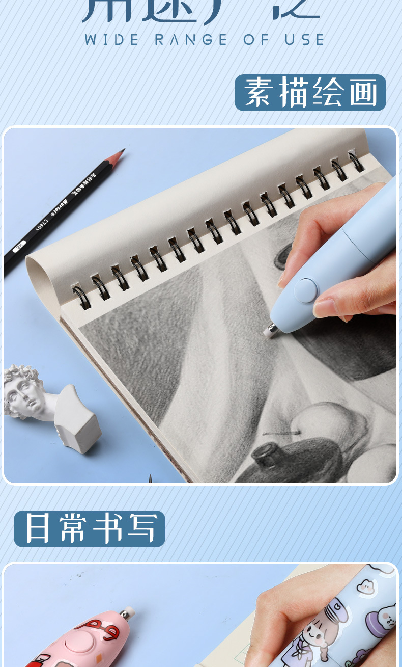 【用奇幻魔法!瞬间擦净烦恼】电动橡皮擦学生擦得干净,少屑不易留痕可替芯素描美术生用,细节擦拭 准确把控 可换笔芯 持久耐用