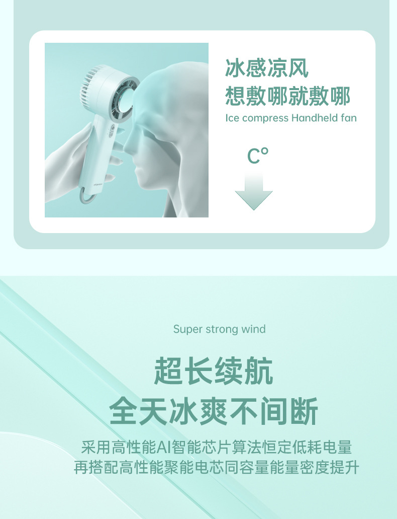 随身便携,超航续航【冰感风!速降温】冰敷制冷小风扇充电款长续航迷你手持风扇usb小型电风扇。ha