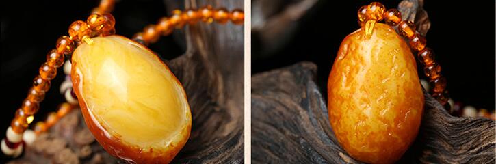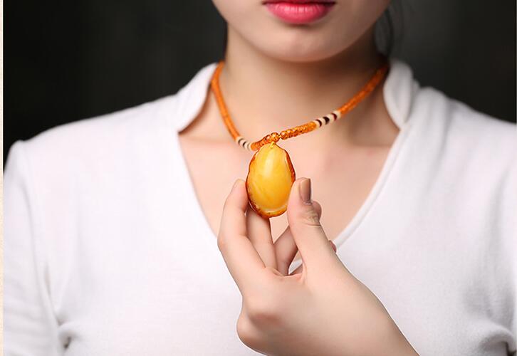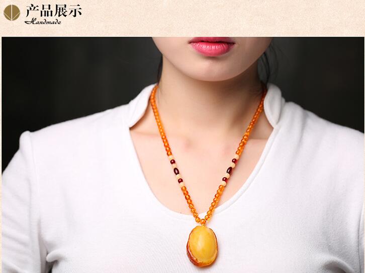 丁摩 带皮老蜜蜡吊坠男女款鸡油黄琥珀原石项链长款毛衣链随型项坠5ZF-74998