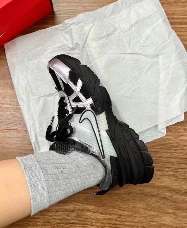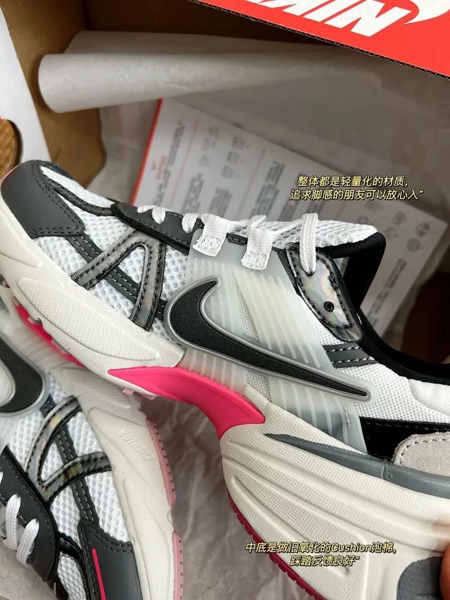 鞋面箱笼式的解构设计,用到了皮革、网眼织物、塑胶多种材质,层次感立体饱满