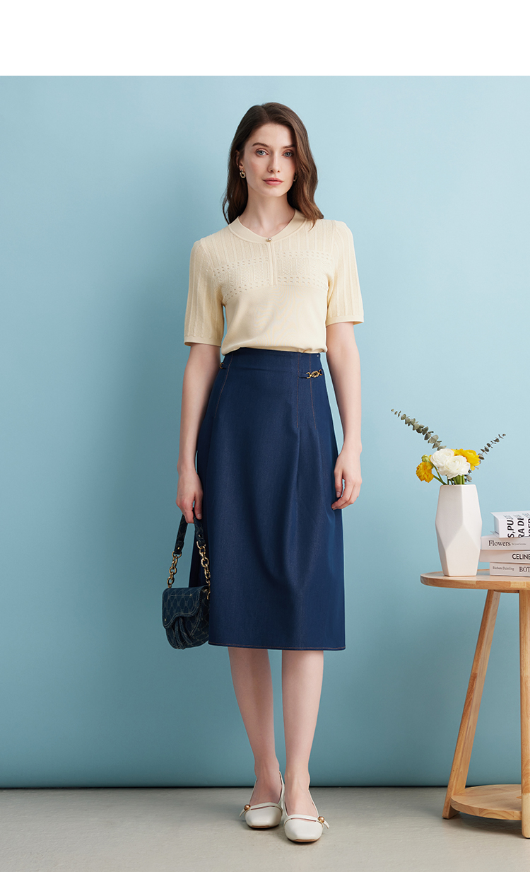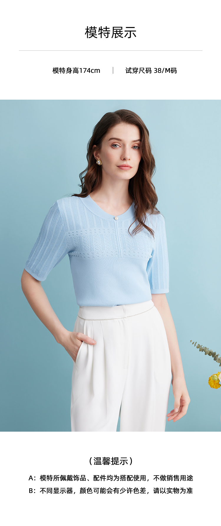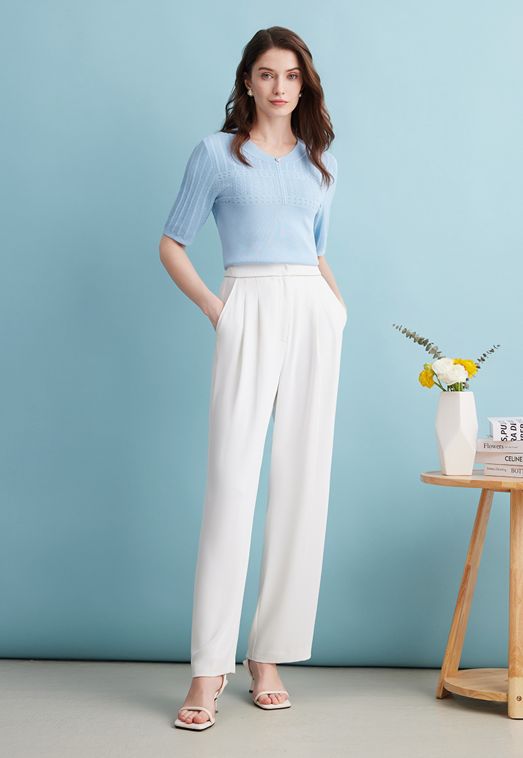 EITIE爱特爱夏季新款气质温柔百搭舒适柔软透气短袖针织衫薄B2401324