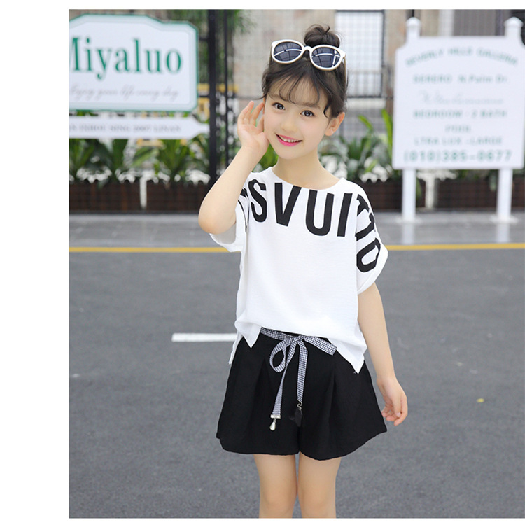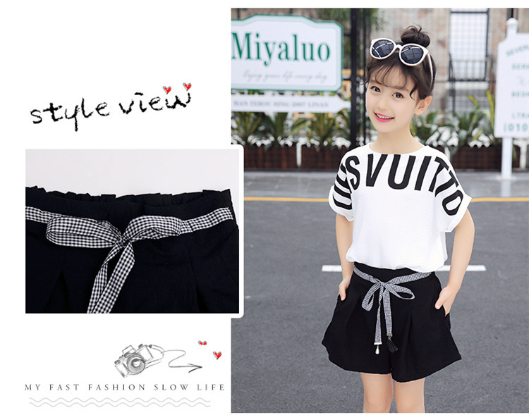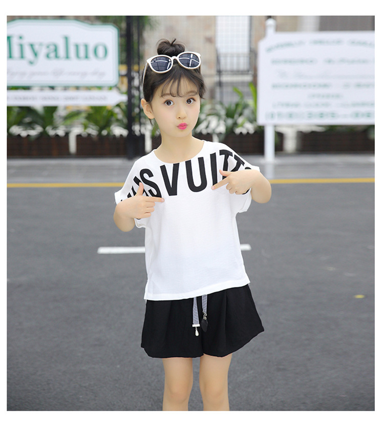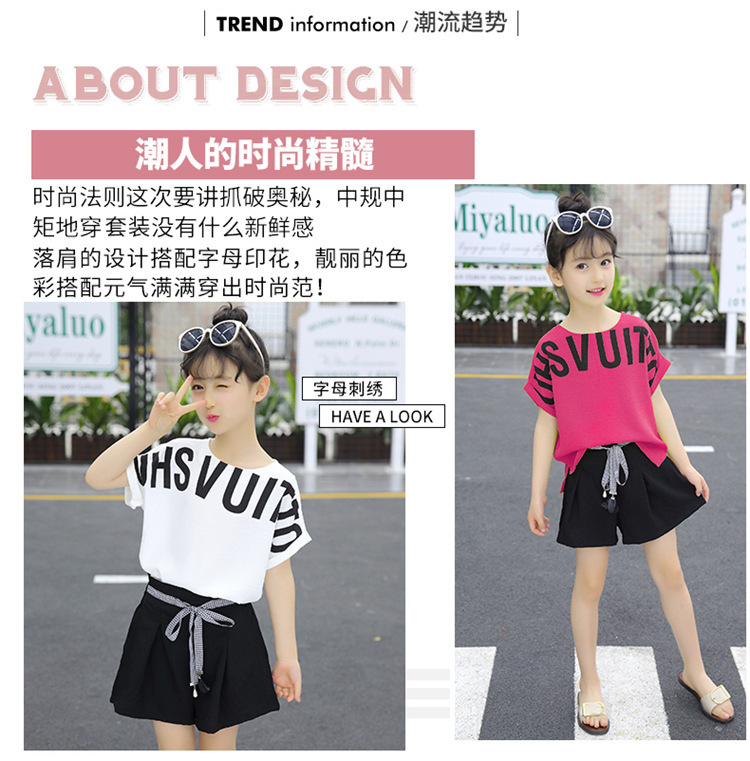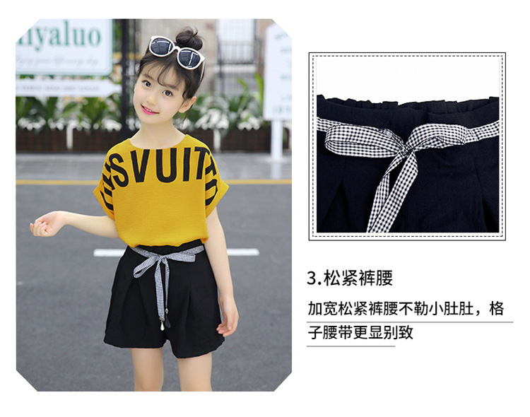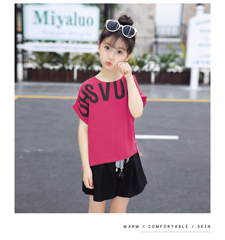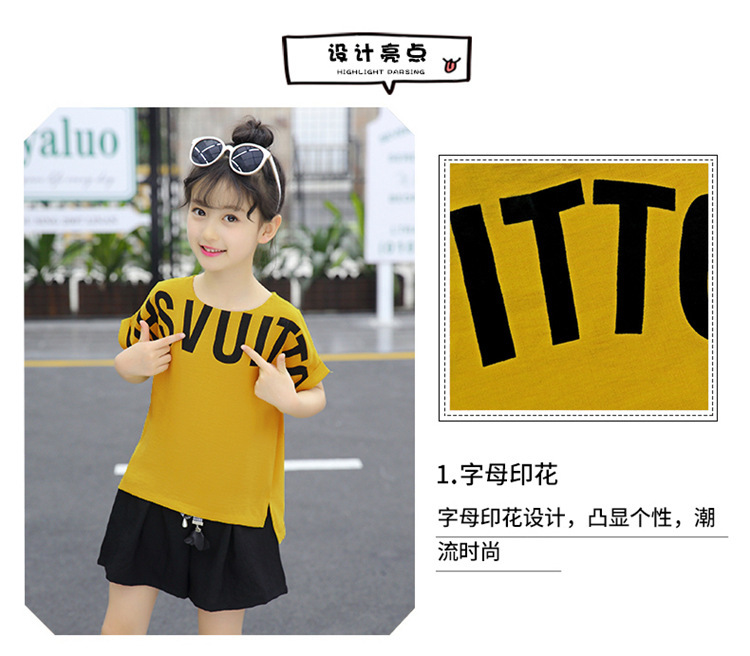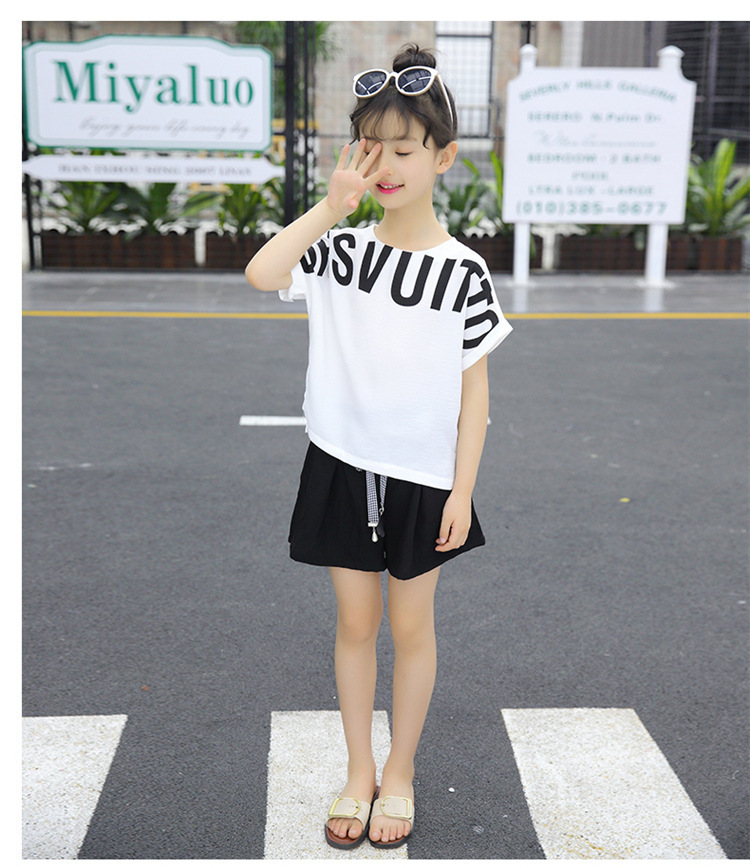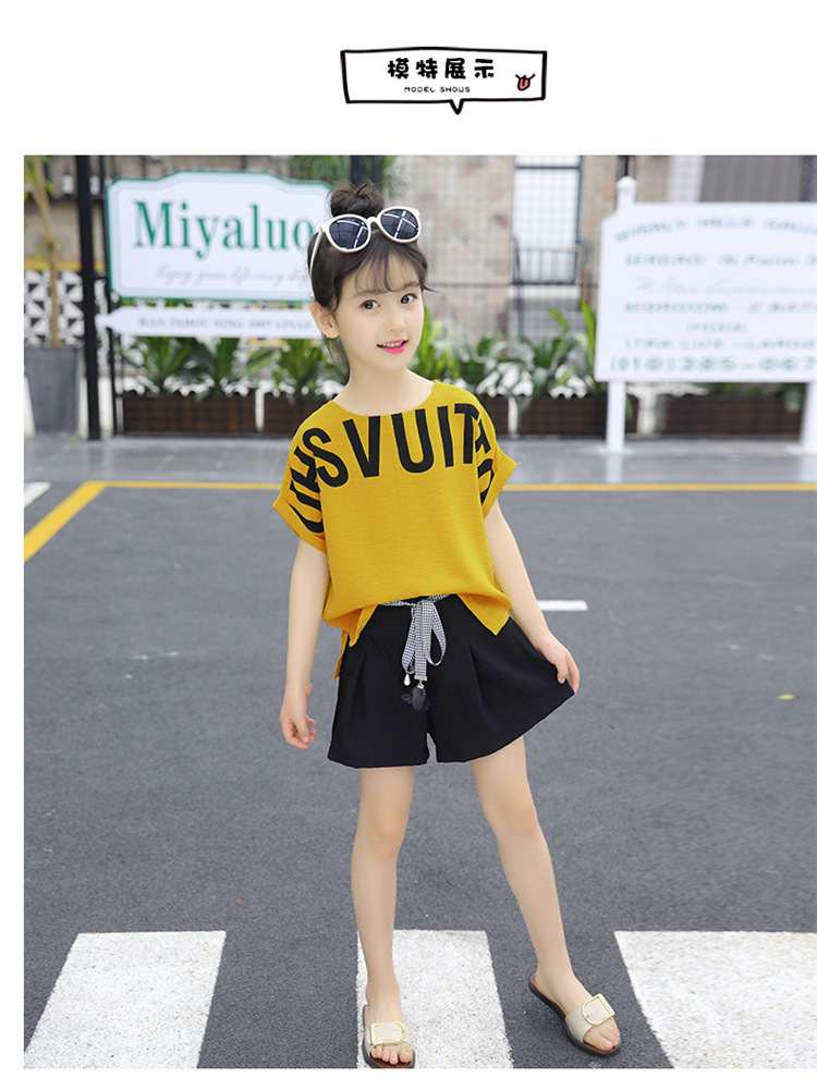 MN-2020031002夏新款中大童韩版字母短袖阔腿短裤洋气两件套