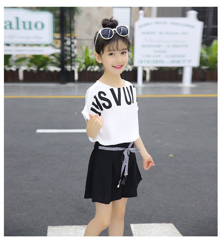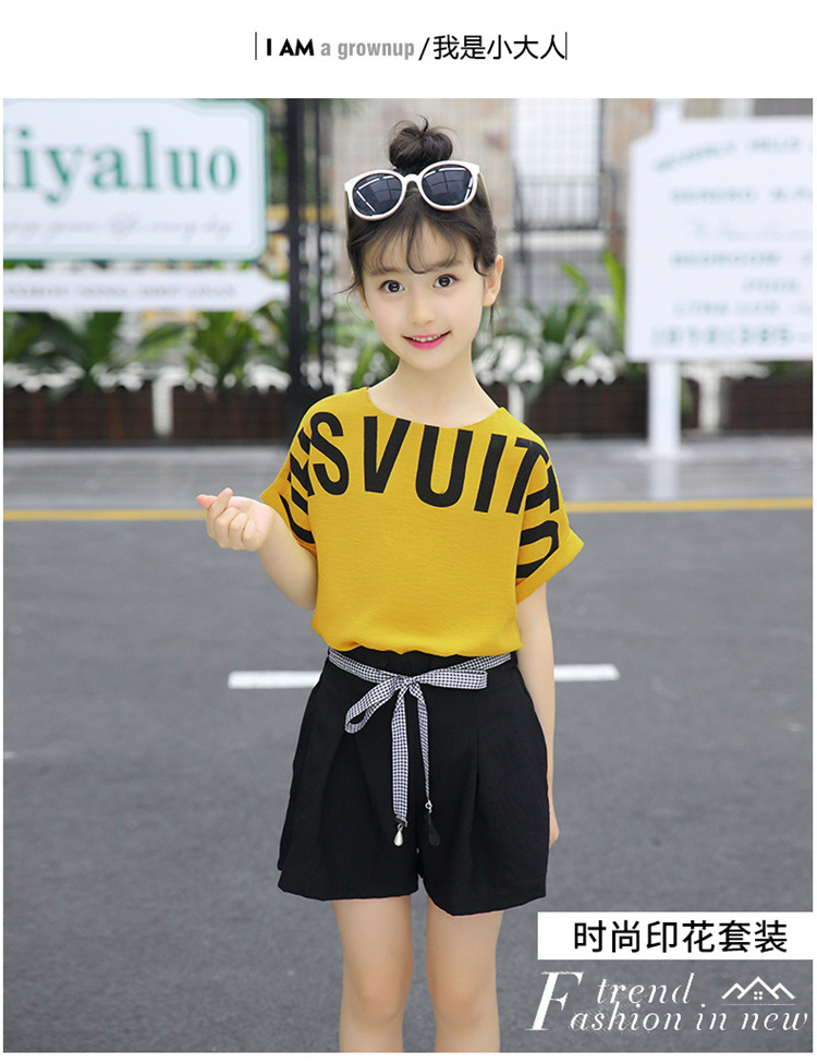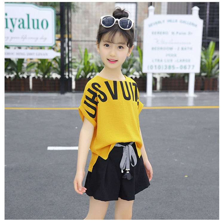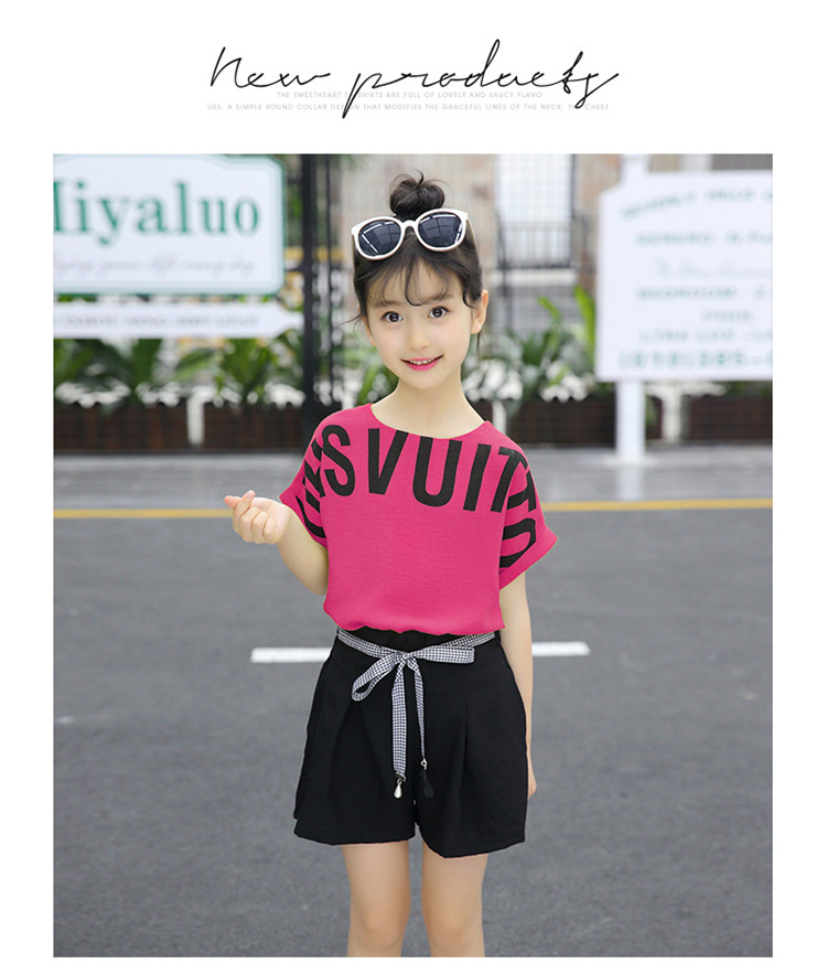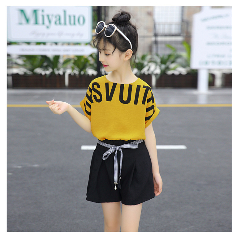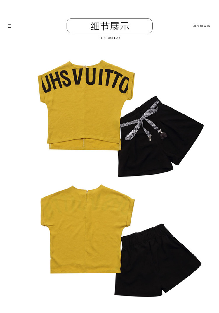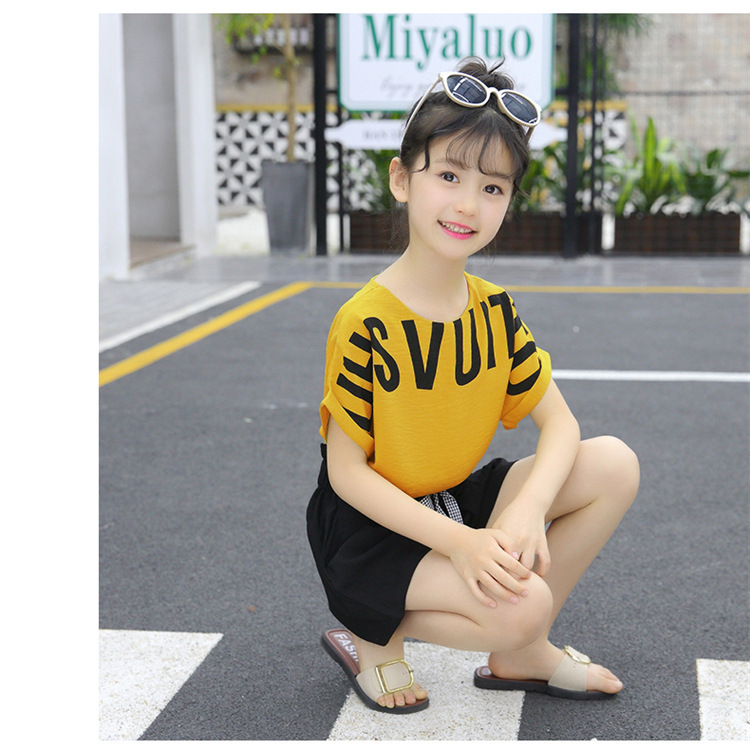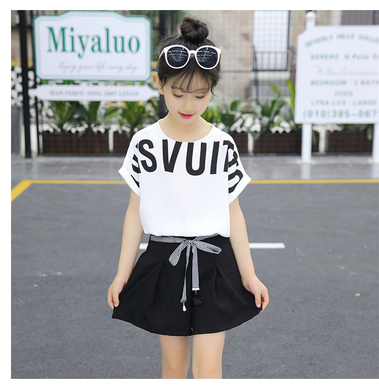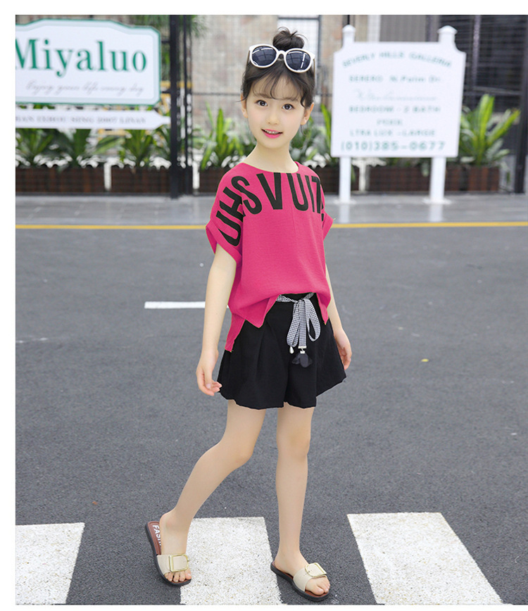 MN-2020031002夏新款中大童韩版字母短袖阔腿短裤洋气两件套