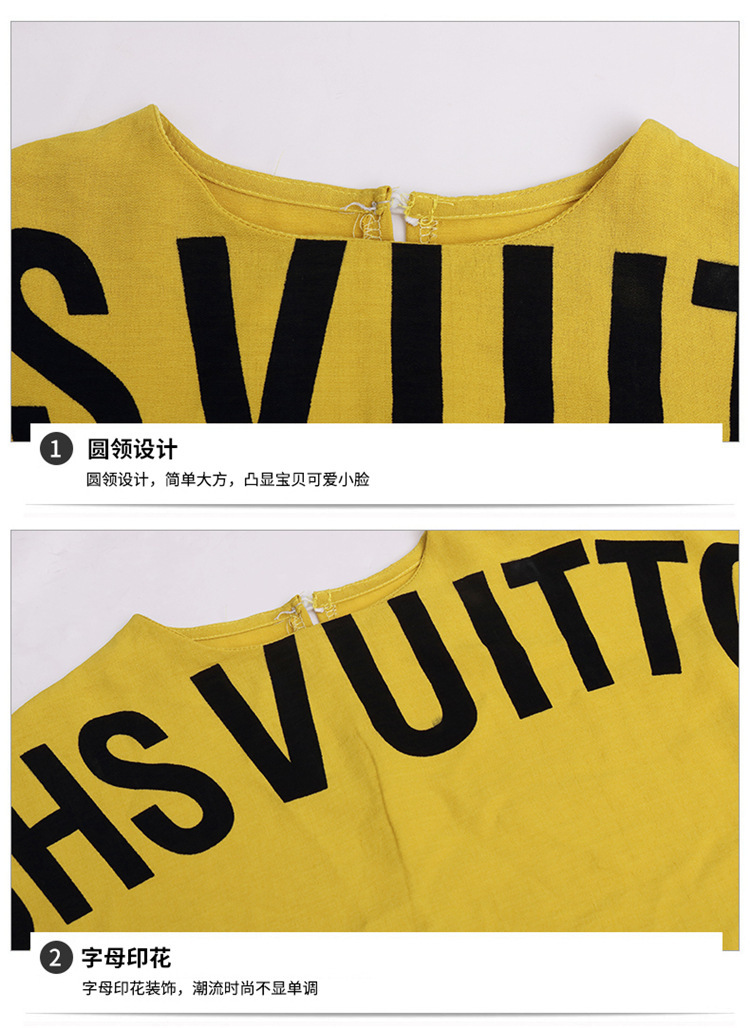 经典时尚童套装女童夏季新品短裤套中大童儿童字母棉麻两件套代发