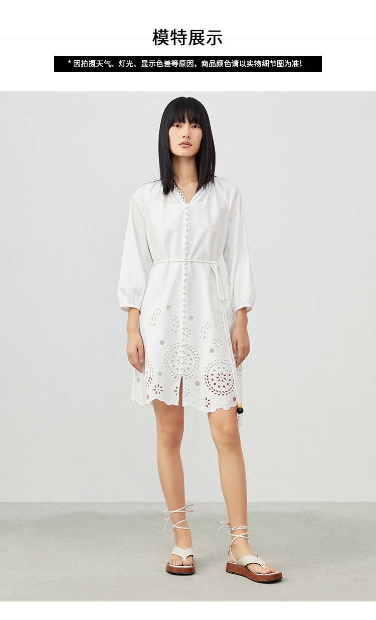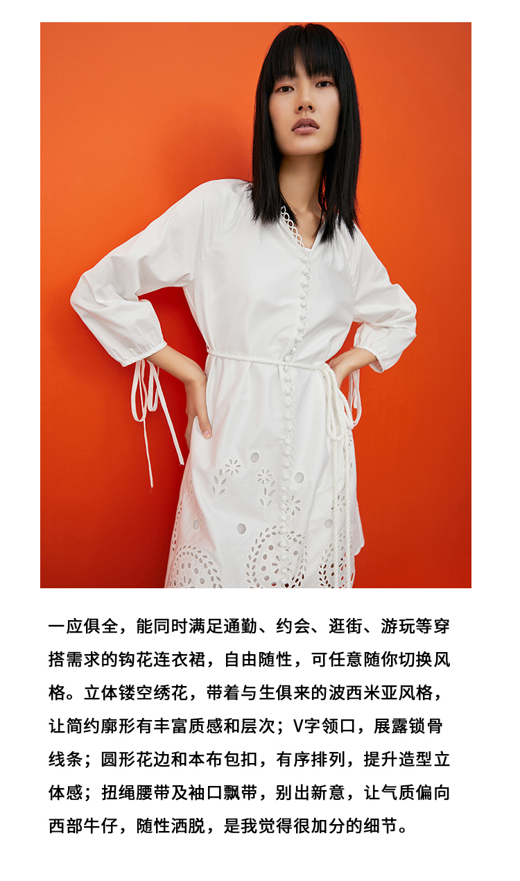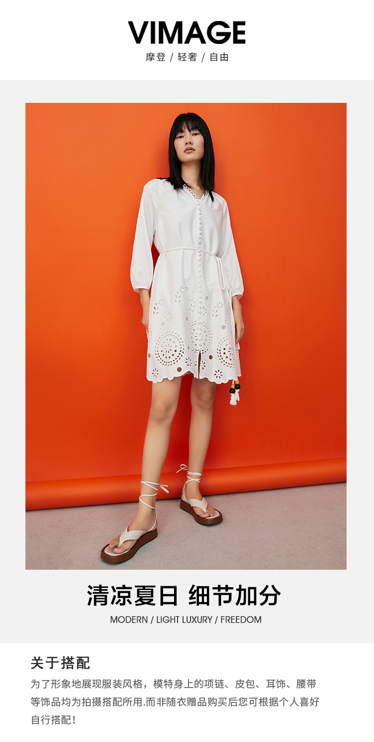 VIMAGE/纬漫纪夏季新品纯色百搭透气不规则设计感小众系带连衣裙V1707369