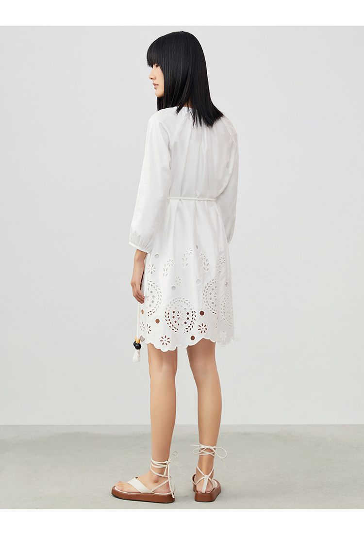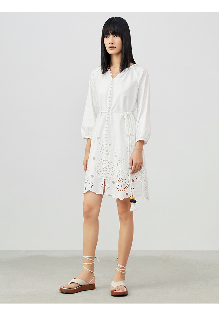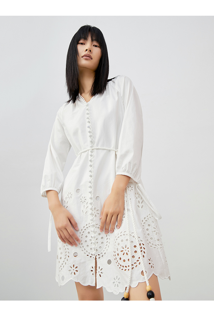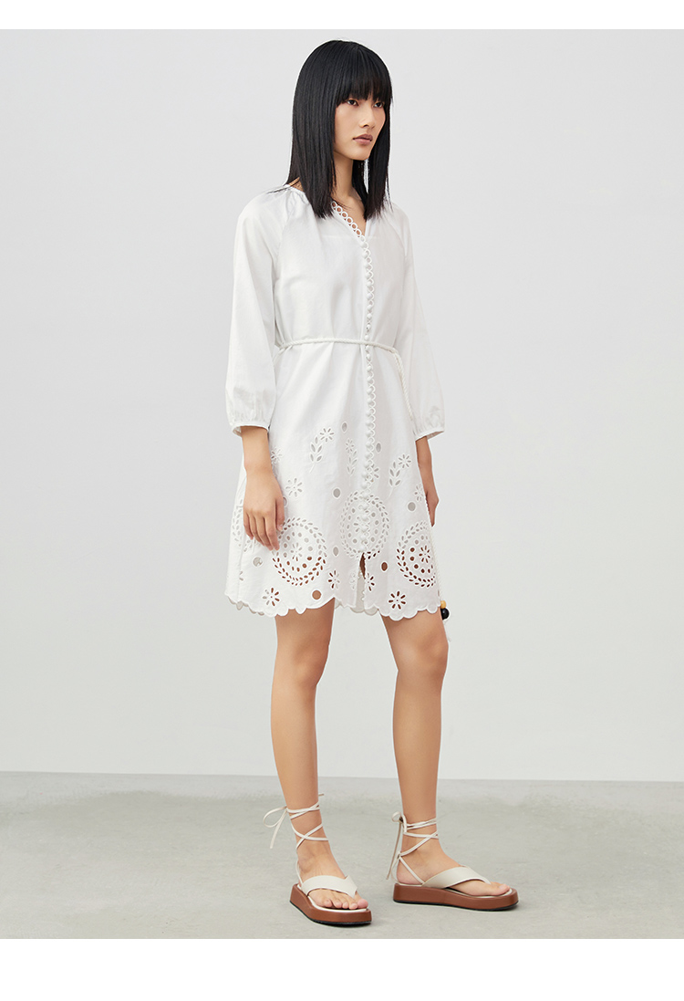 VIMAGE/纬漫纪夏季新品纯色百搭透气不规则设计感小众系带连衣裙V1707369
