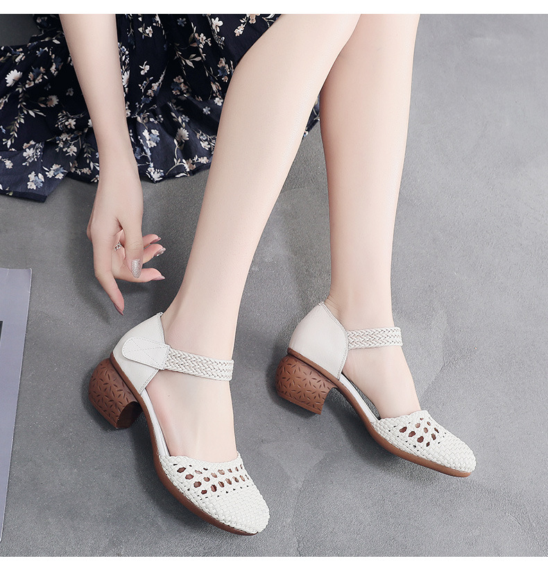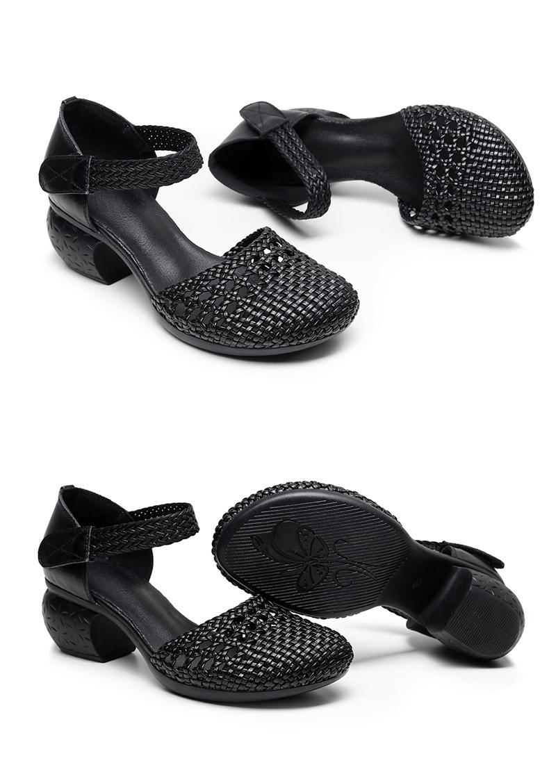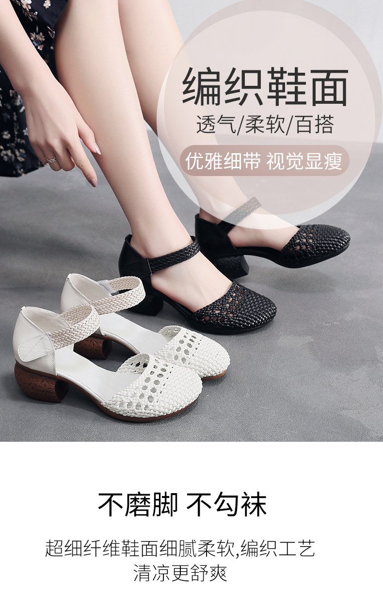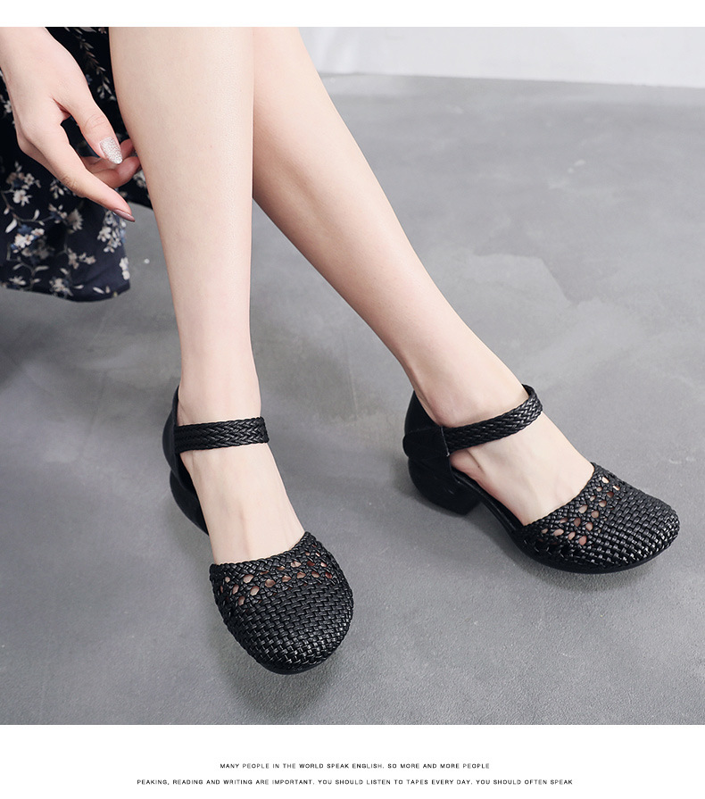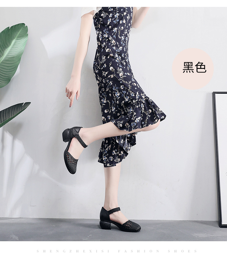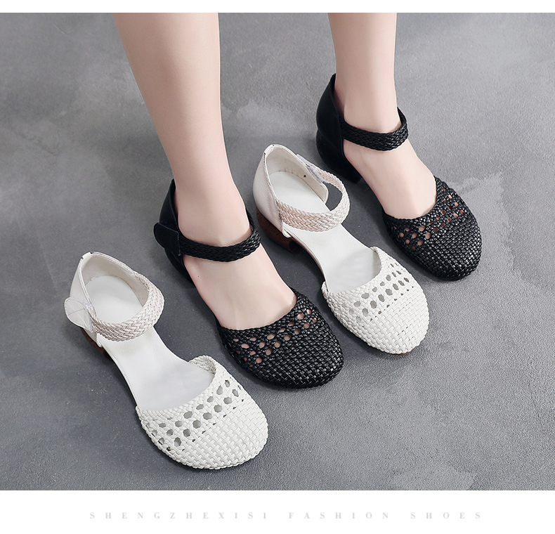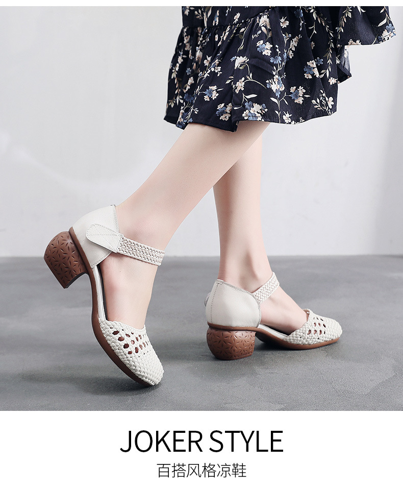 复古风休闲凉鞋,粗中跟编织洞洞凉鞋 MLD109-3