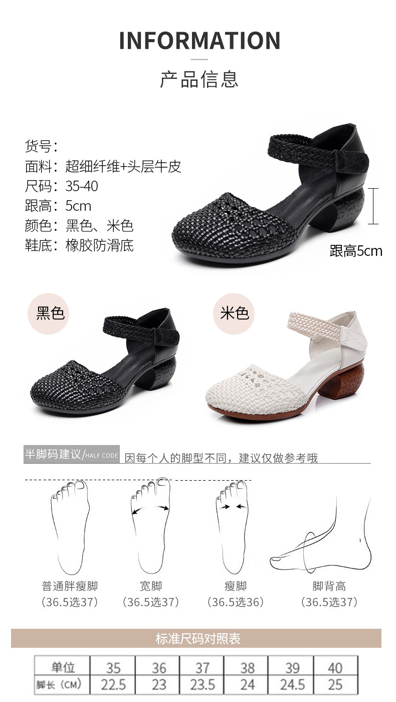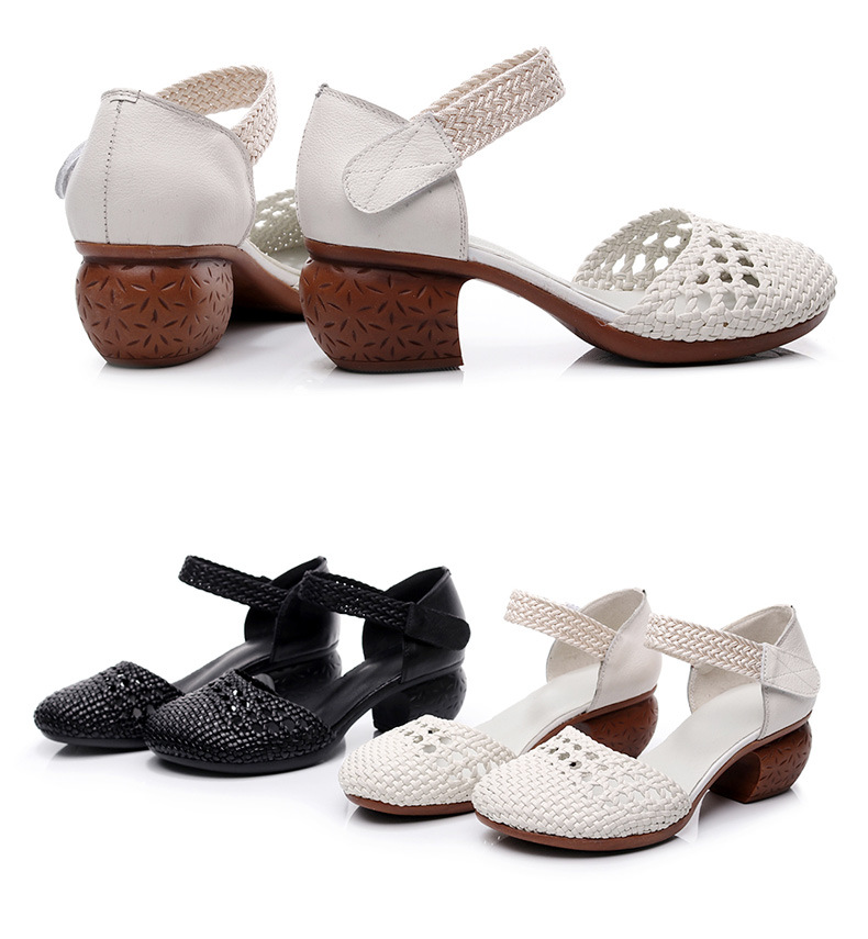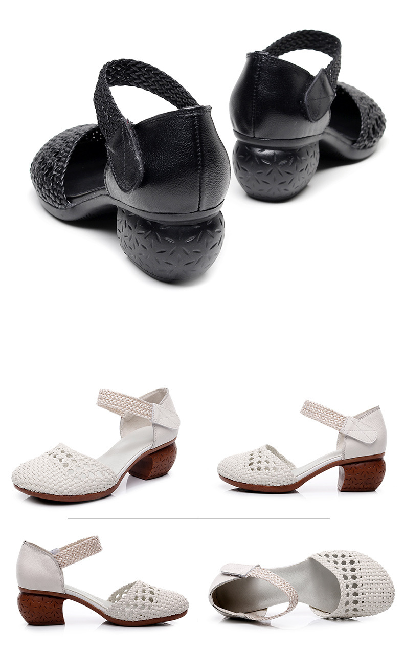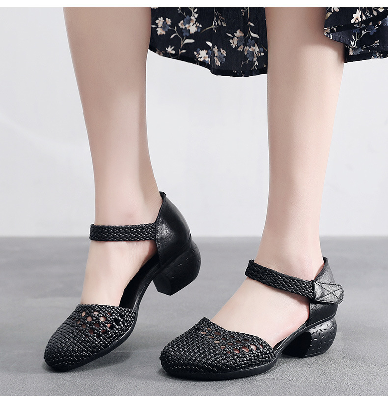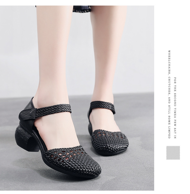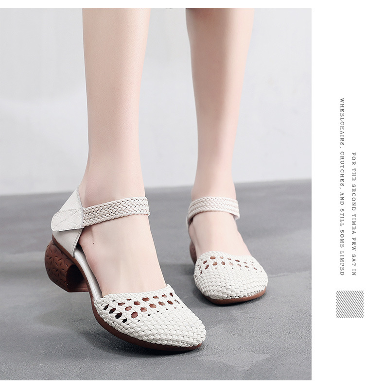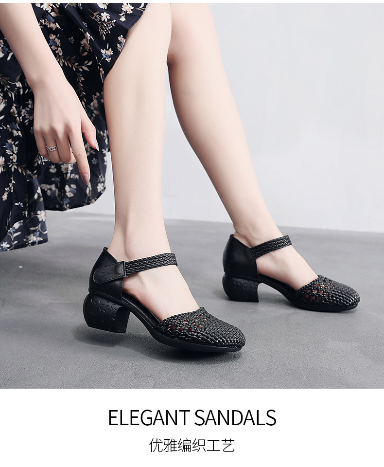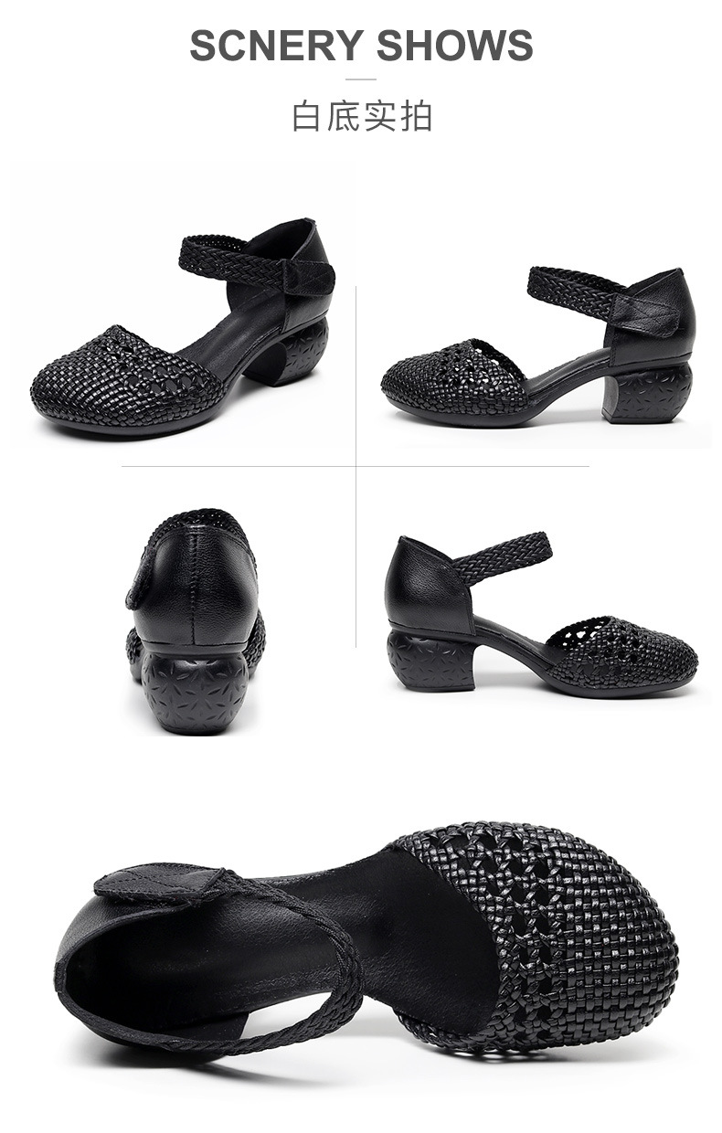 复古风休闲凉鞋,粗中跟编织洞洞凉鞋 MLD109-3