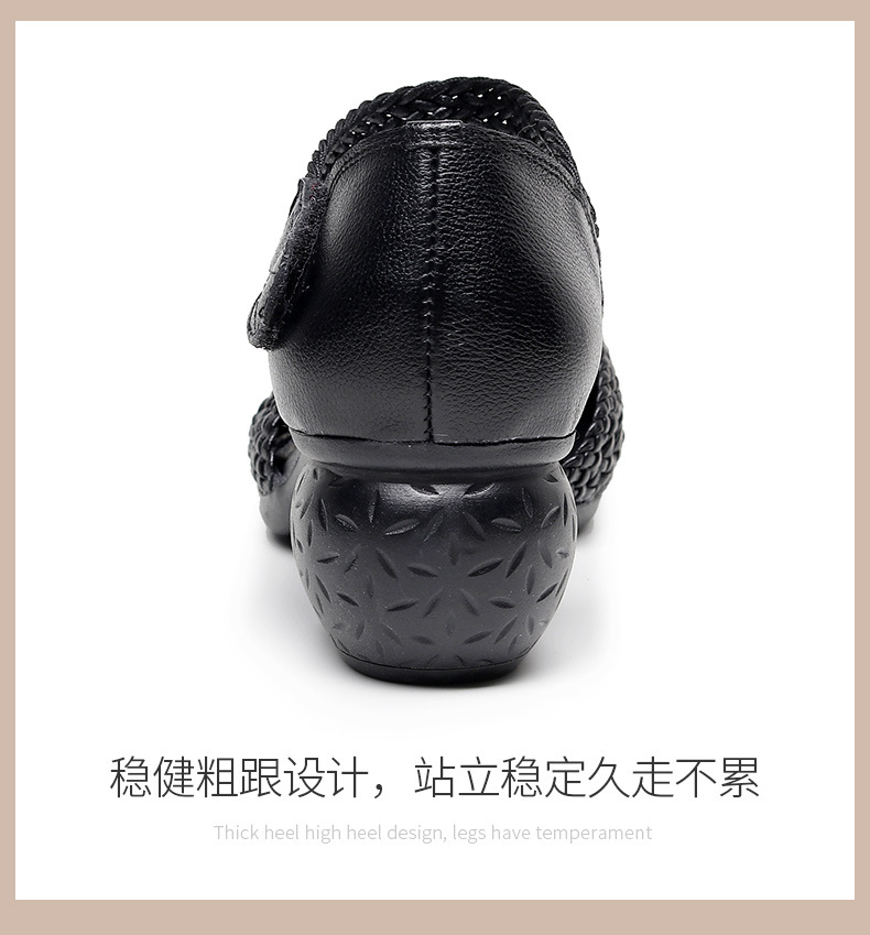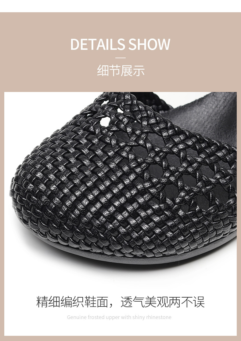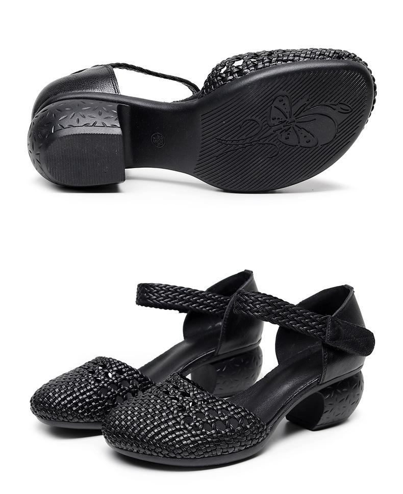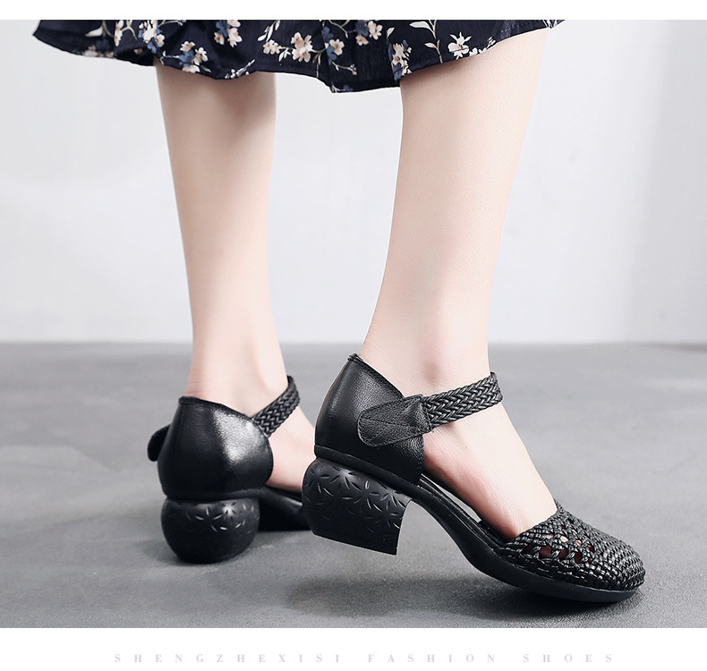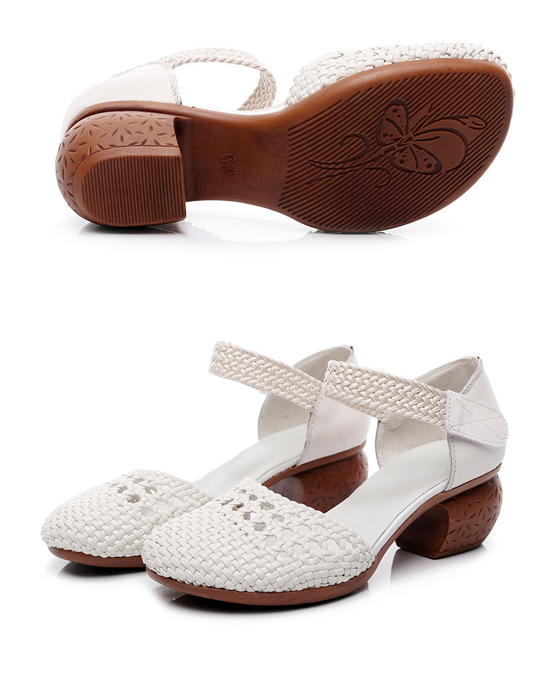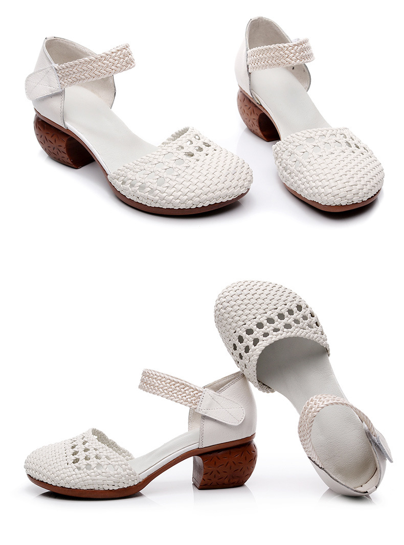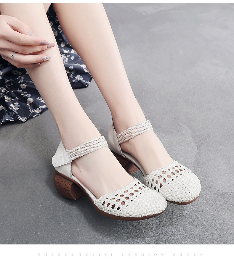 复古风休闲凉鞋,粗中跟编织洞洞凉鞋 MLD109-3