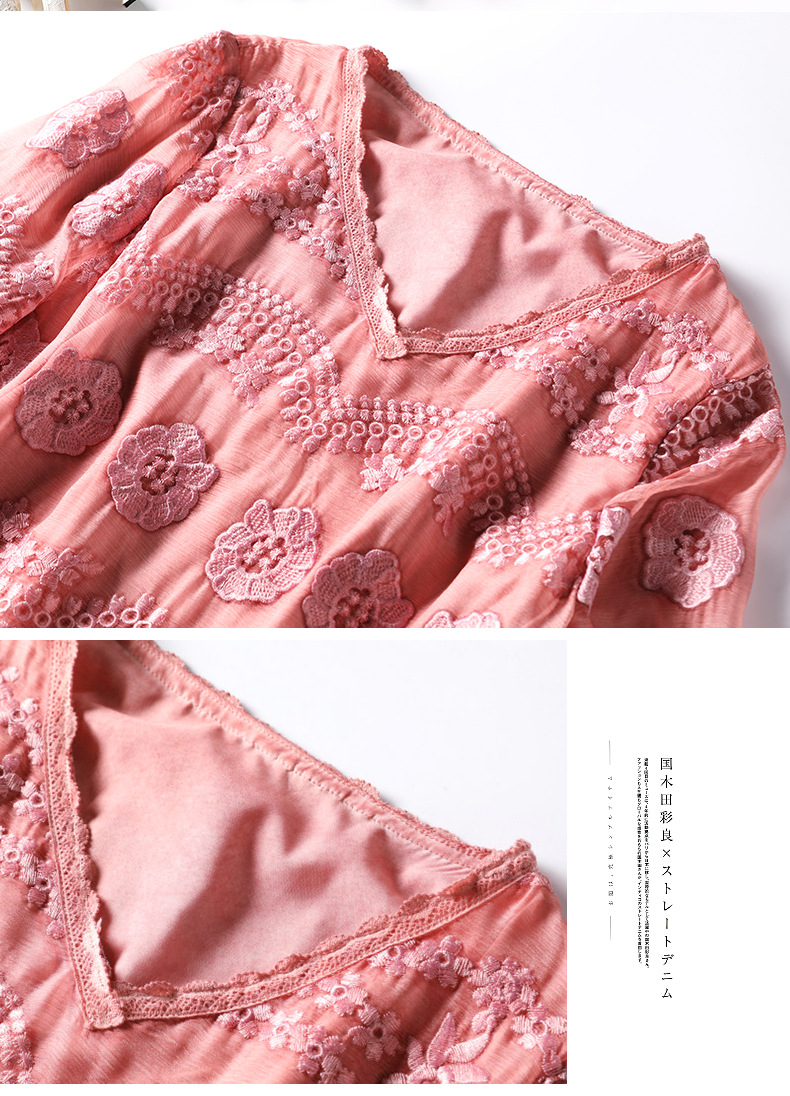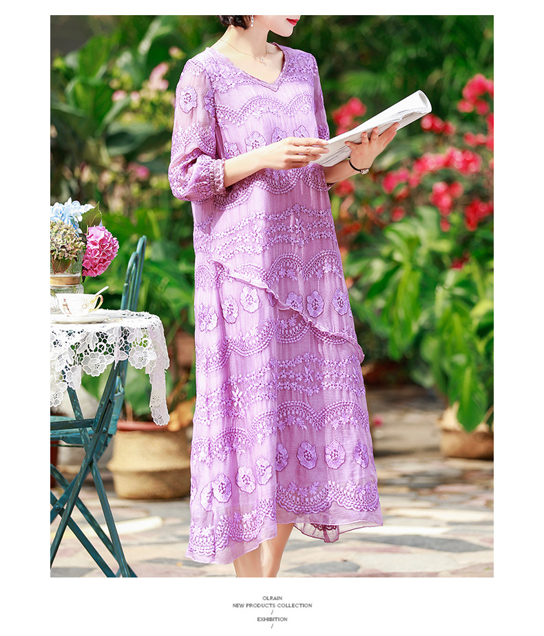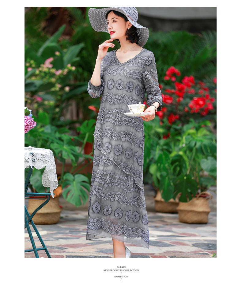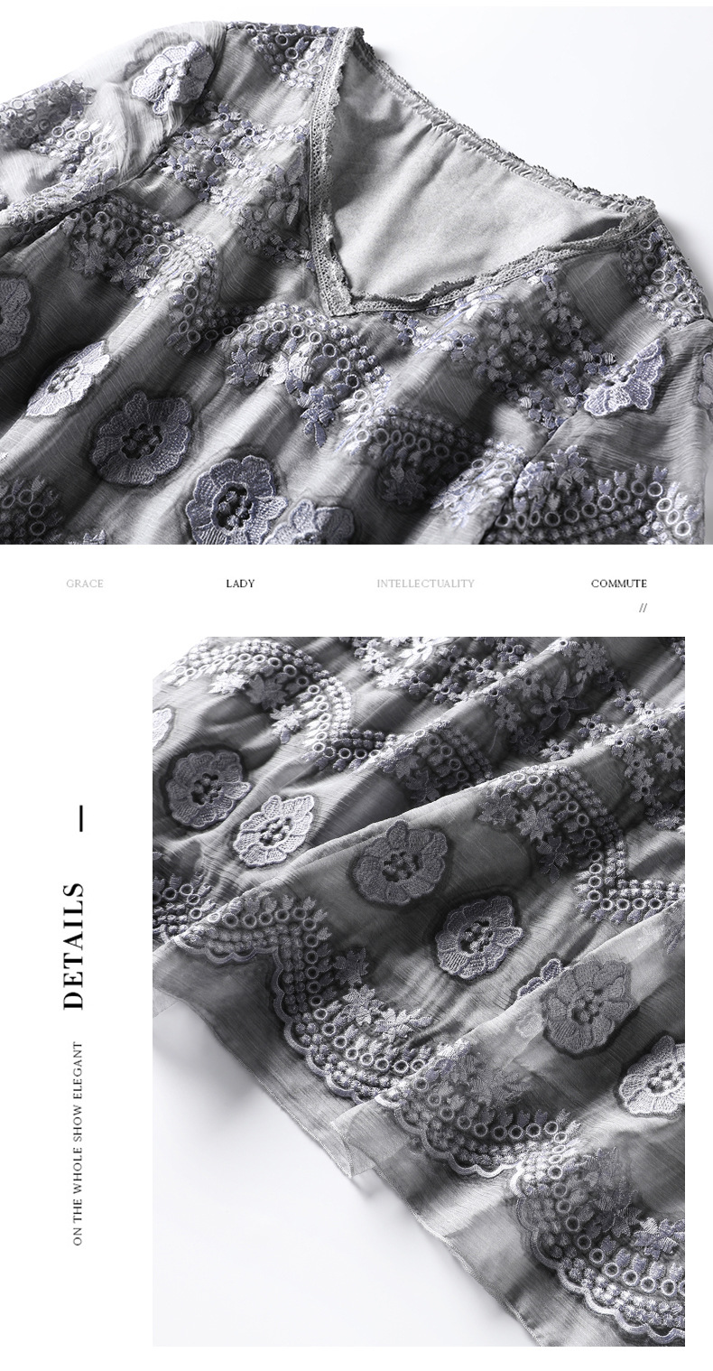NYT-20011新款七分袖绣花纯色打底裙气质V领重工刺绣连衣裙